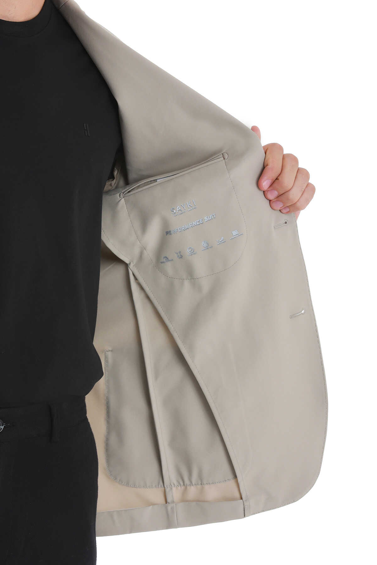 Bej Slim Fit Mono Yaka Casual Ceket - 9