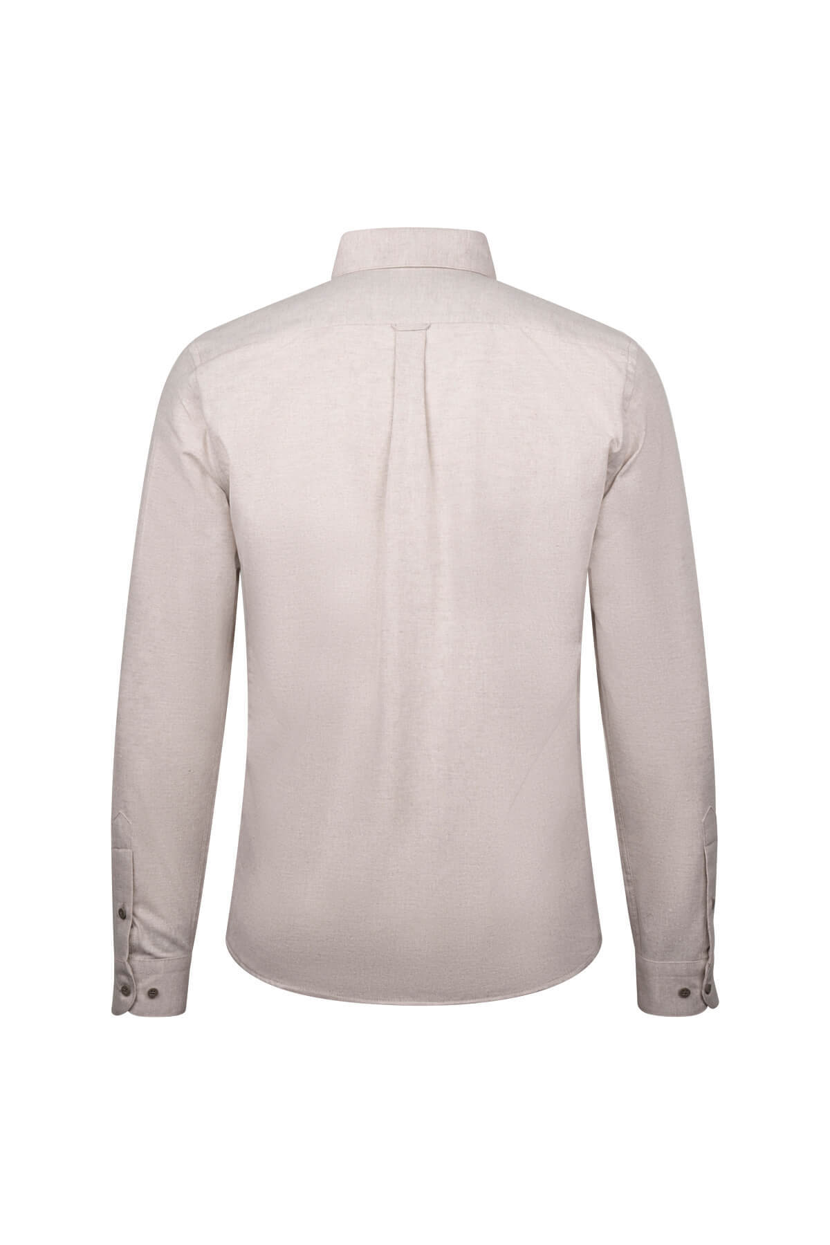 Bej Slim Fit Uzun Kollu Düğmeli Yaka Pamuklu Gömlek - 3