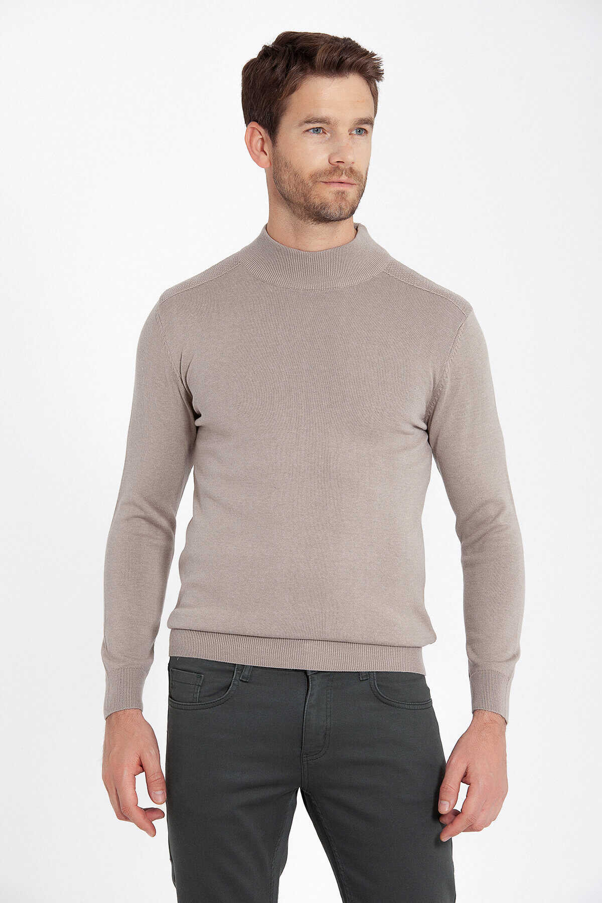 Gri Regular Fit Yarım Balıkçı Yaka Pamuklu Triko Kazak
