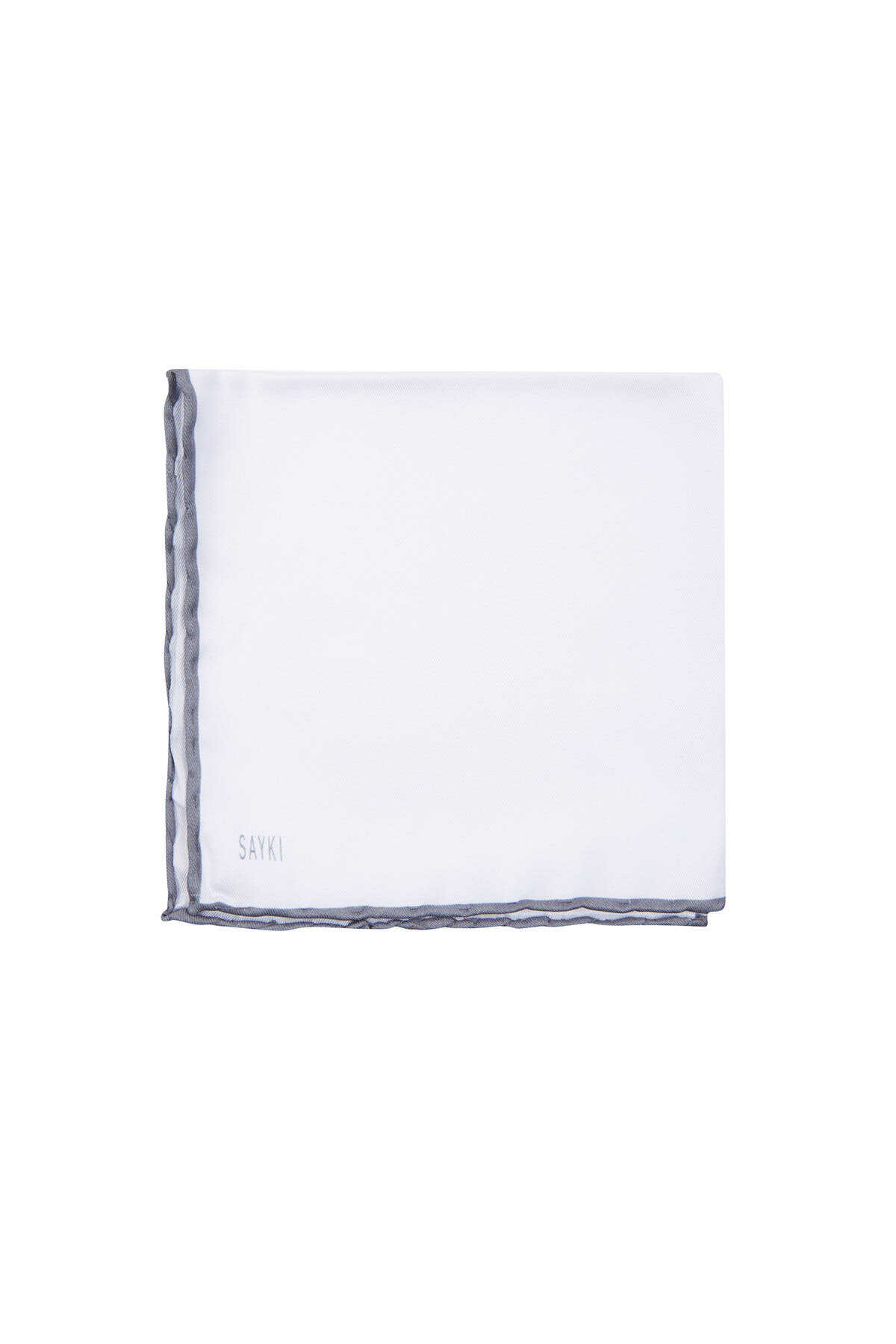 Beyaz - Gri Biyeli Cep Mendili