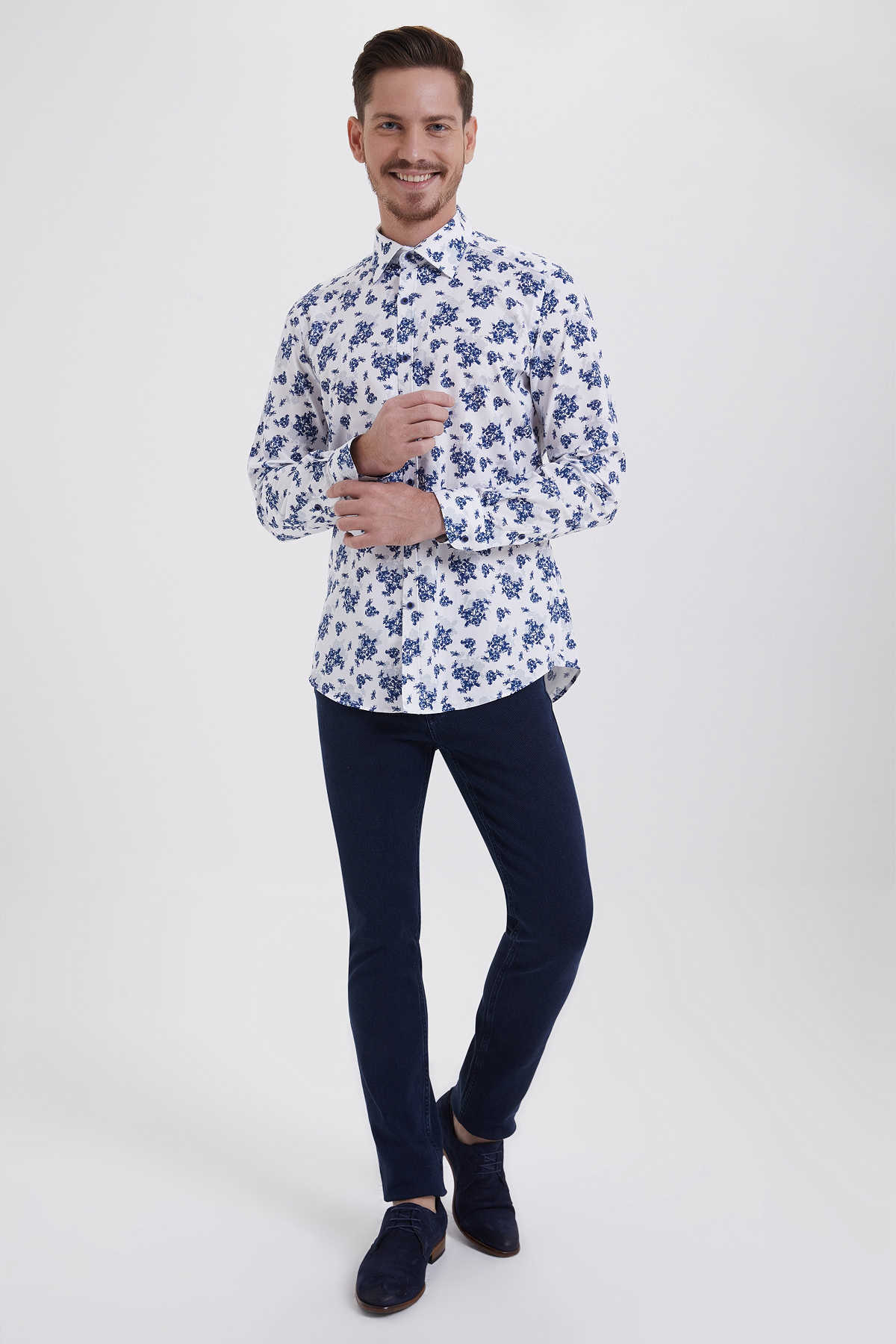 Beyaz Baskılı Slim Fit Gömlek