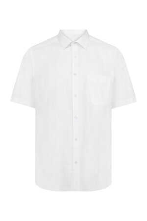 Beyaz Klasik Fit 100% Pamuk Kısa Kol Klasik Gömlek