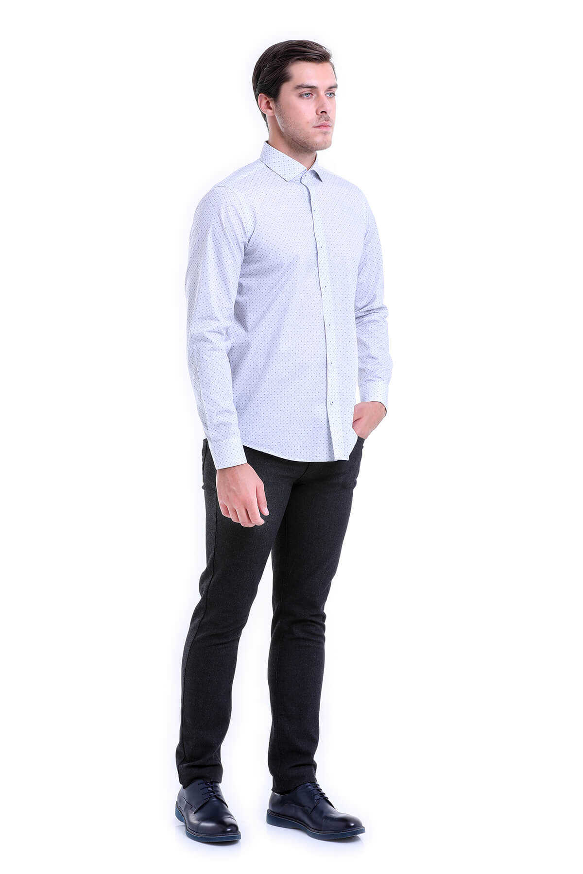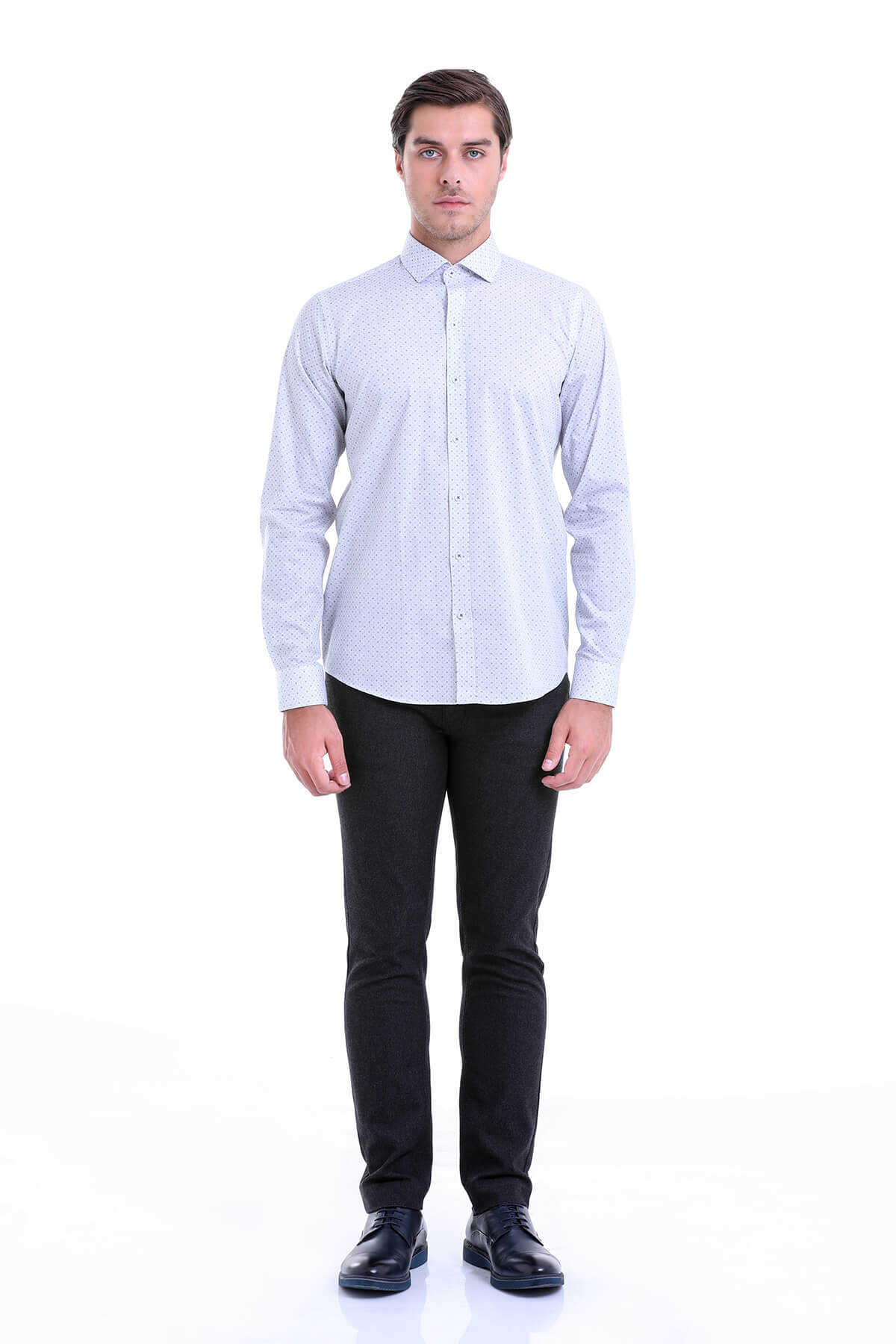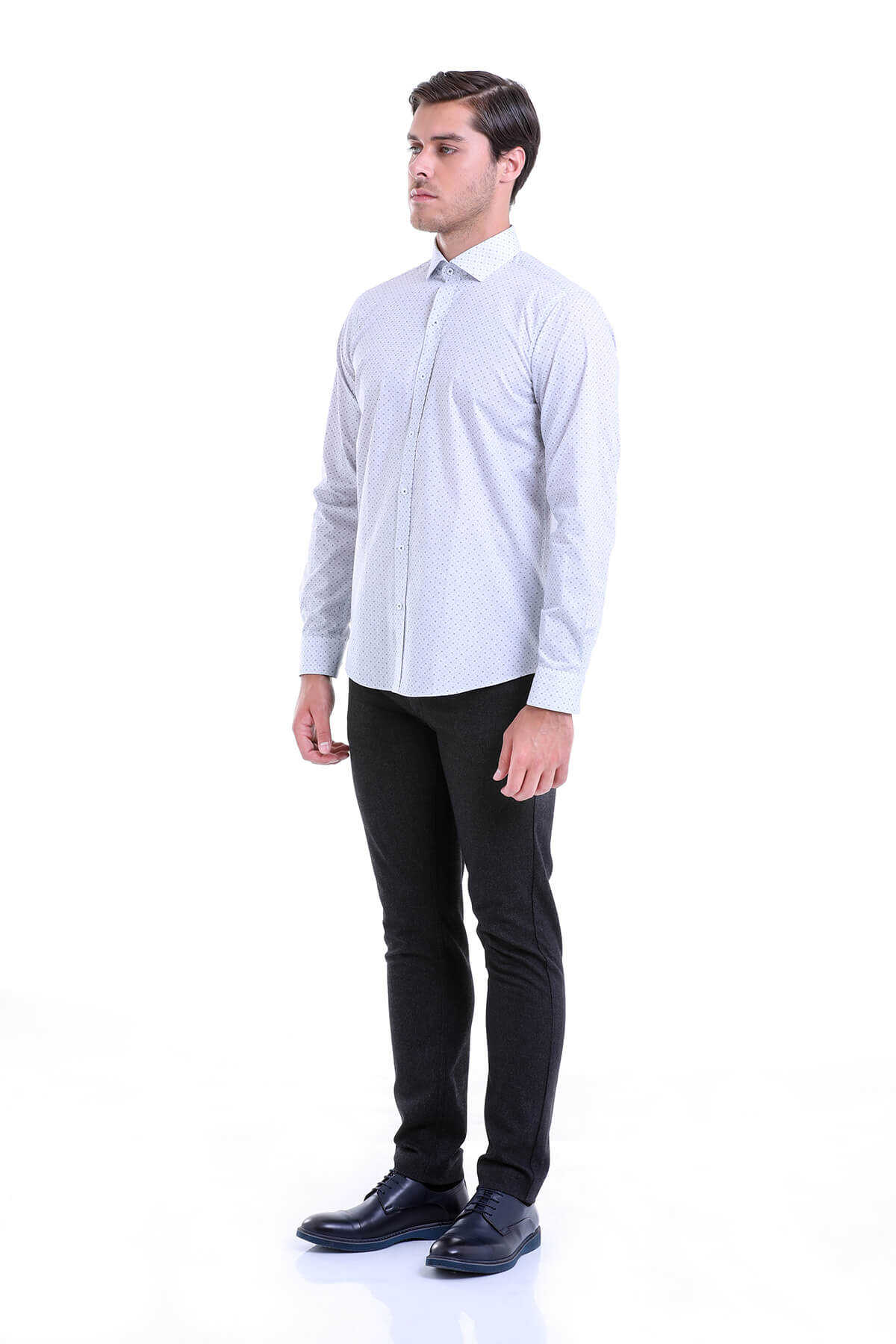 Gri Comfort Fit Baskılı 100% Pamuk Açık İtalyan Yaka Uzun Kollu Casual Gömlek