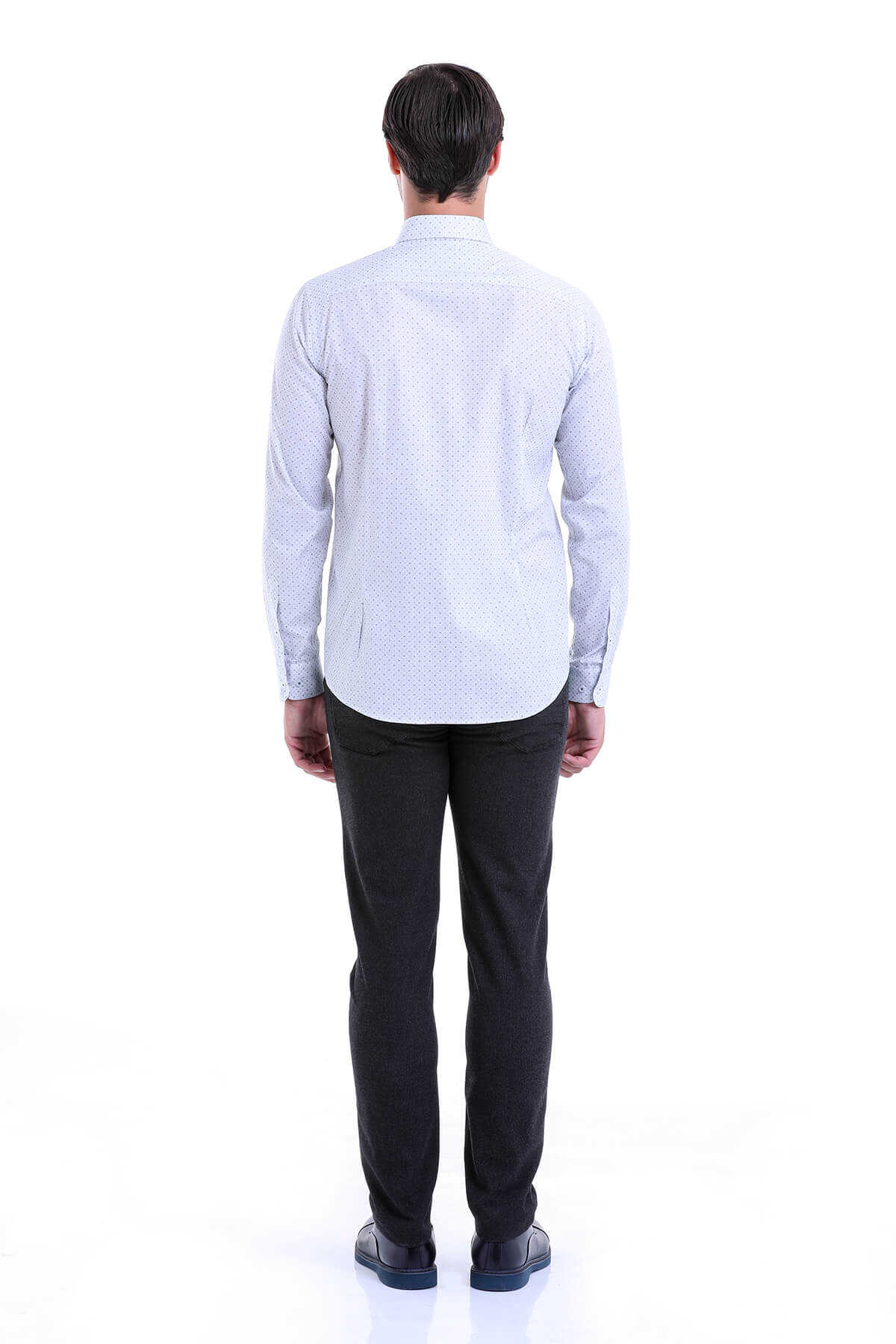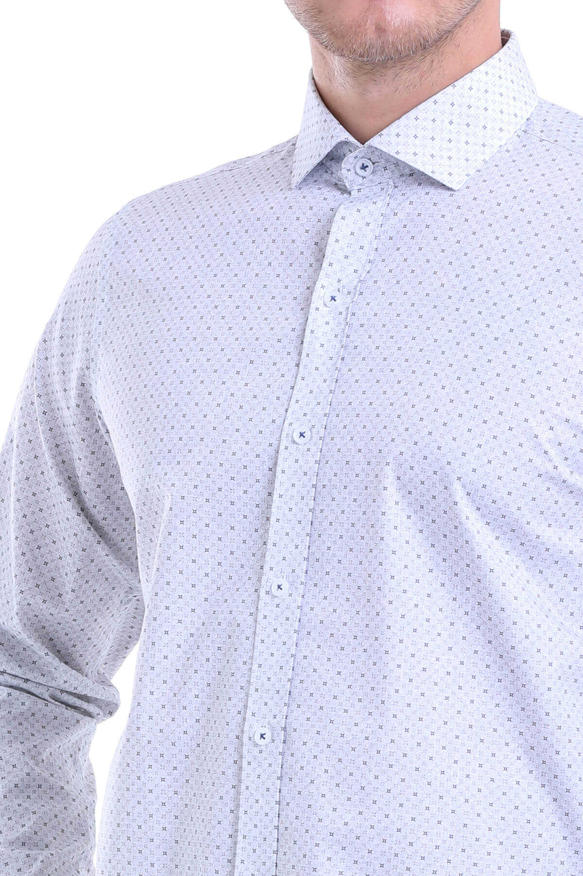 Gri Comfort Fit Baskılı 100% Pamuk Açık İtalyan Yaka Uzun Kollu Casual Gömlek - 6