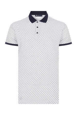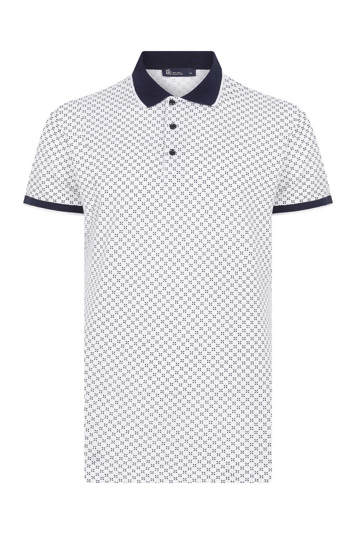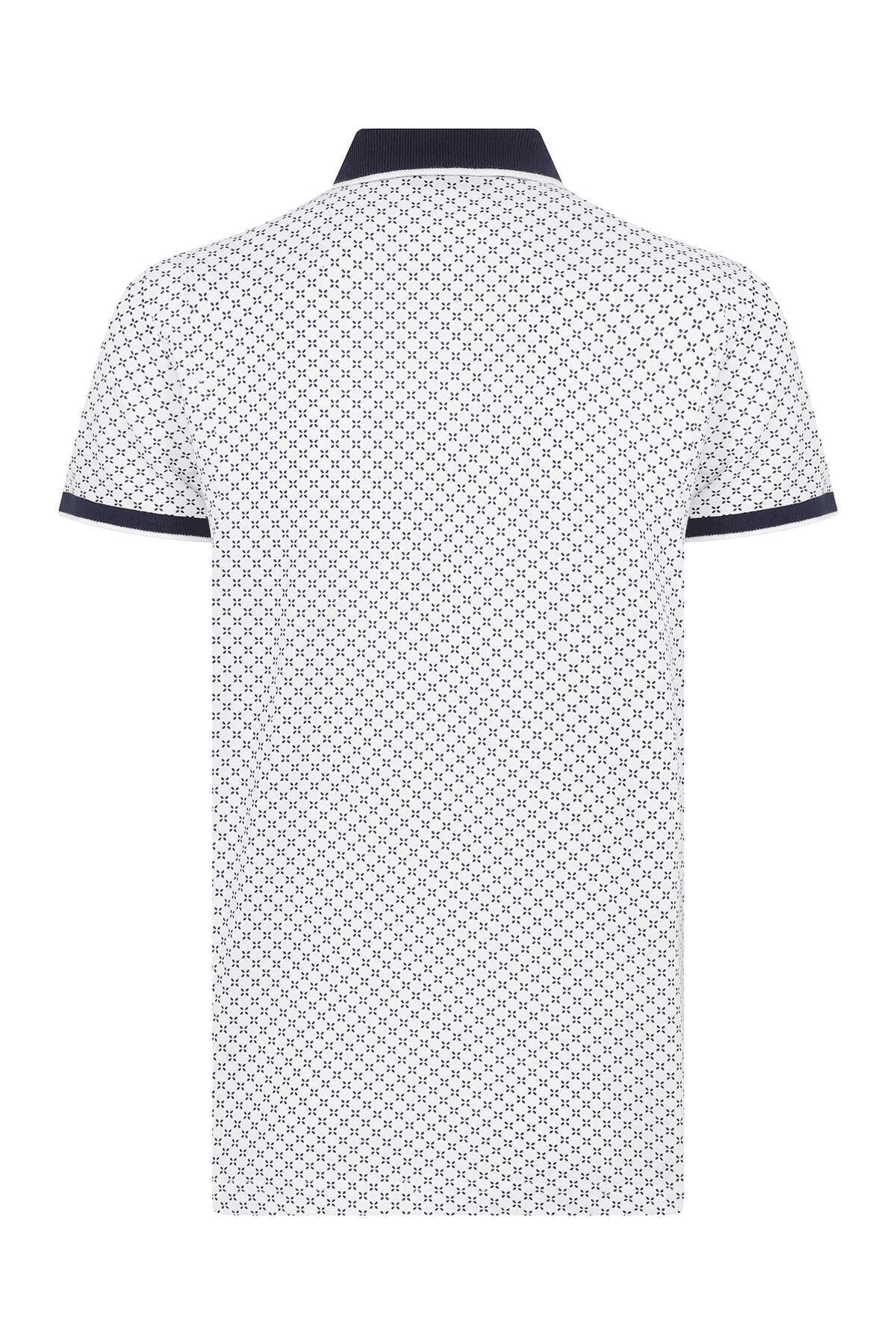 Beyaz Desenli Polo Yaka Tişört