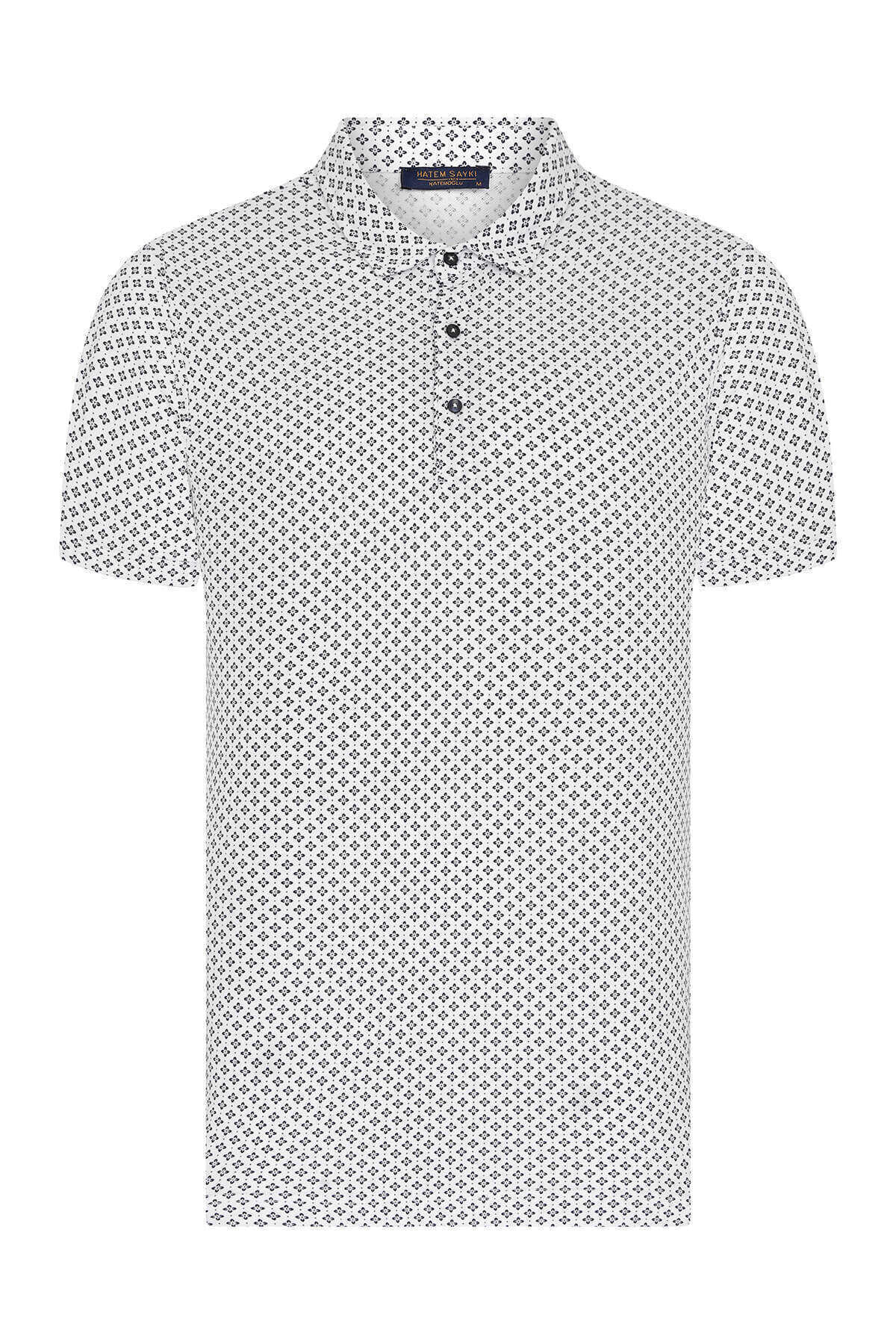 Beyaz Baskılı Polo Yaka Tişört