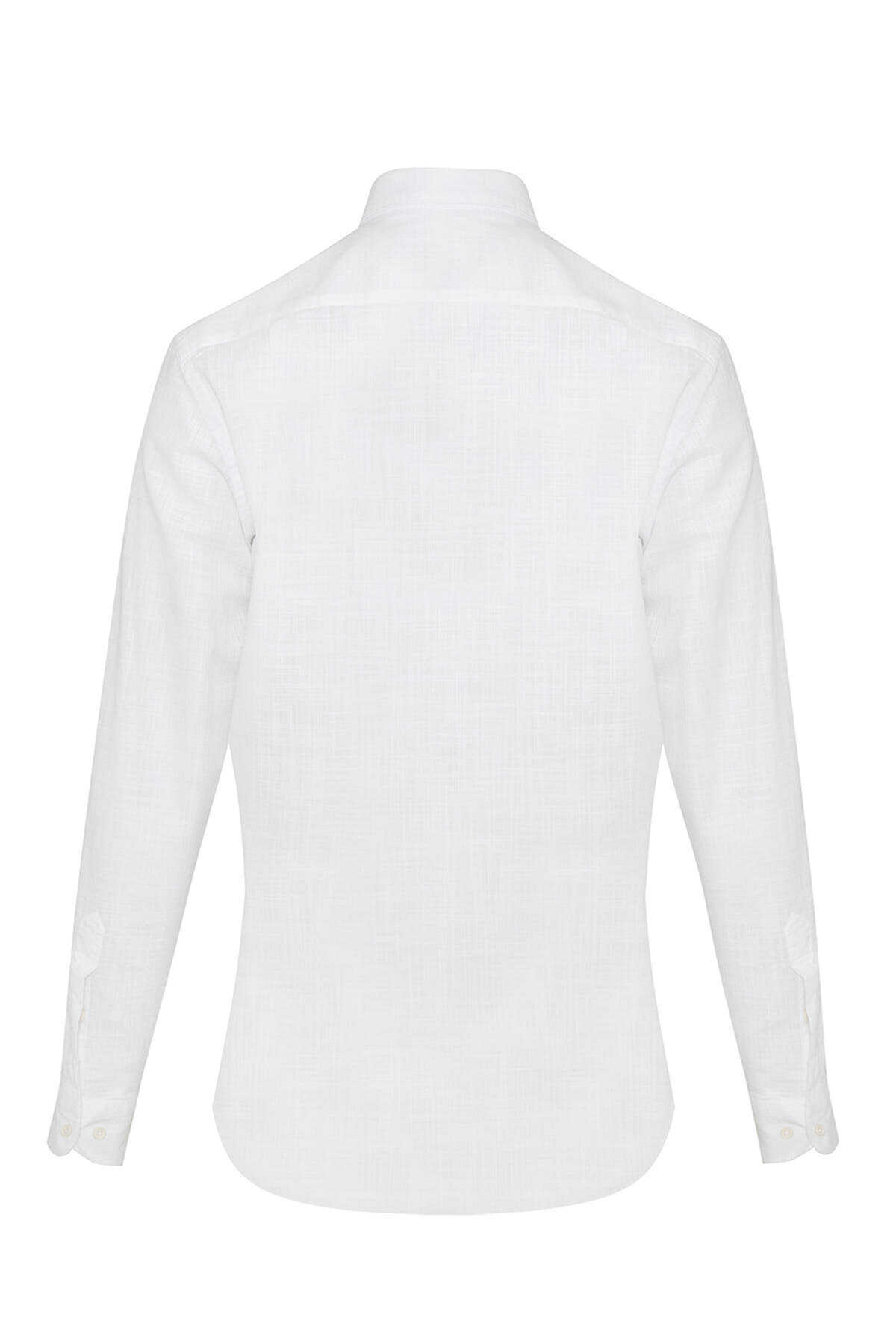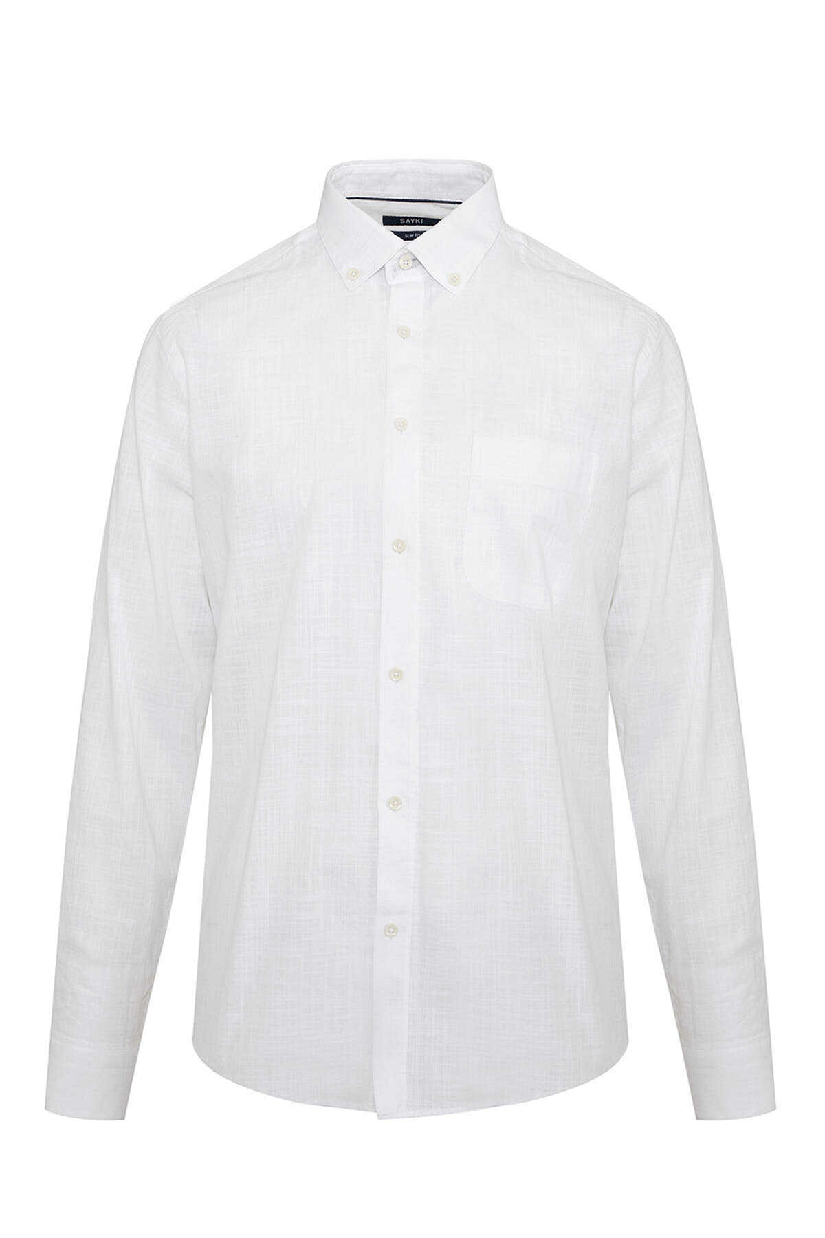 Beyaz Slim Fit 100% Pamuk Düğmeli Yaka Uzun Kollu Casual Gömlek
