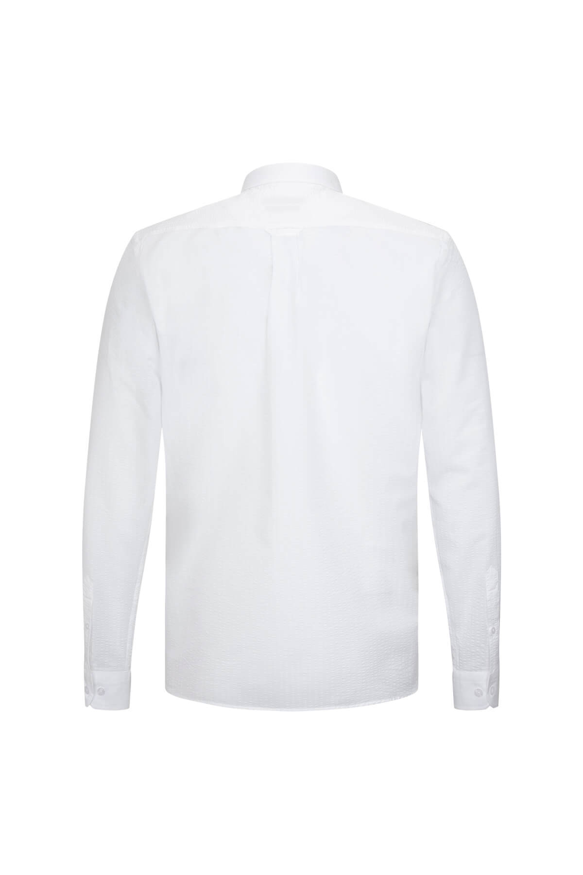 Beyaz Slim Yaka Uzun Kollu Gömlek, %100 pamuklu kumaşıyla gün boyu rahatlık ve nefes alabilirlik sunan, her erkeğin gardırobunda olması gereken zamansız bir parçadır. Sade ve modern tasarımıyla hem iş hayatınızda hem de casual kombinlerinizde şıklığı yakalamanızı sağlar.
