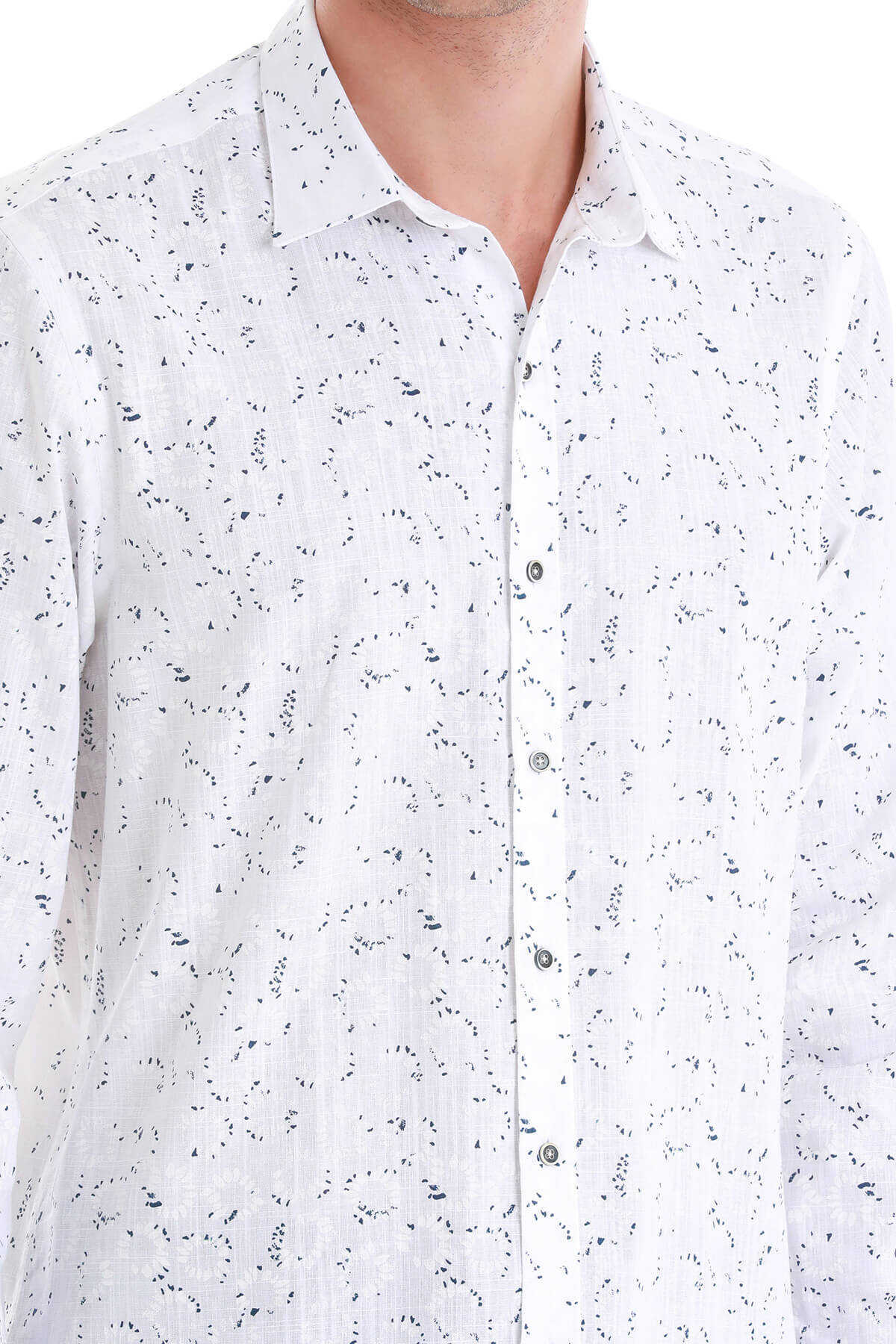 Beyaz Comfort Fit Baskılı Slim Yaka Uzun Kollu Spor Gömlek - 7
