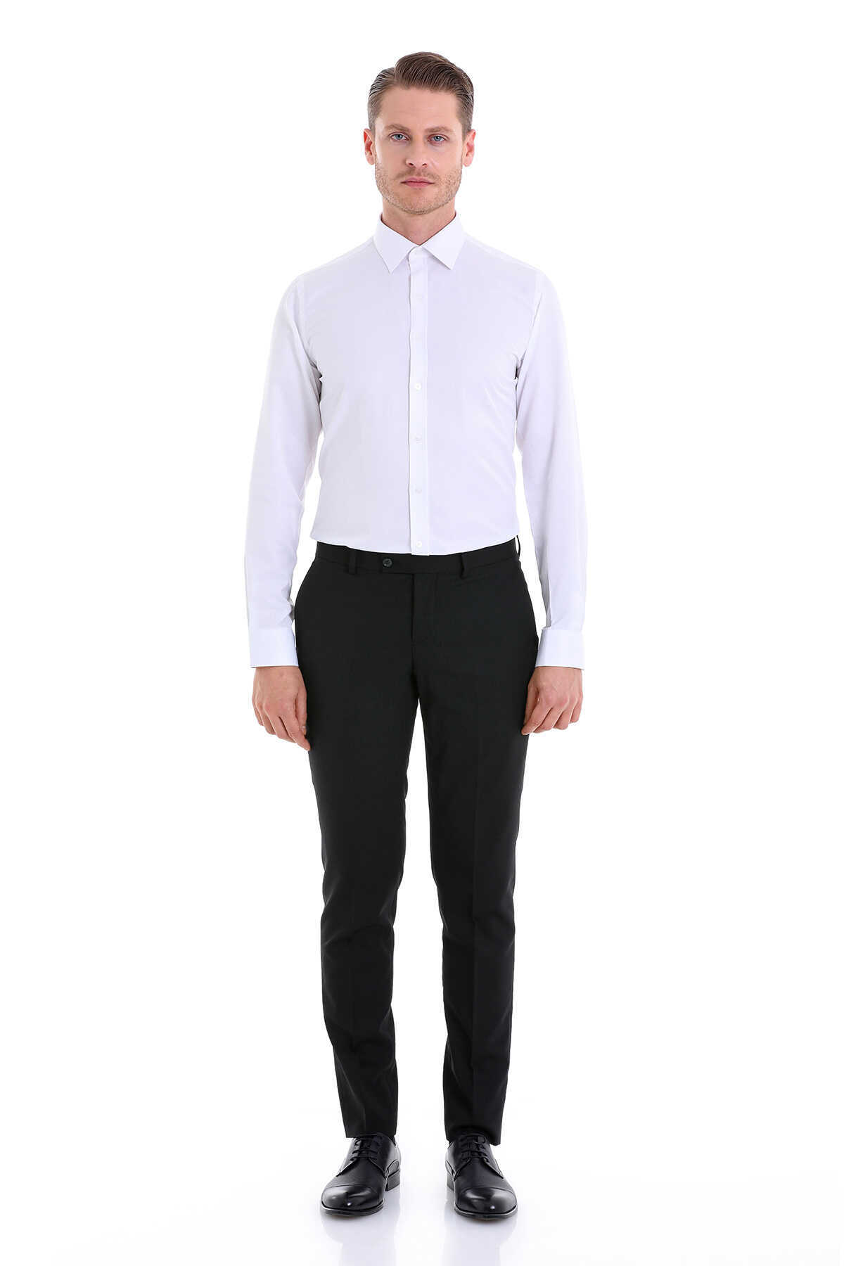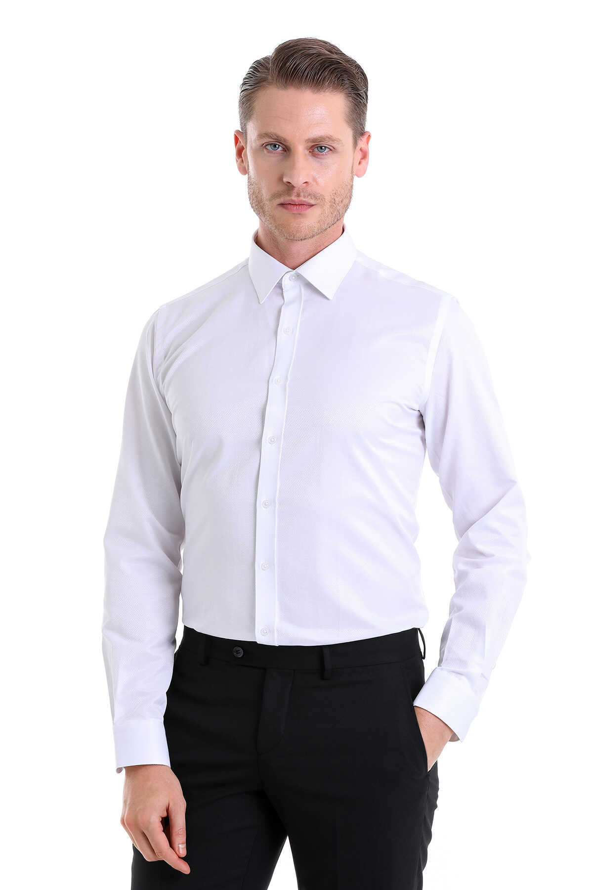 Beyaz Comfort Fit Desenli Pamuklu Slim Yaka Uzun Kollu Klasik Gömlek