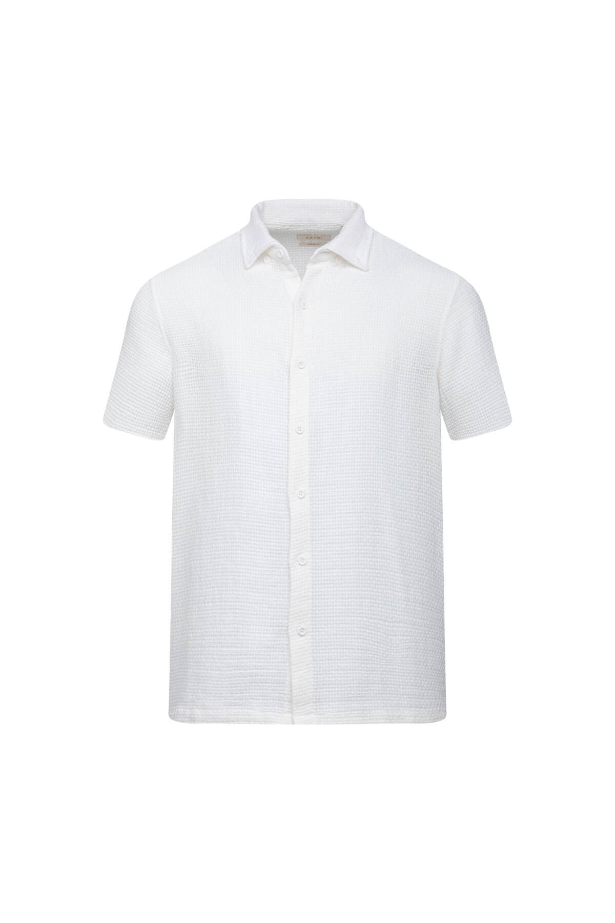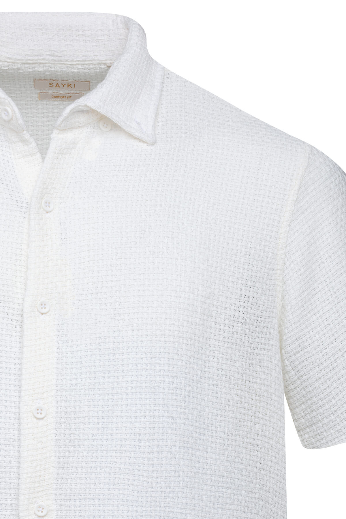 Beyaz Comfort Fit Düğmeli Yaka 100% Pamuk Kısa Kollu Casual Gömlek - 3