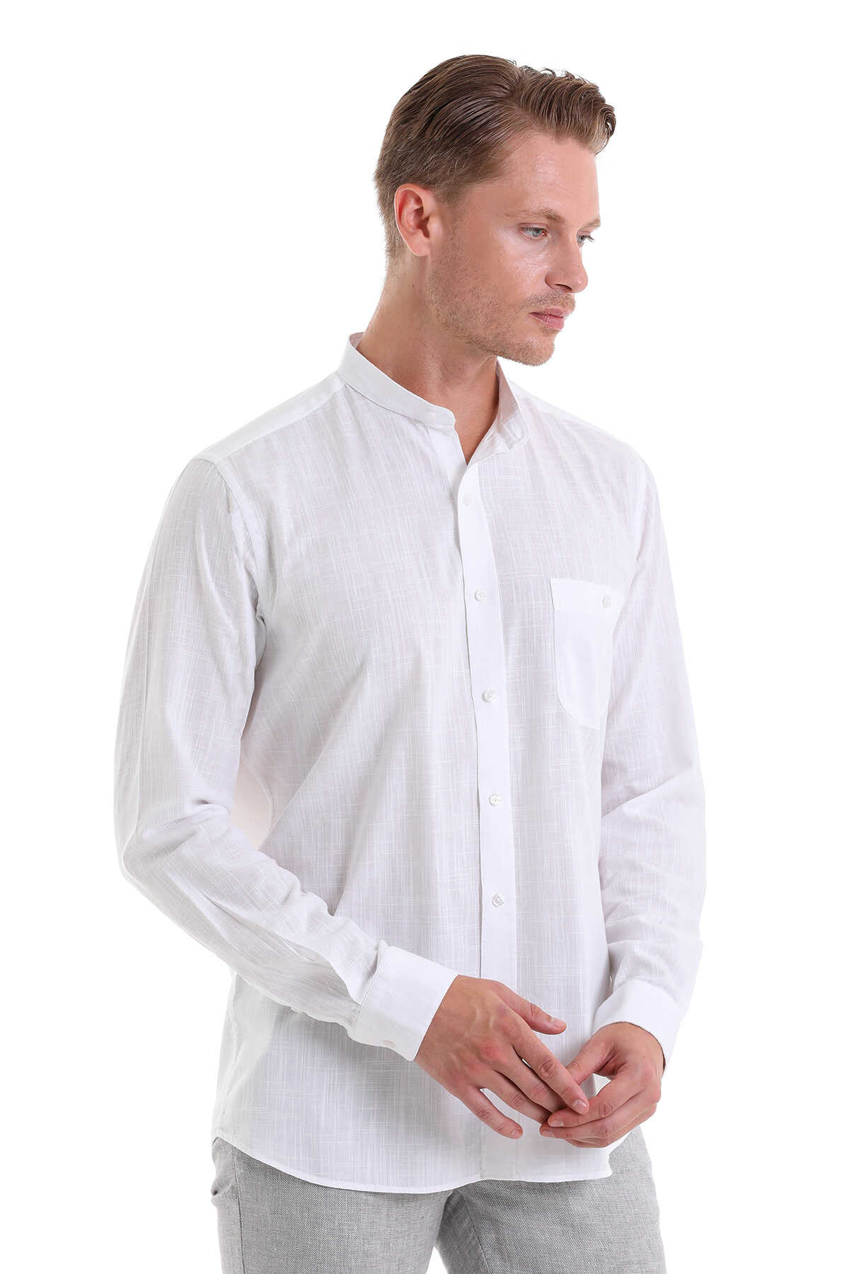 Beyaz Comfort Fit 100% Pamuk Hakim Yaka Uzun Kollu Spor Gömlek - 6