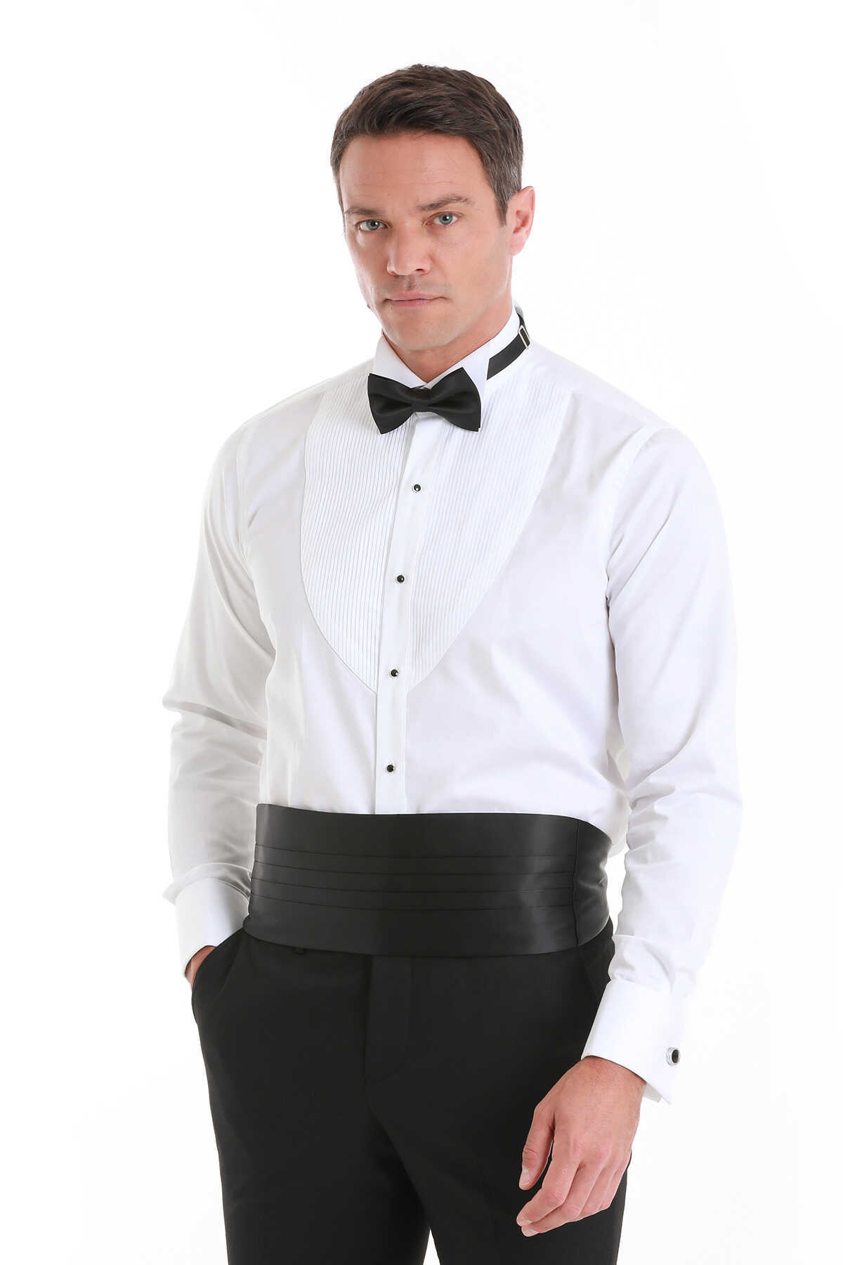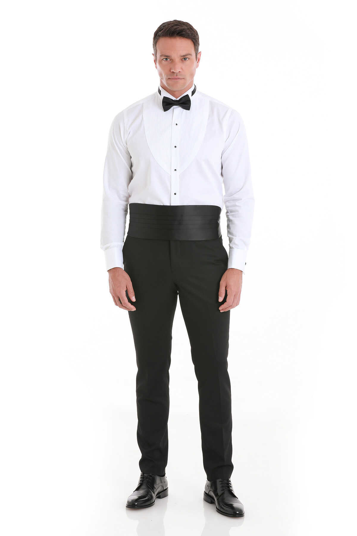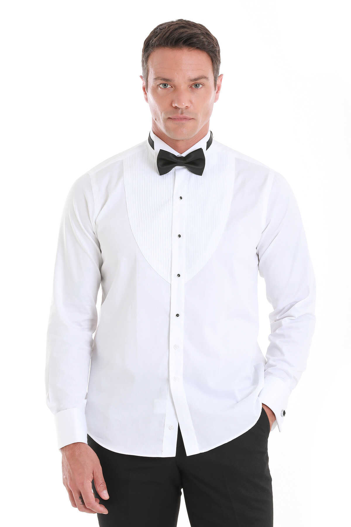 Beyaz Comfort Fit 100% Pamuk Slim Yaka Manşetli Saten Klasik Gömlek