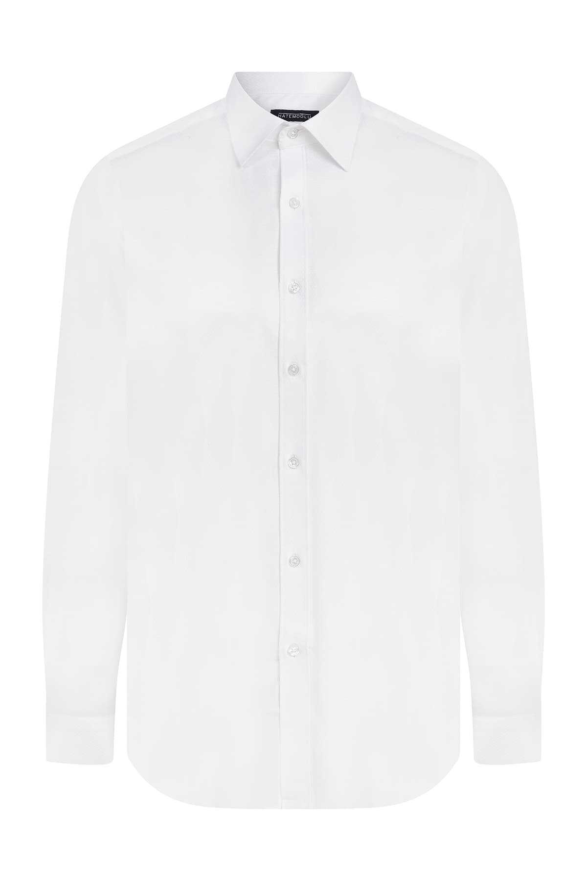 Beyaz Slim Fit Armürlü Gömlek