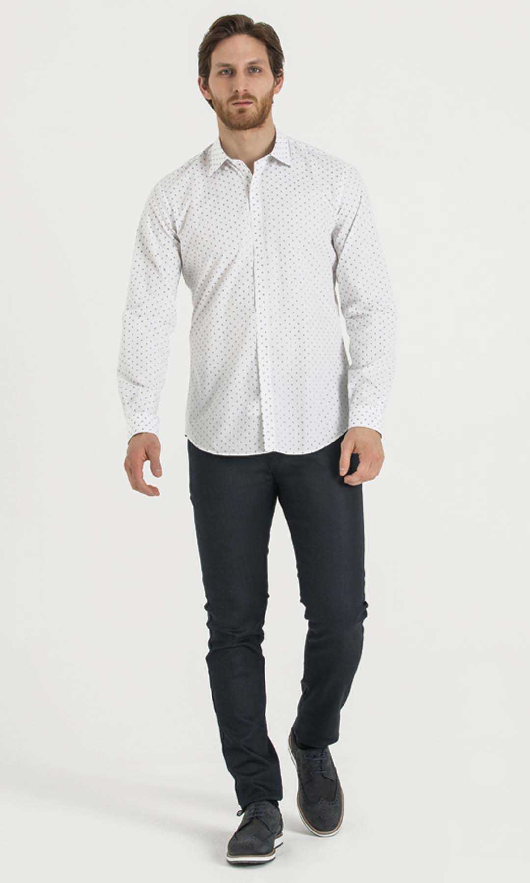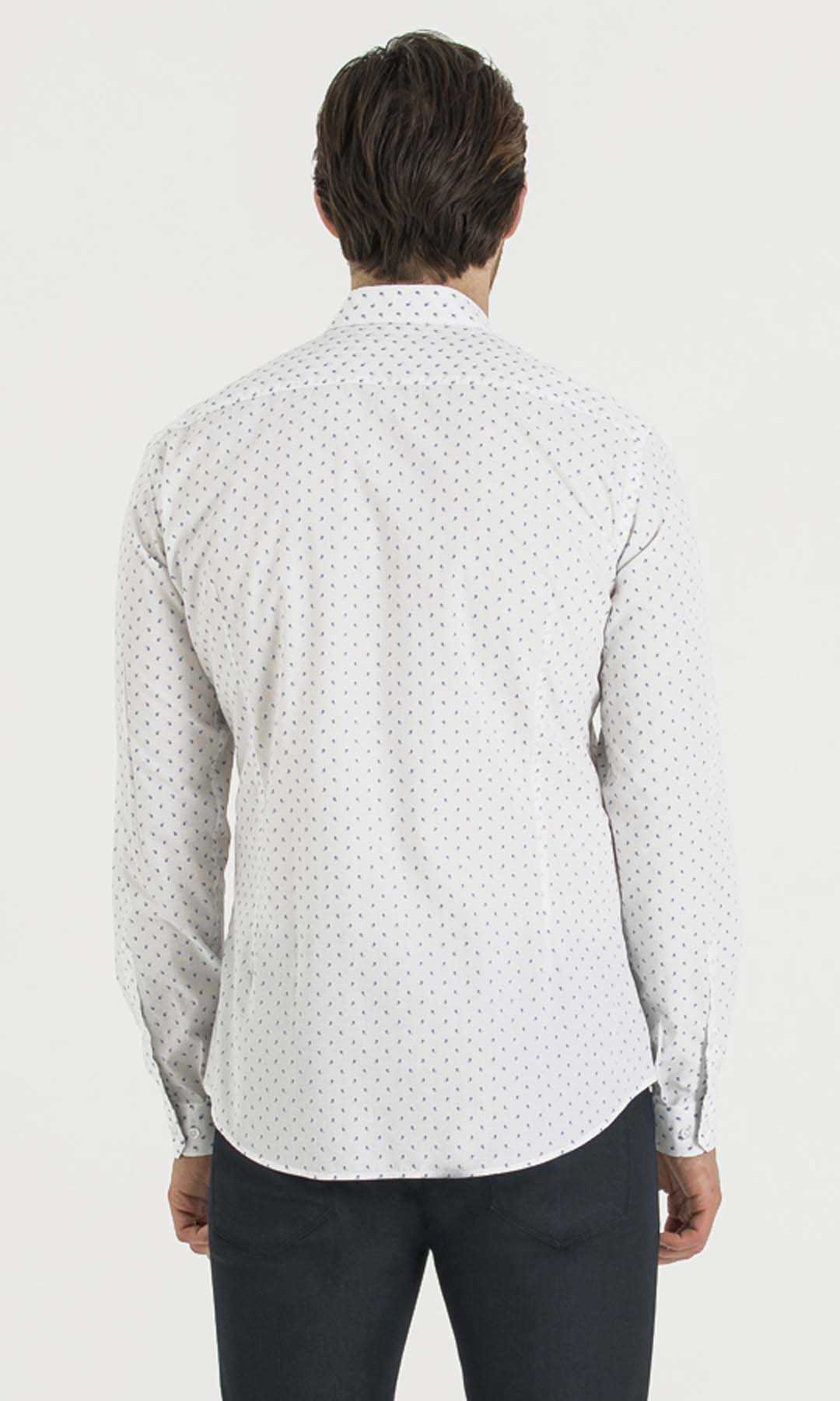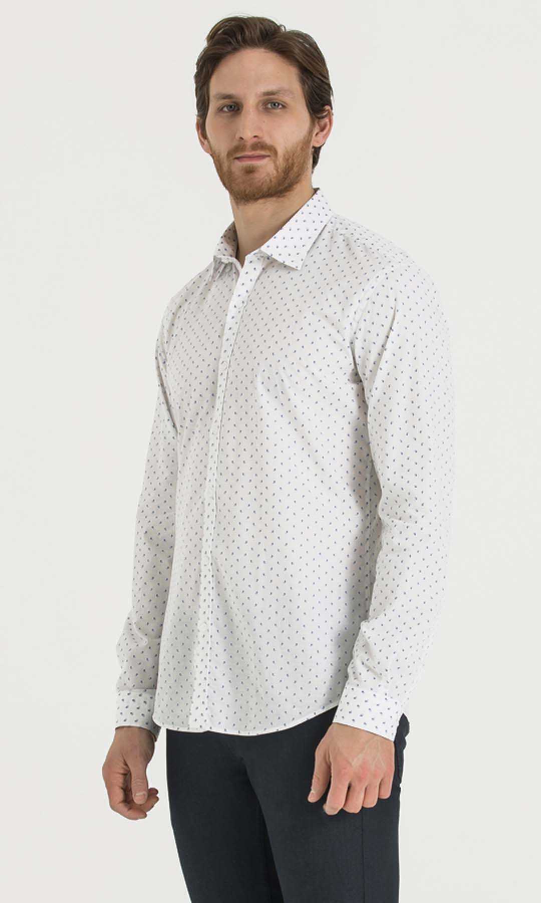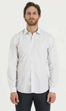 Desenli Slim Fit Beyaz Gömlek