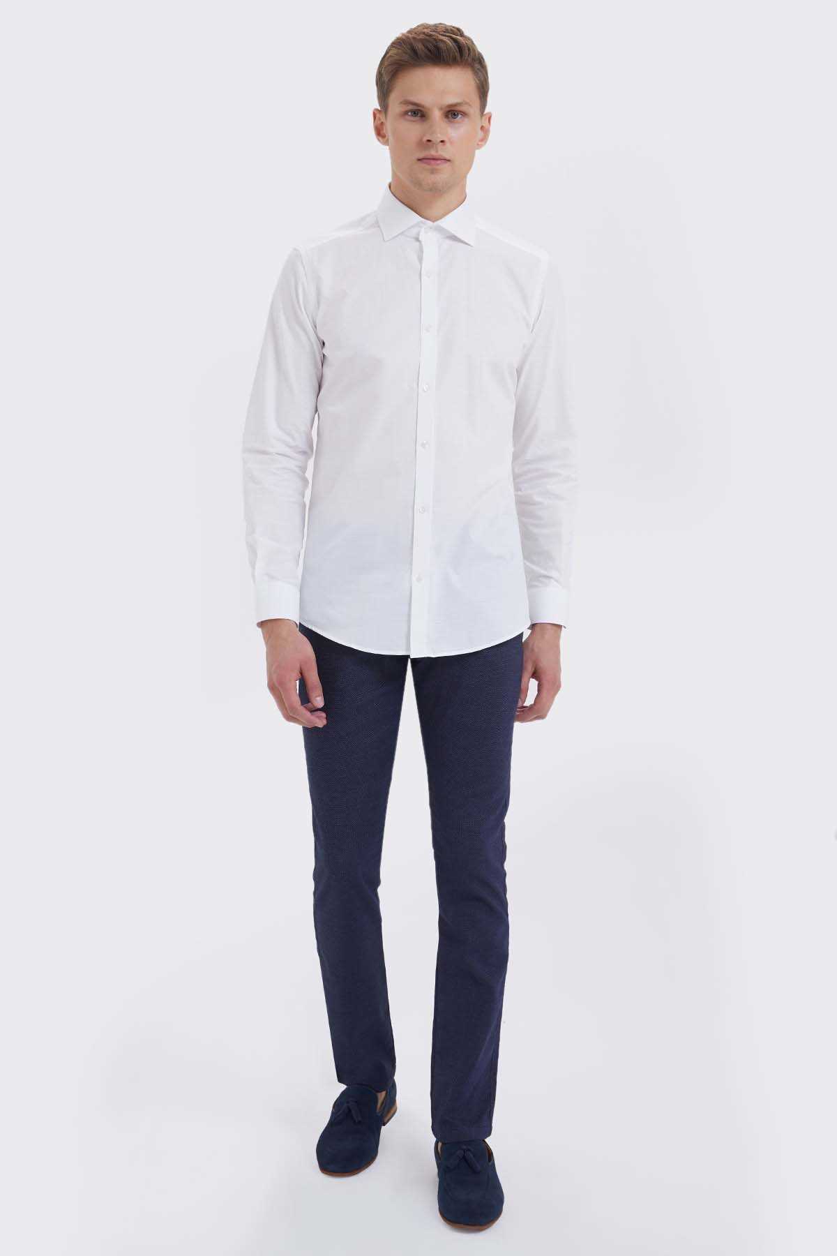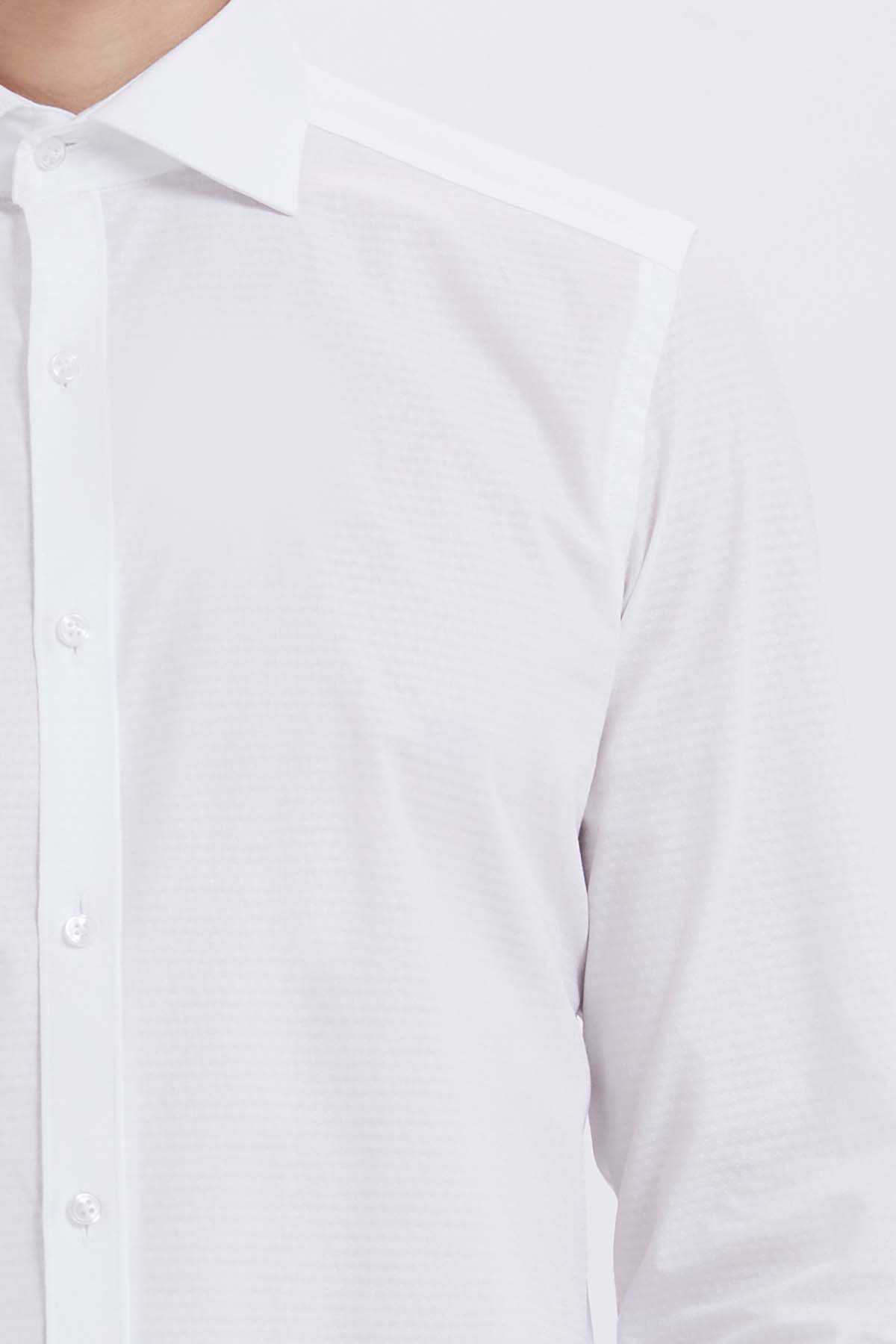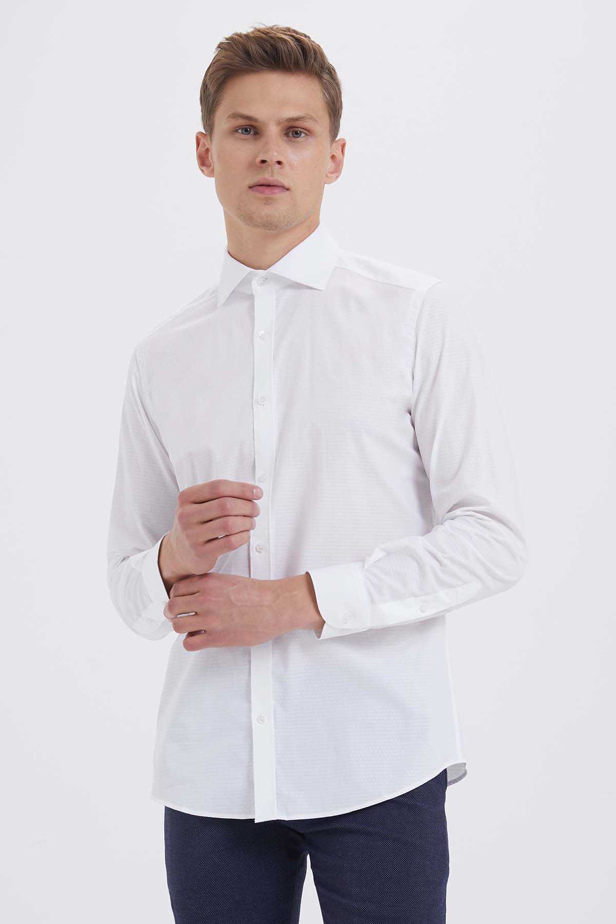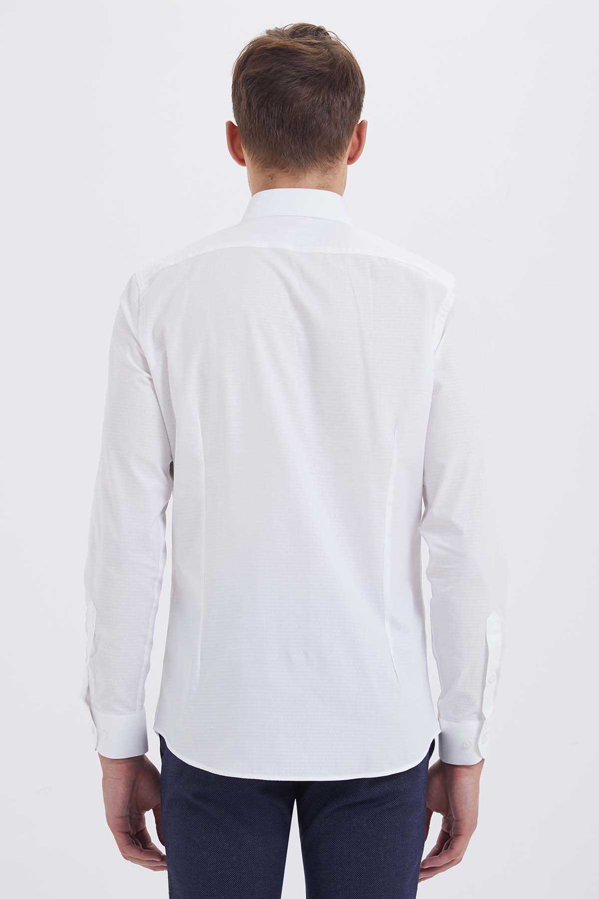 Beyaz Desenli Slim Fit Gömlek