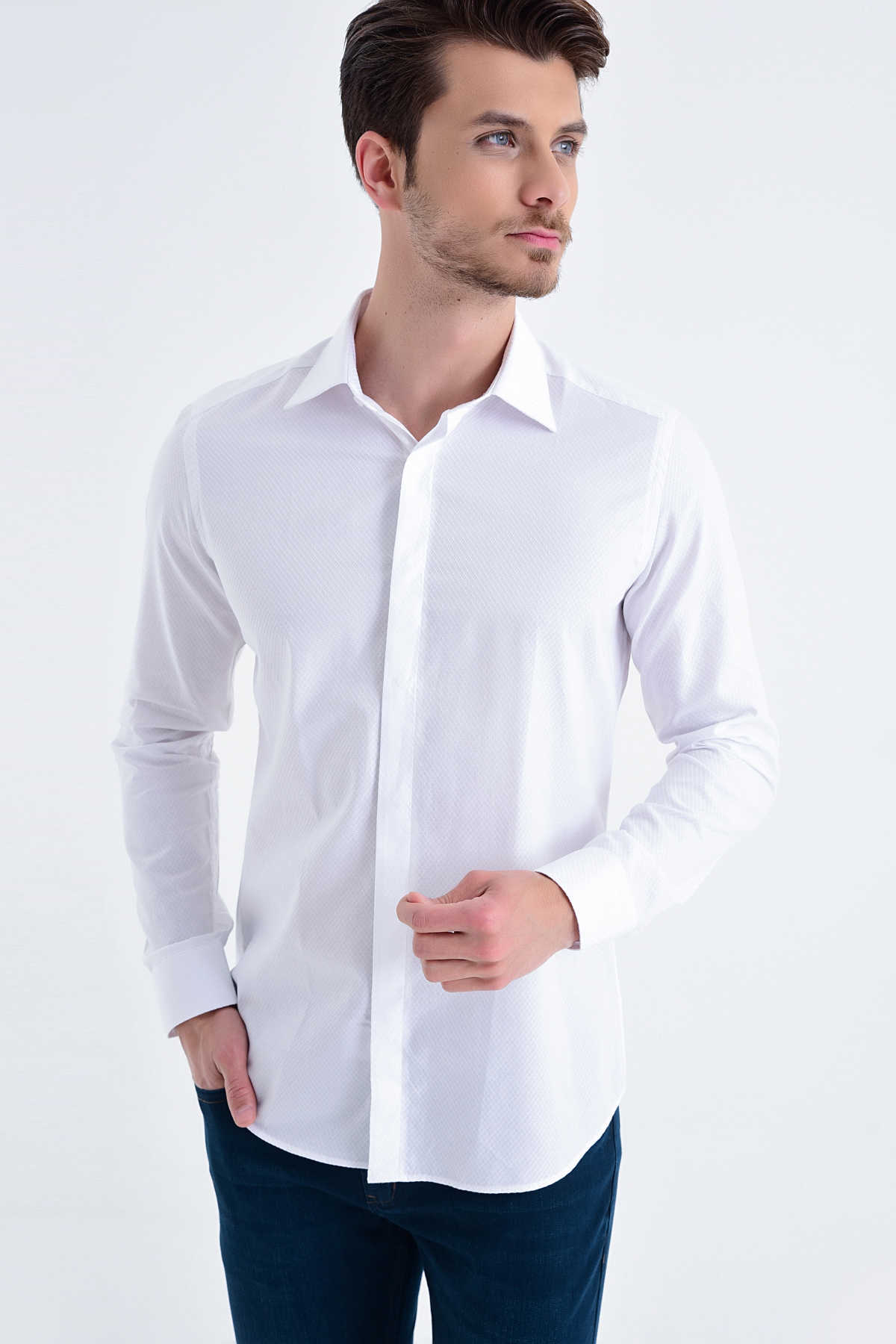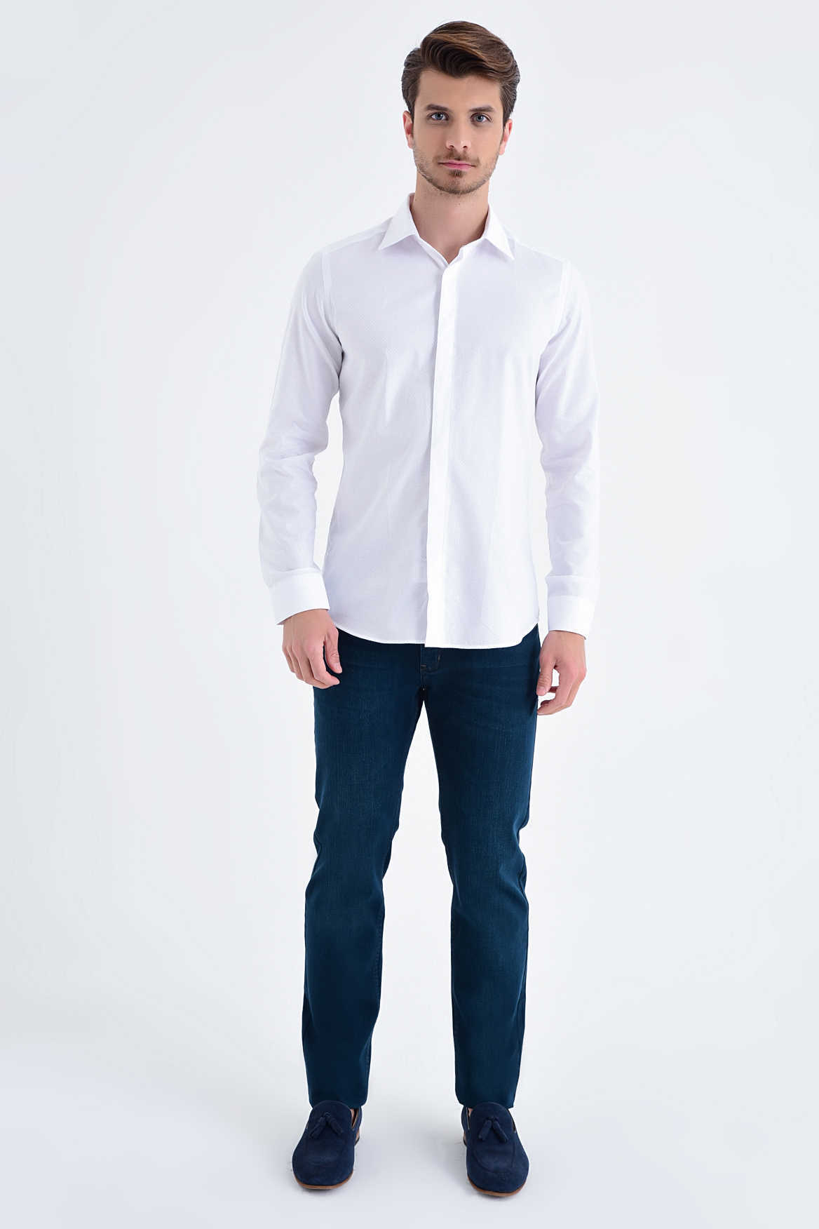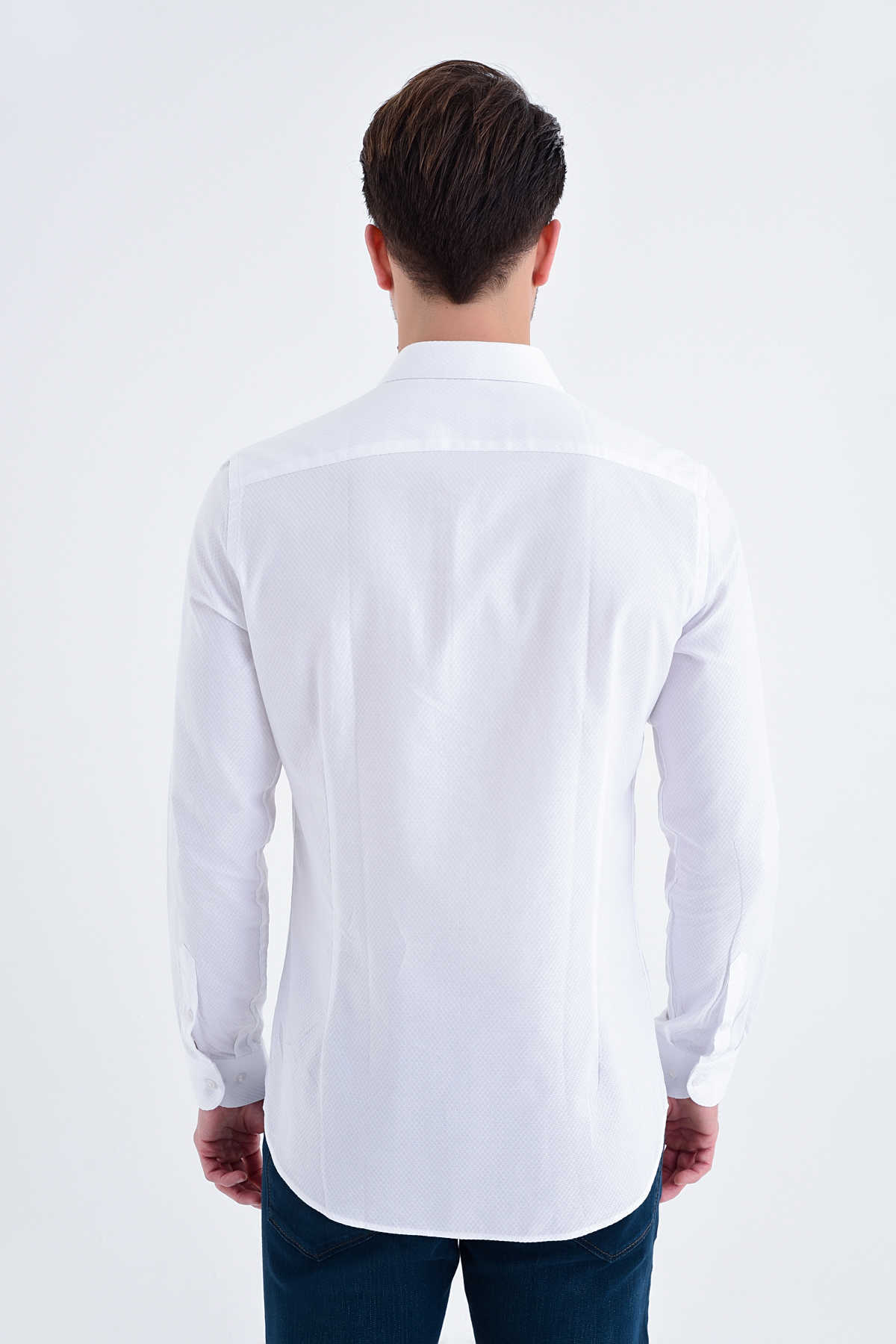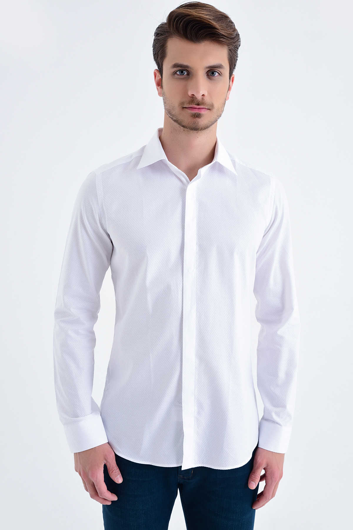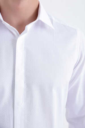 Beyaz Desenli Slim Fit Gömlek