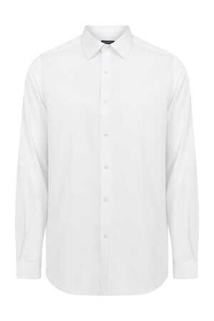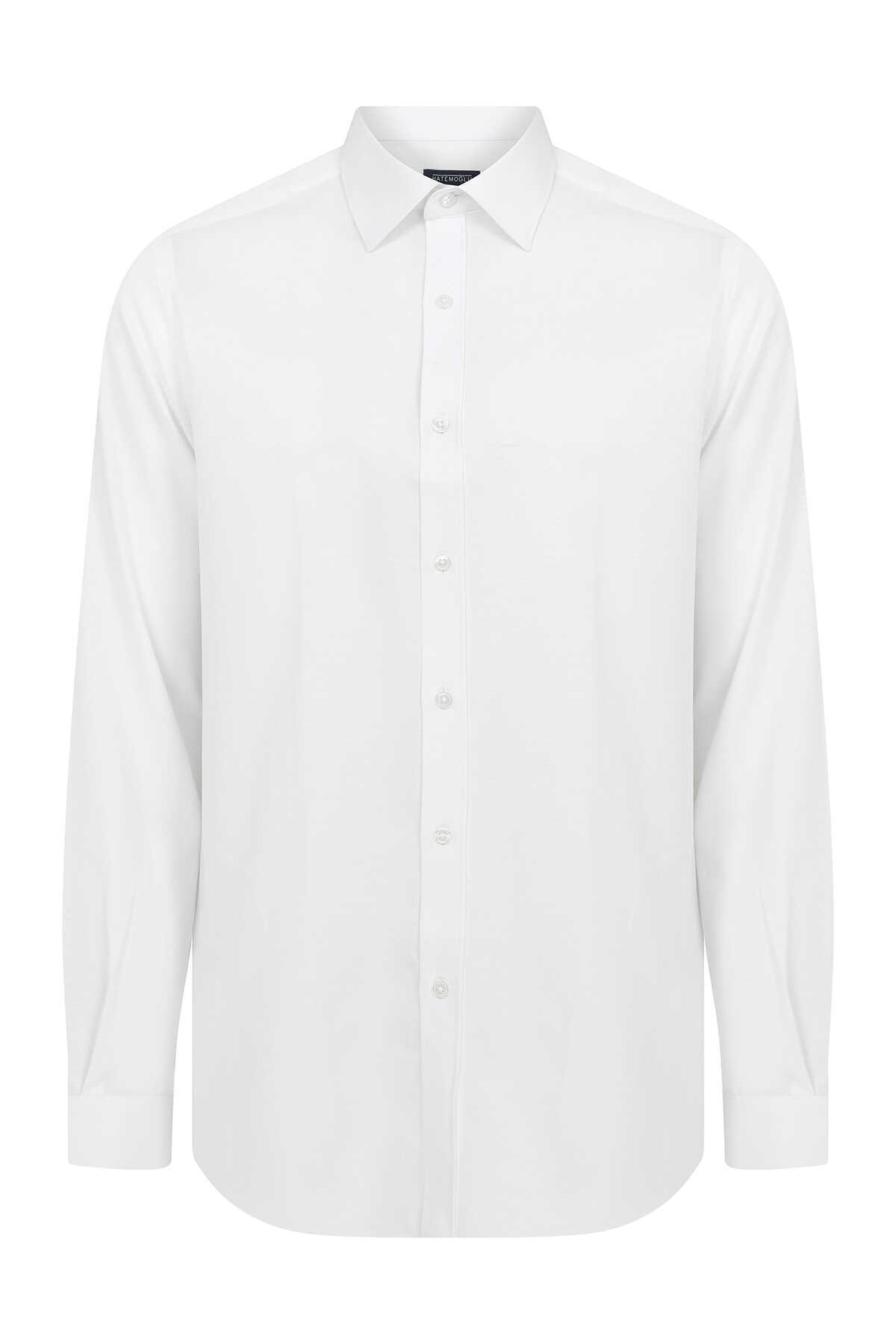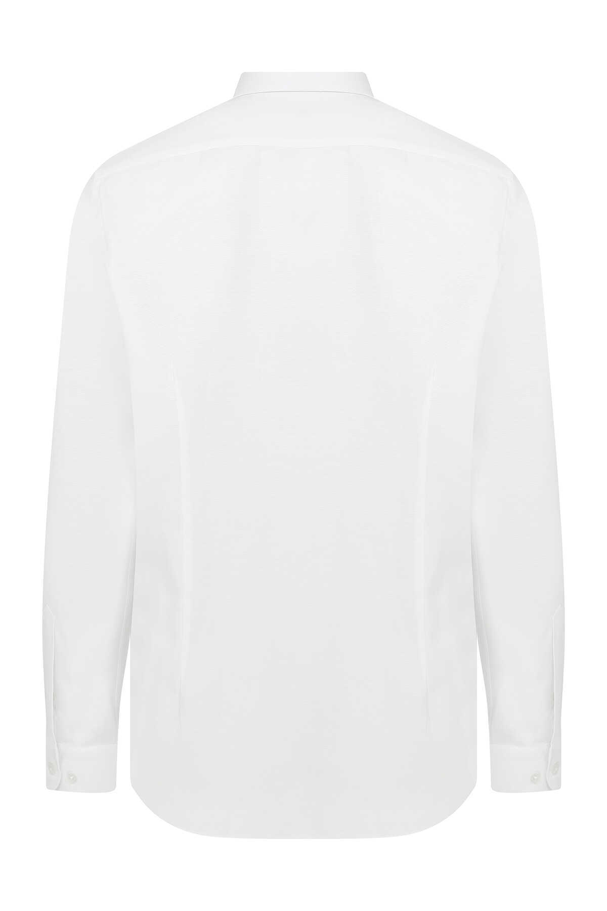 Slim Fit Armürlü Beyaz Gömlek