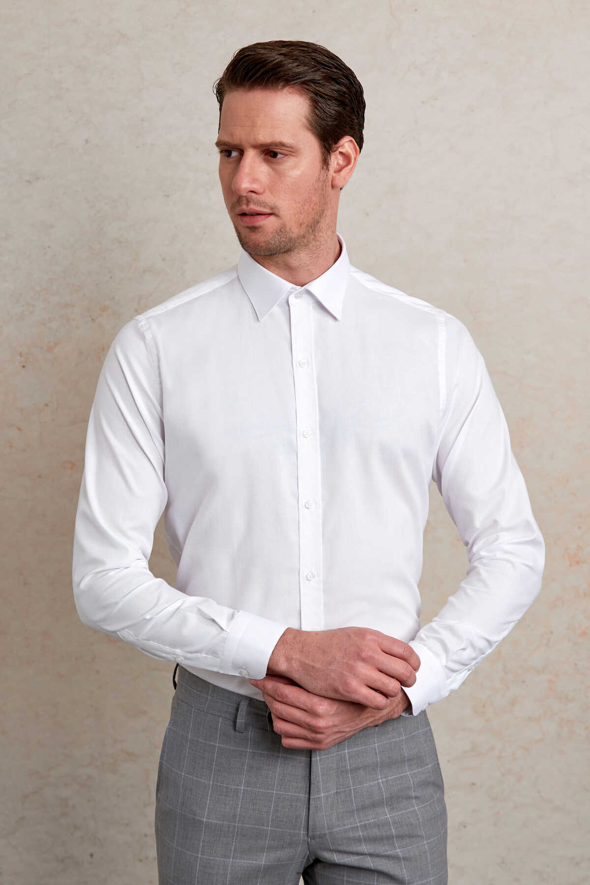 Beyaz Comfort Fit Desenli 100% Pamuk Slim Yaka Uzun Kollu Casual Gömlek