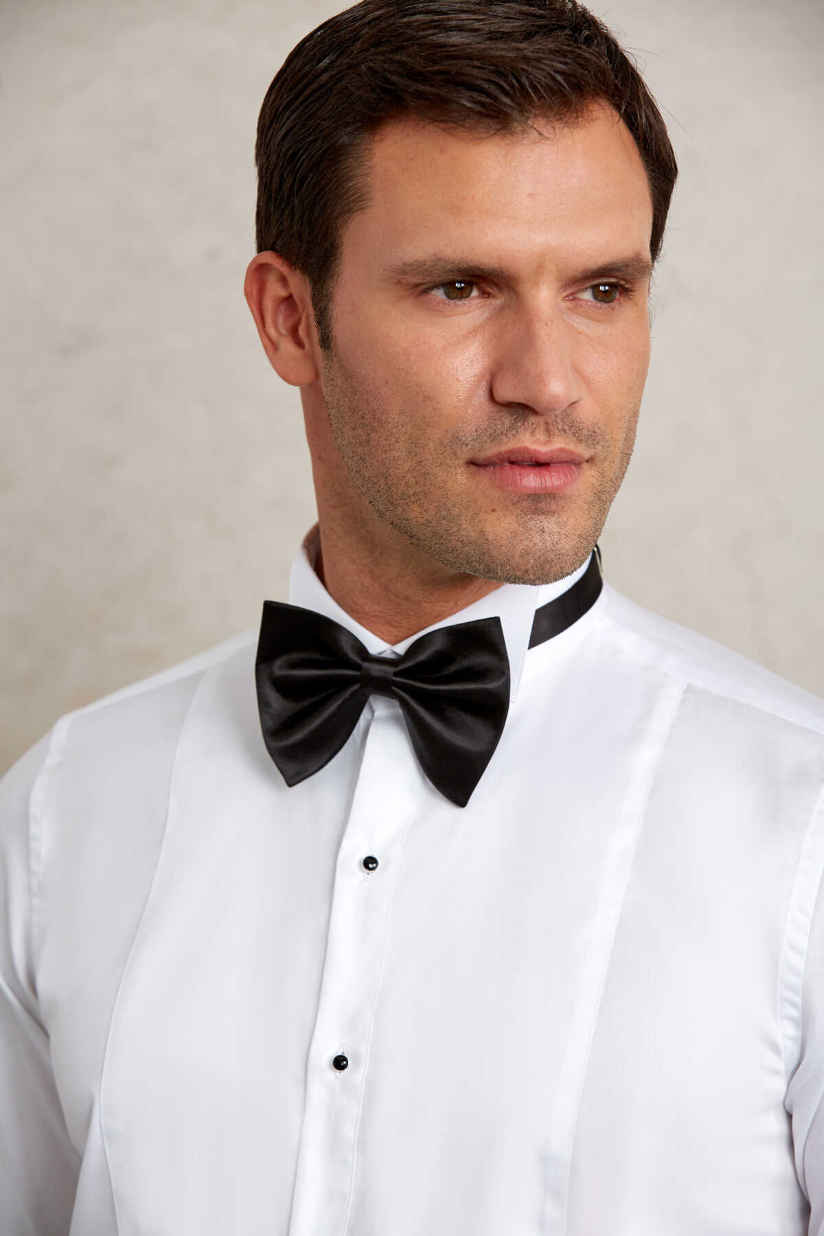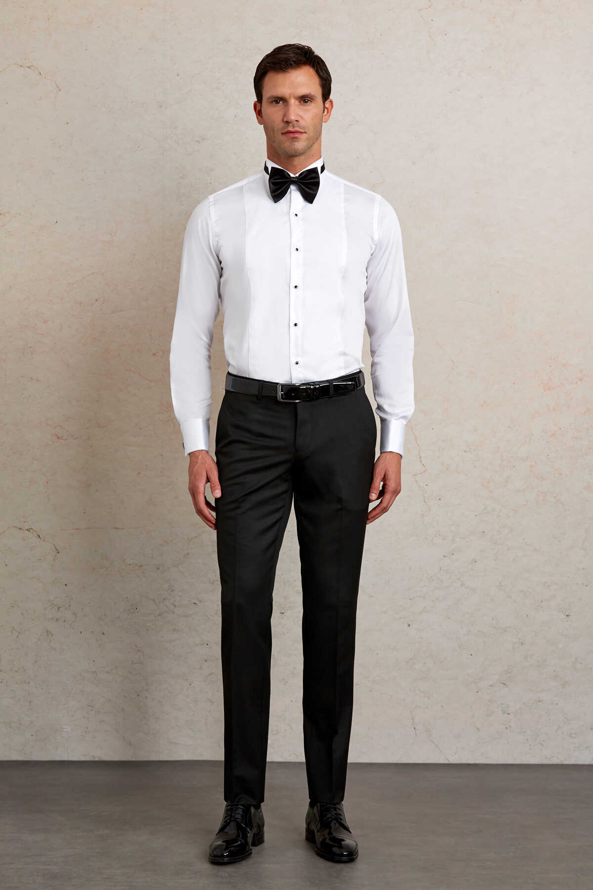 Beyaz Comfort Fit 100% Pamuk Ata Yaka Manşetli Uzun Kol Saten Damatlık Gömlek