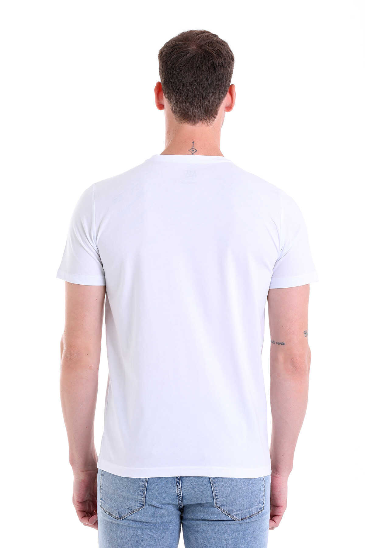 Beyaz Regular Fit Düz 100% Pamuklu V Yaka Tişört - 6