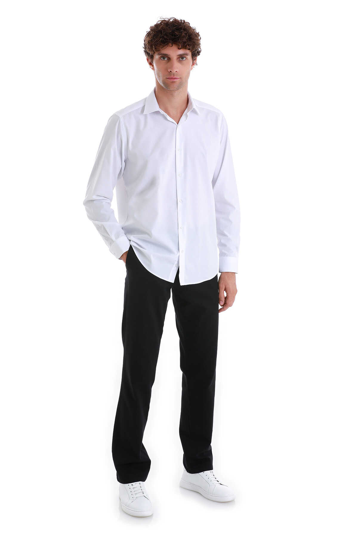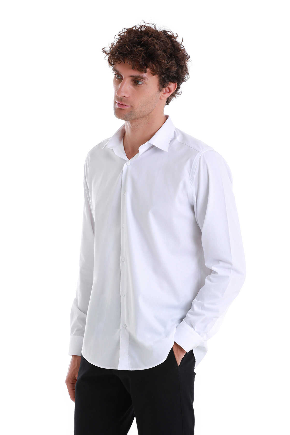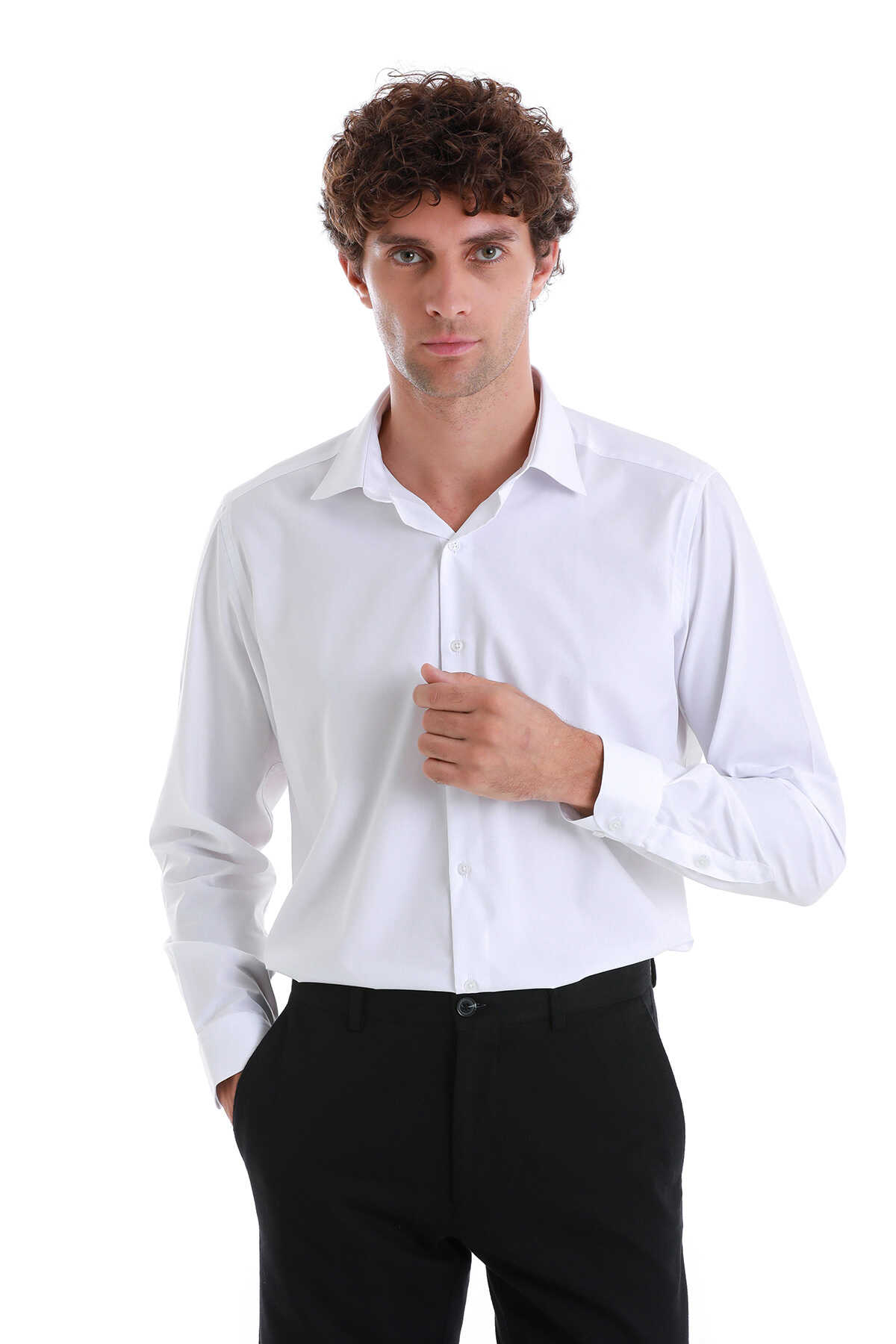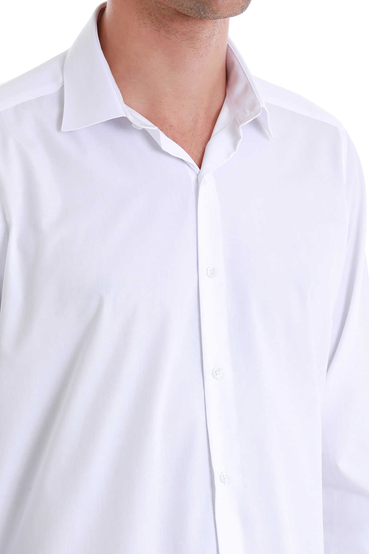 Beyaz Klasik Fit Slim Yaka Pamuklu Uzun Kollu Gömlek - 12