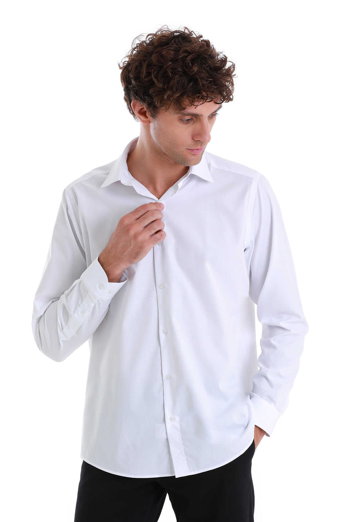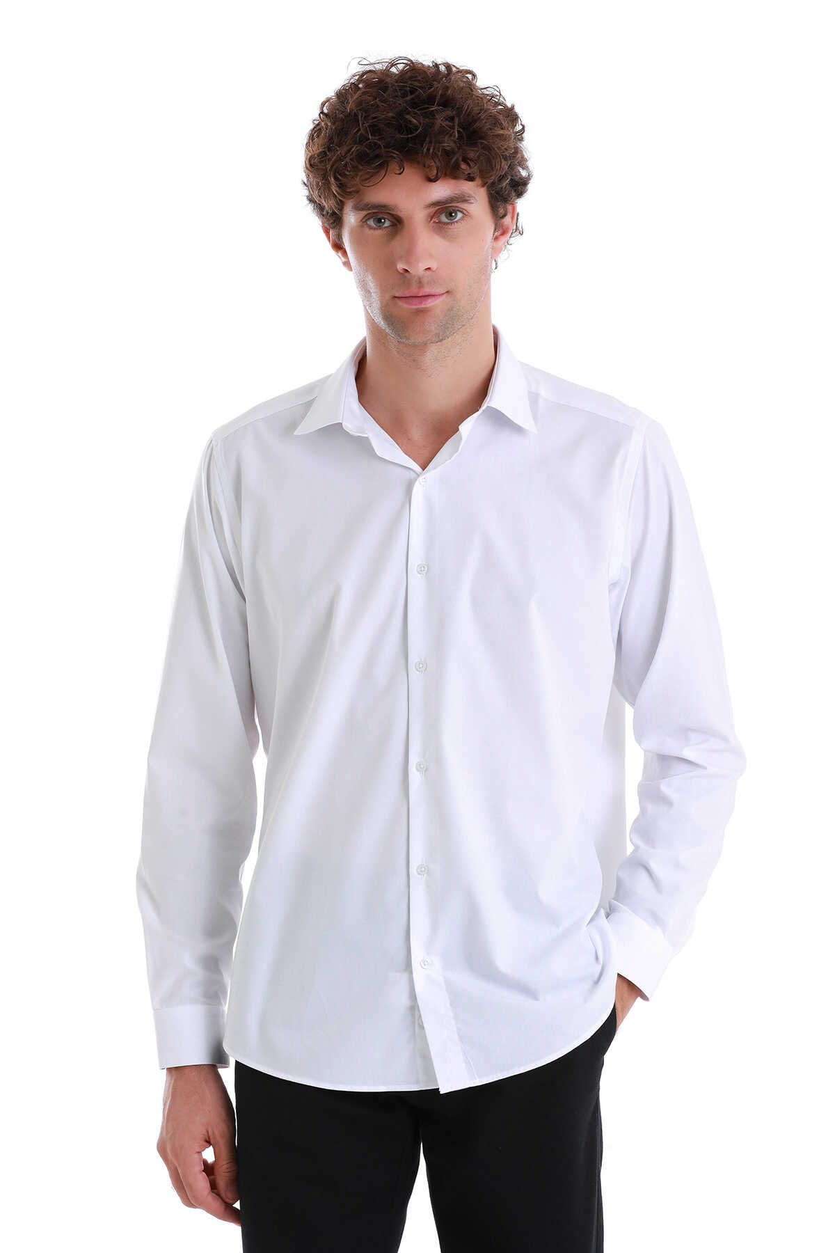 Beyaz Klasik Fit Slim Yaka Pamuklu Uzun Kollu Gömlek