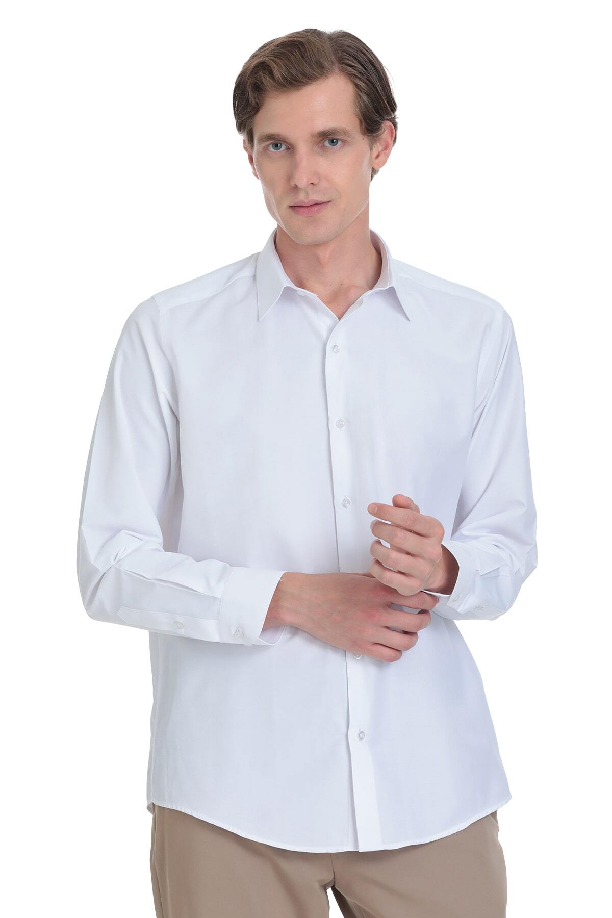 Beyaz Klasik Fit Slim Yaka Pamuklu Uzun Kollu Gömlek