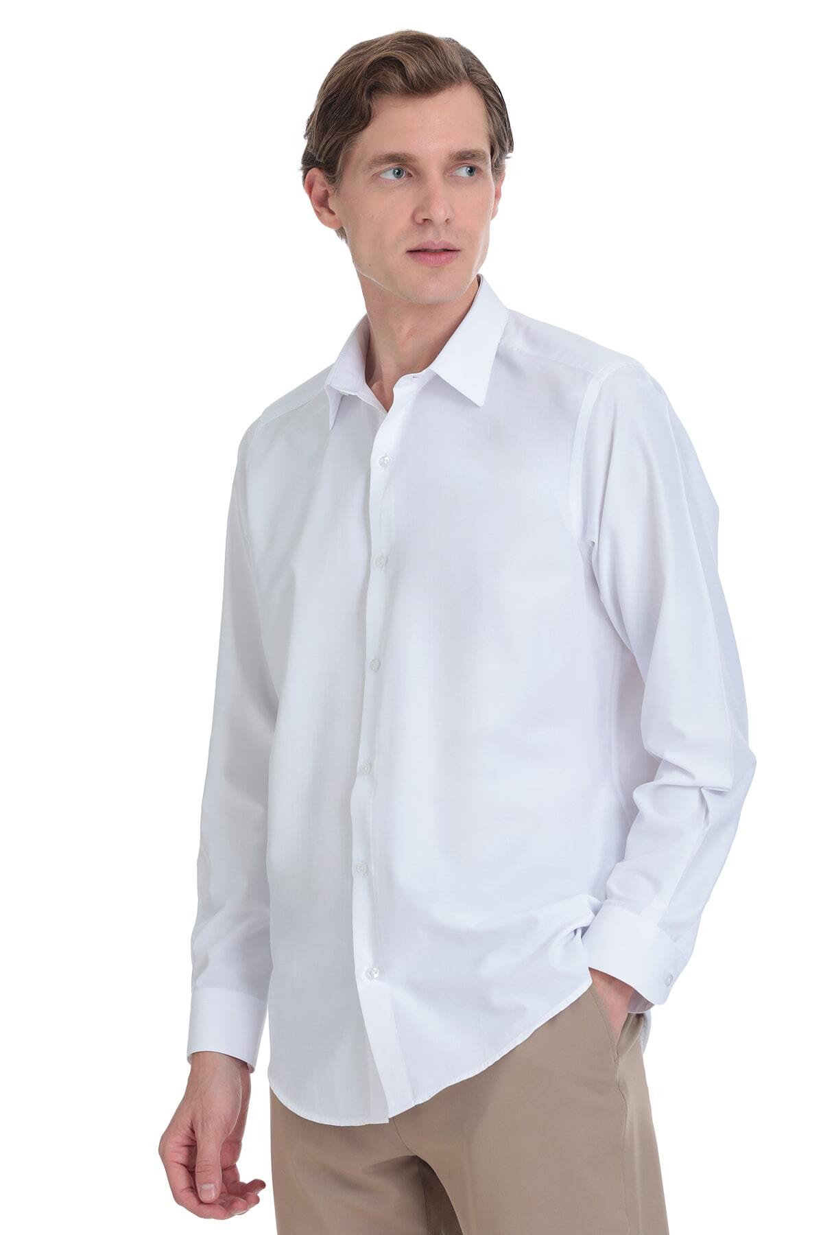 Beyaz Klasik Fit Slim Yaka Pamuklu Uzun Kollu Gömlek - 7