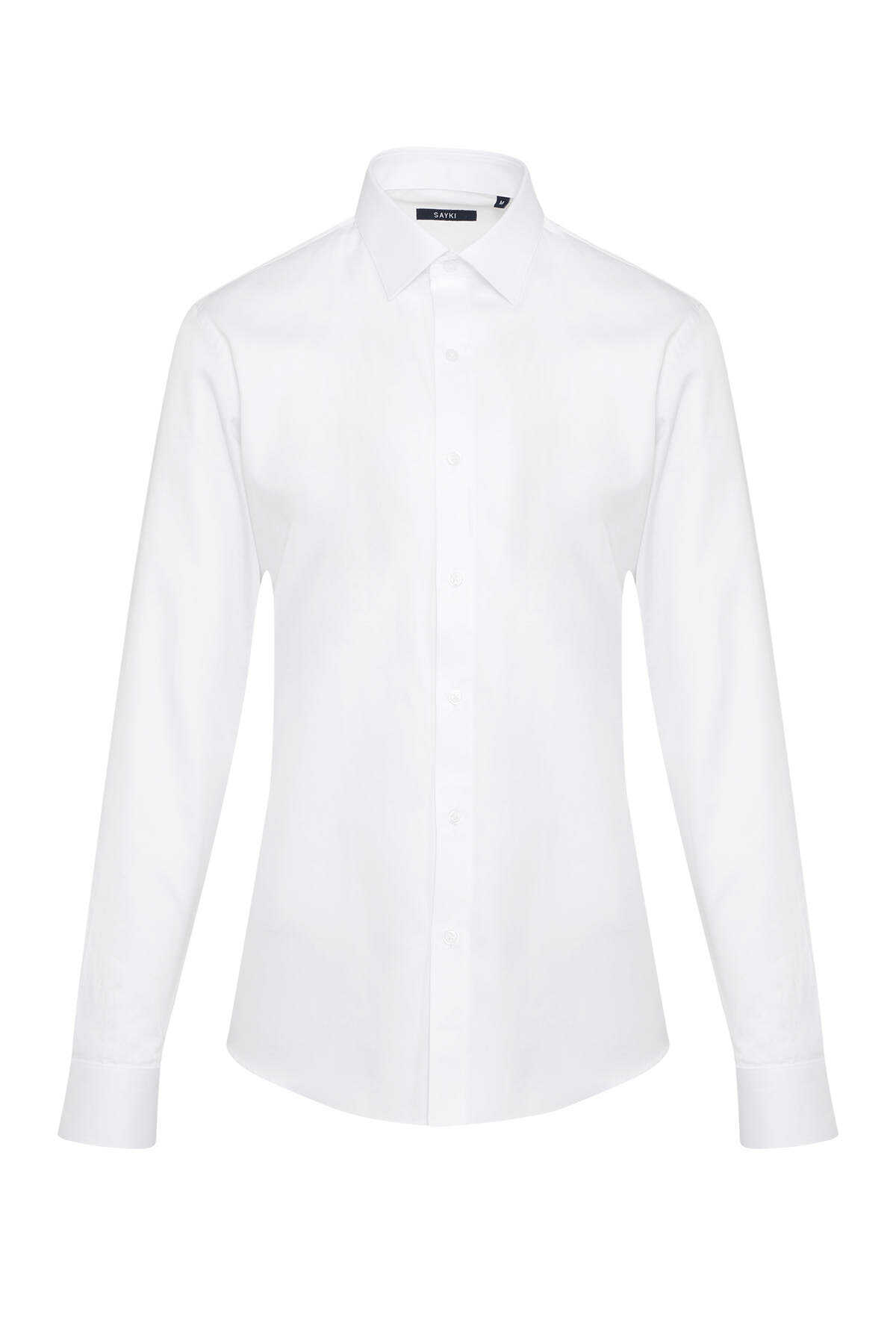 Beyaz Comfort Fit 100% Pamuk Slim Yaka Uzun Kollu Klasik Saten Gömlek
