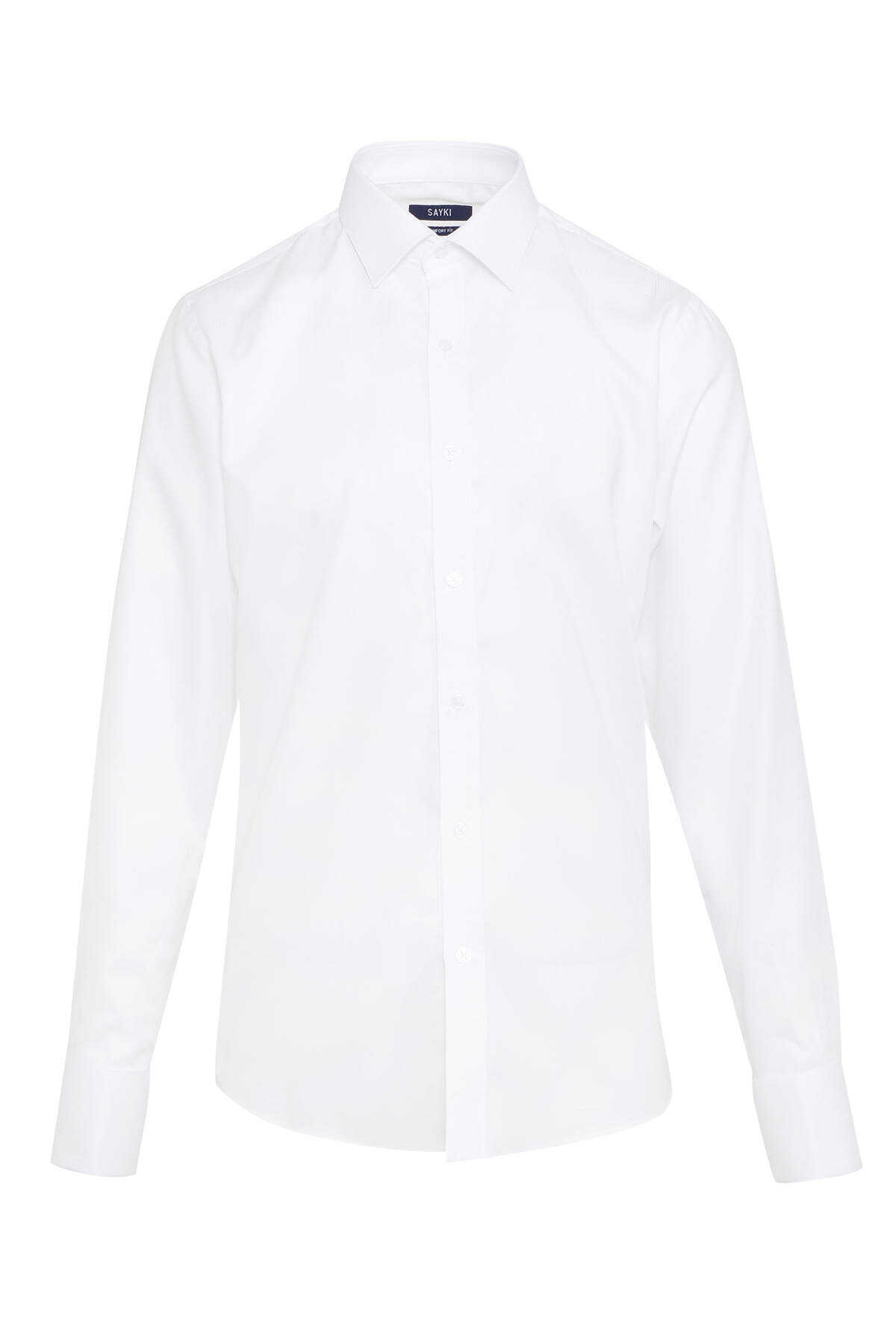 Beyaz Comfort Fit Desenli 100% Pamuk Slim Yaka Manşetli Uzun Kol Klasik Gömlek