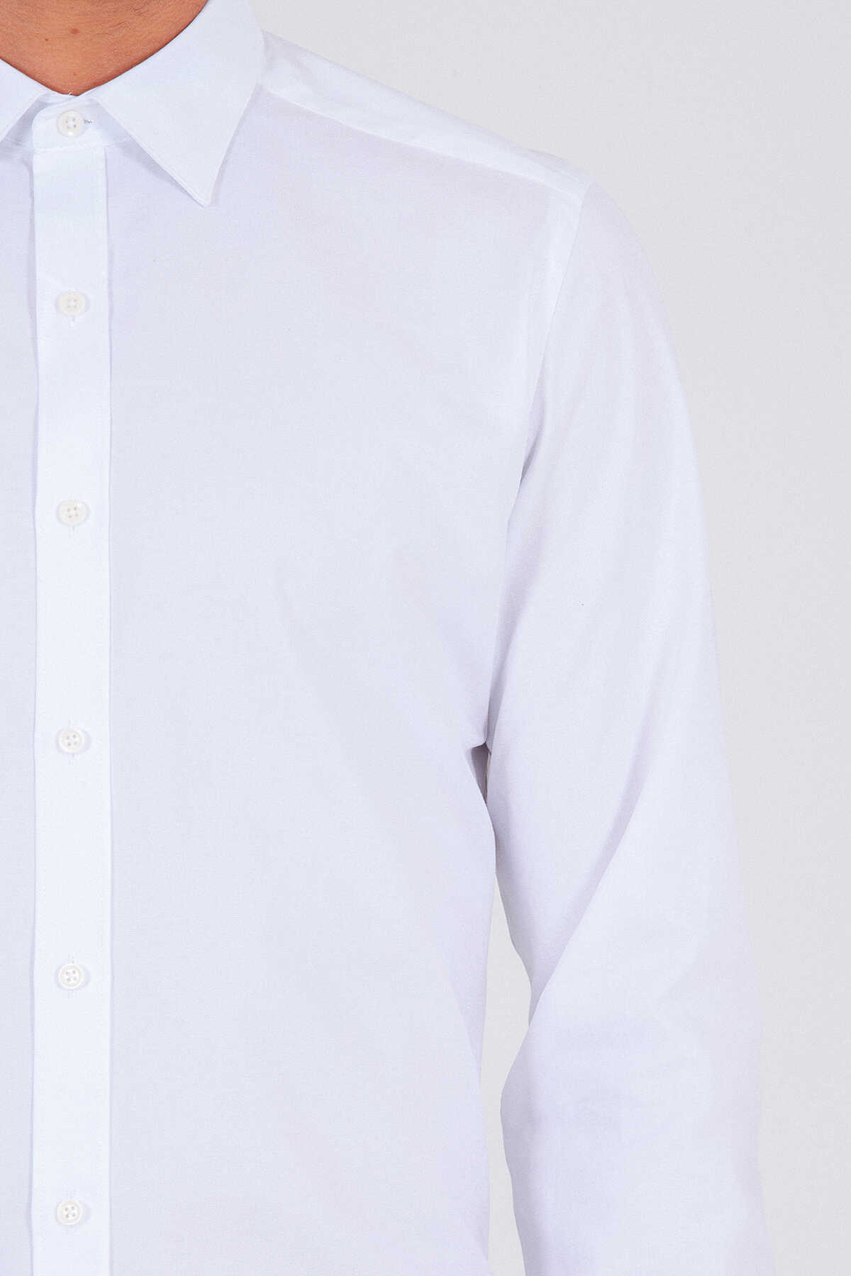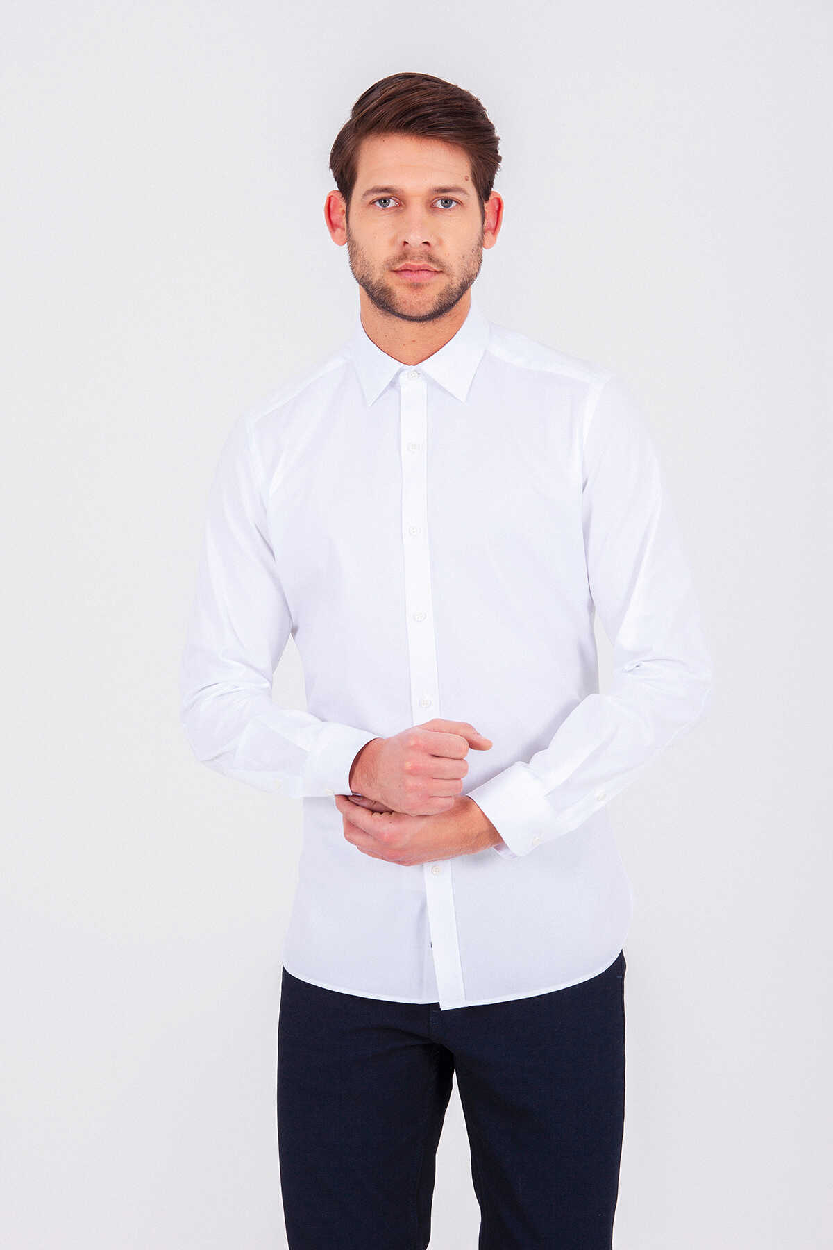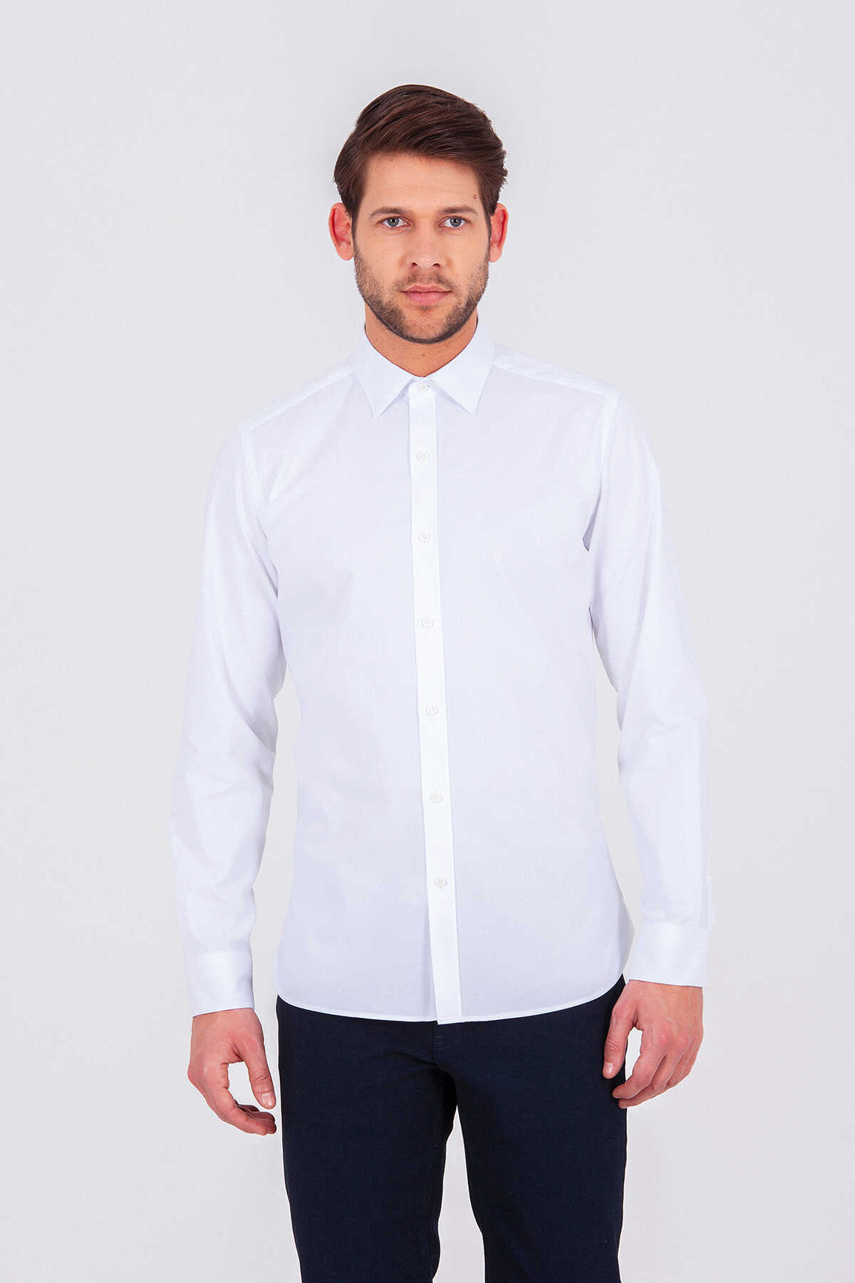 Beyaz Slim Fit 100% Pamuk Uzun Kol Spor Gömlek