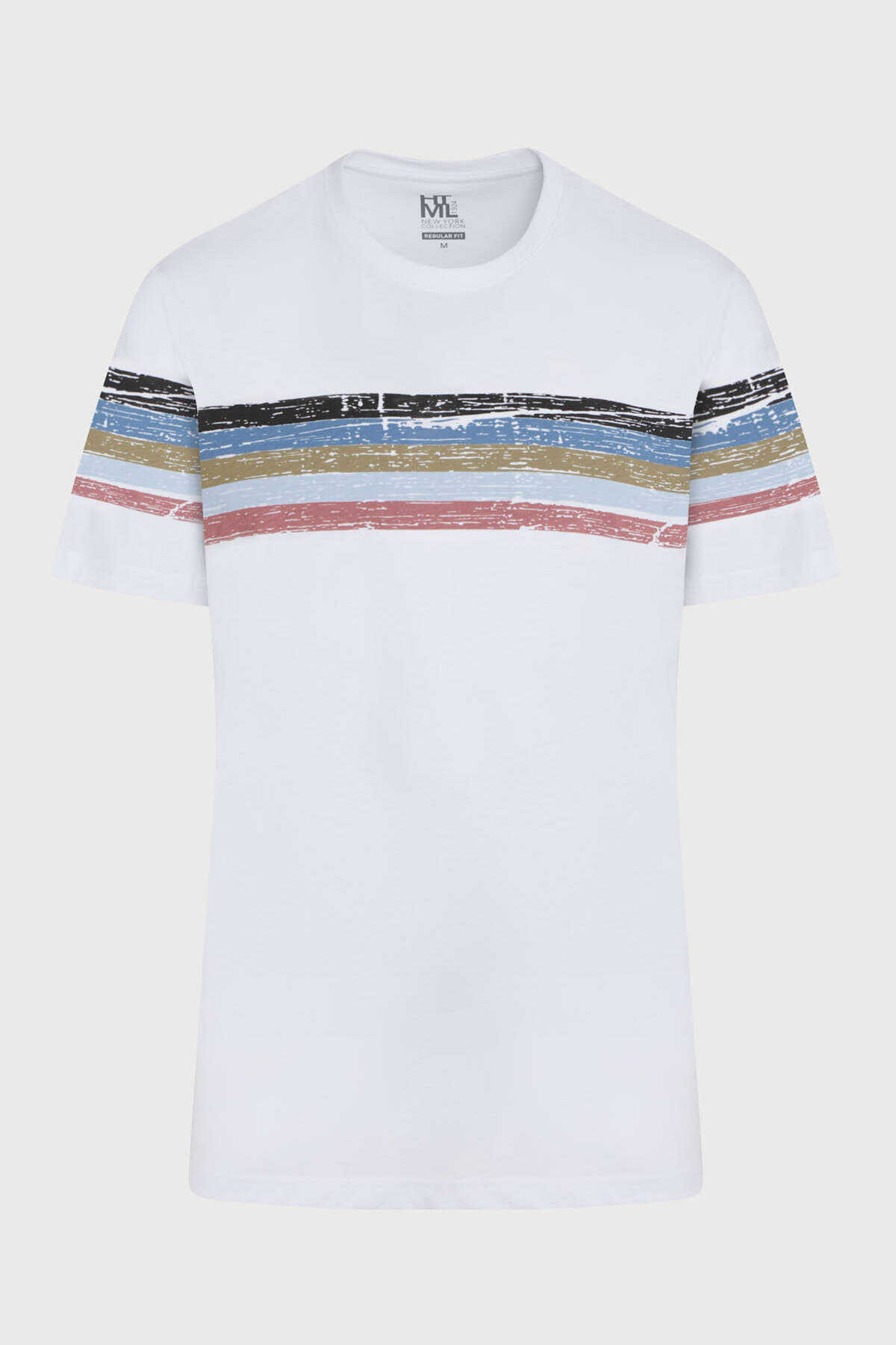 Beyaz Regular Fit Baskılı 100% Pamuk Bisiklet Yaka Tişört