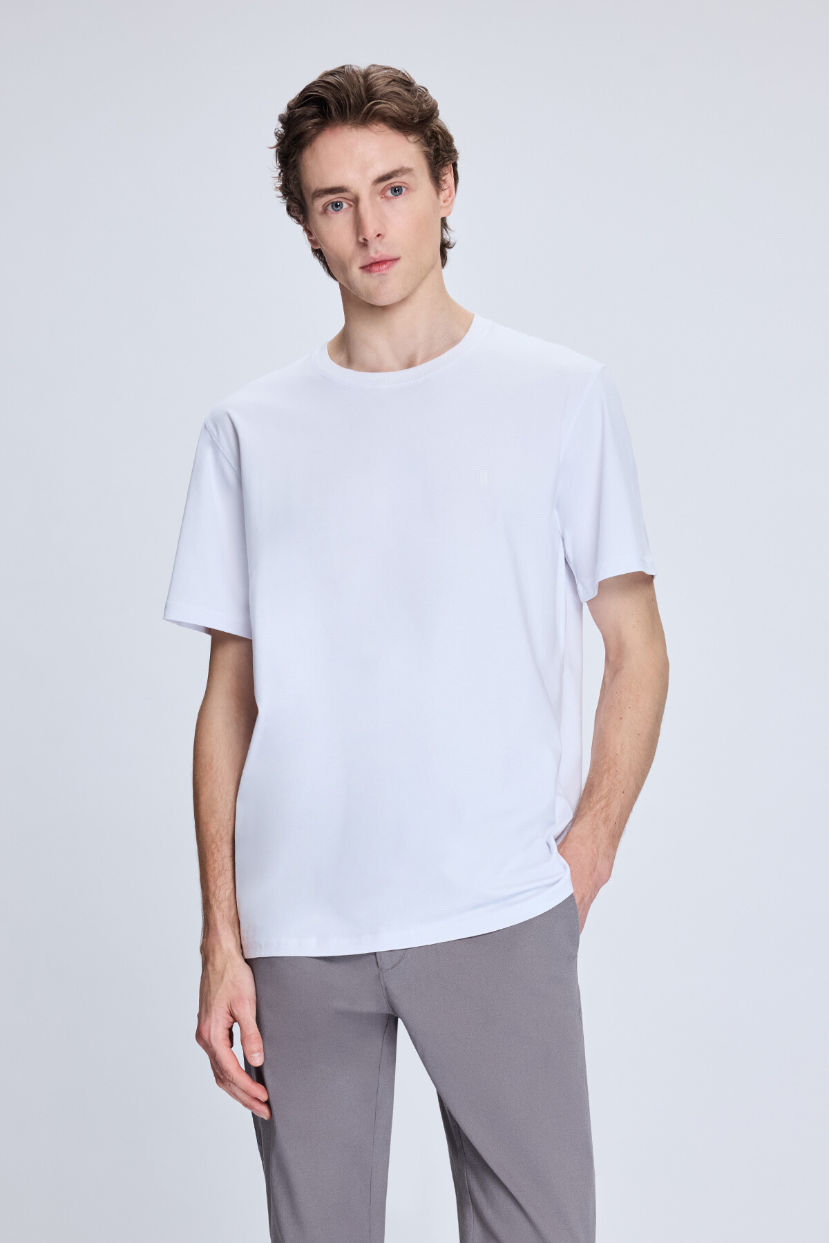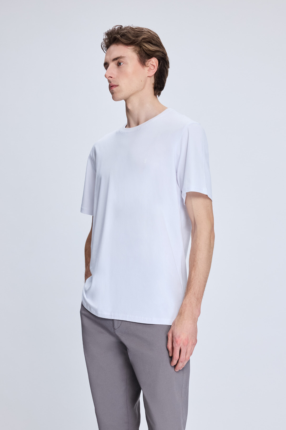 Beyaz Regular Fit Bisiklet Yaka Pamuklu Tişört