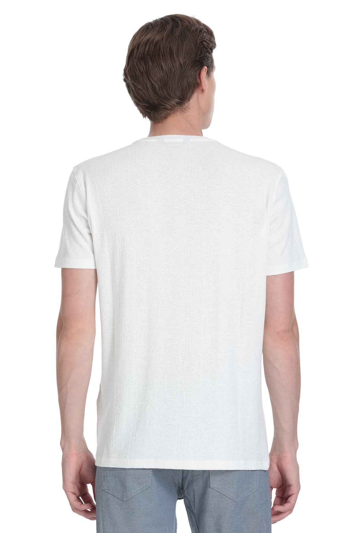 Beyaz Regular Fit Bisiklet Yaka Tişört - 5
