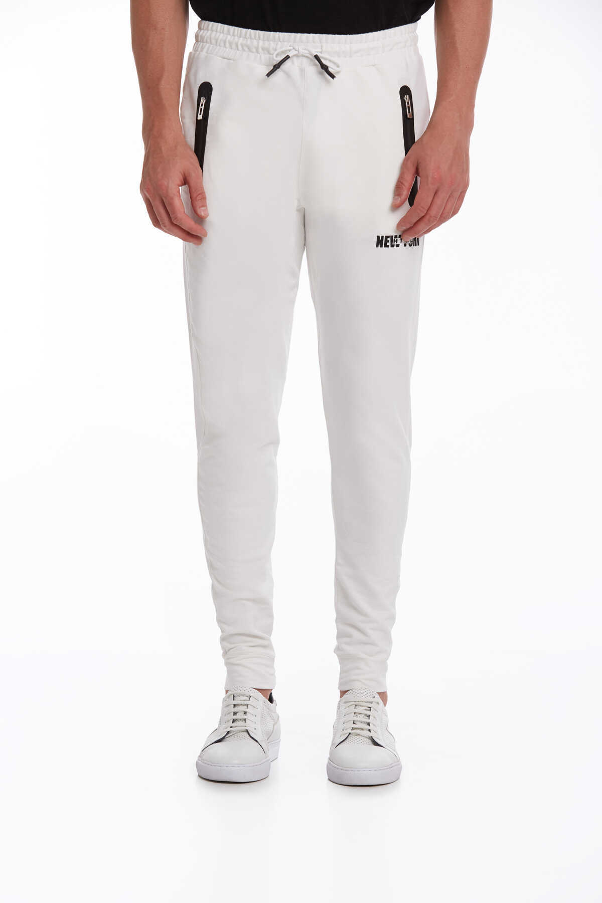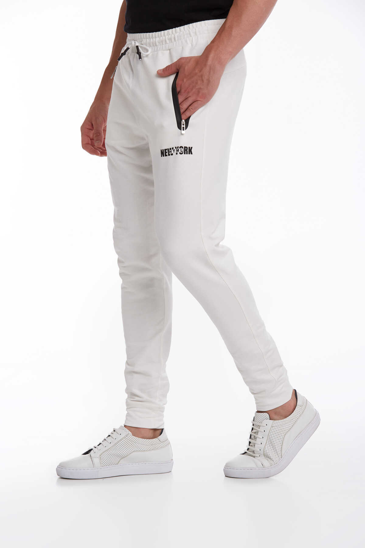 Beyaz Regular Fit Pamuklu Dar Paça Eşofman Altı
