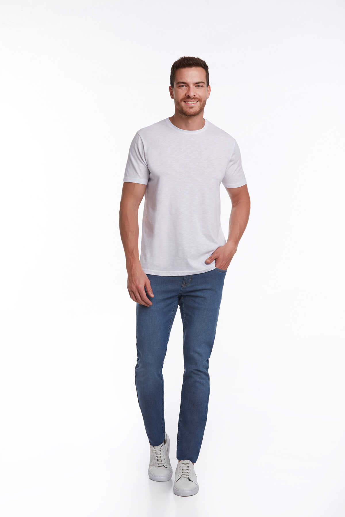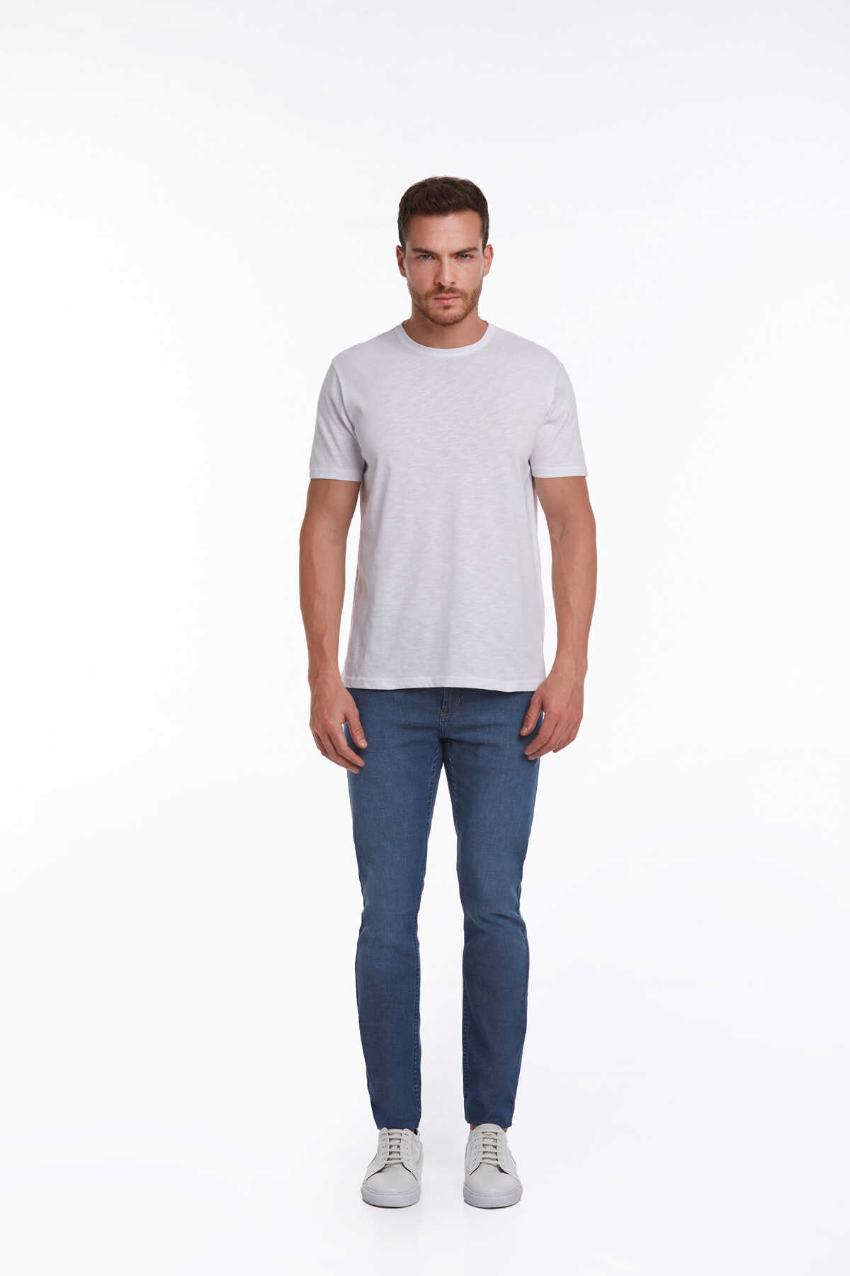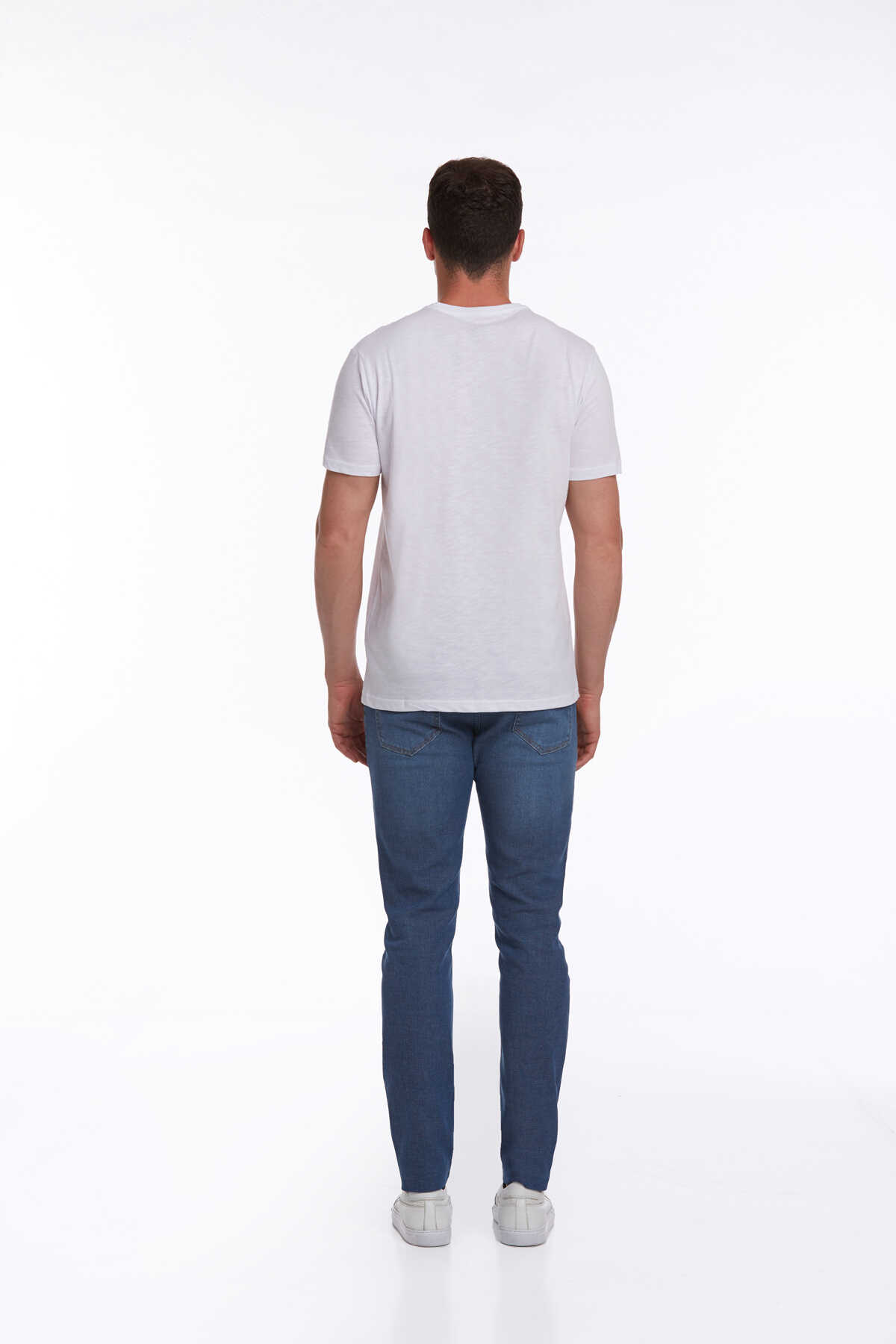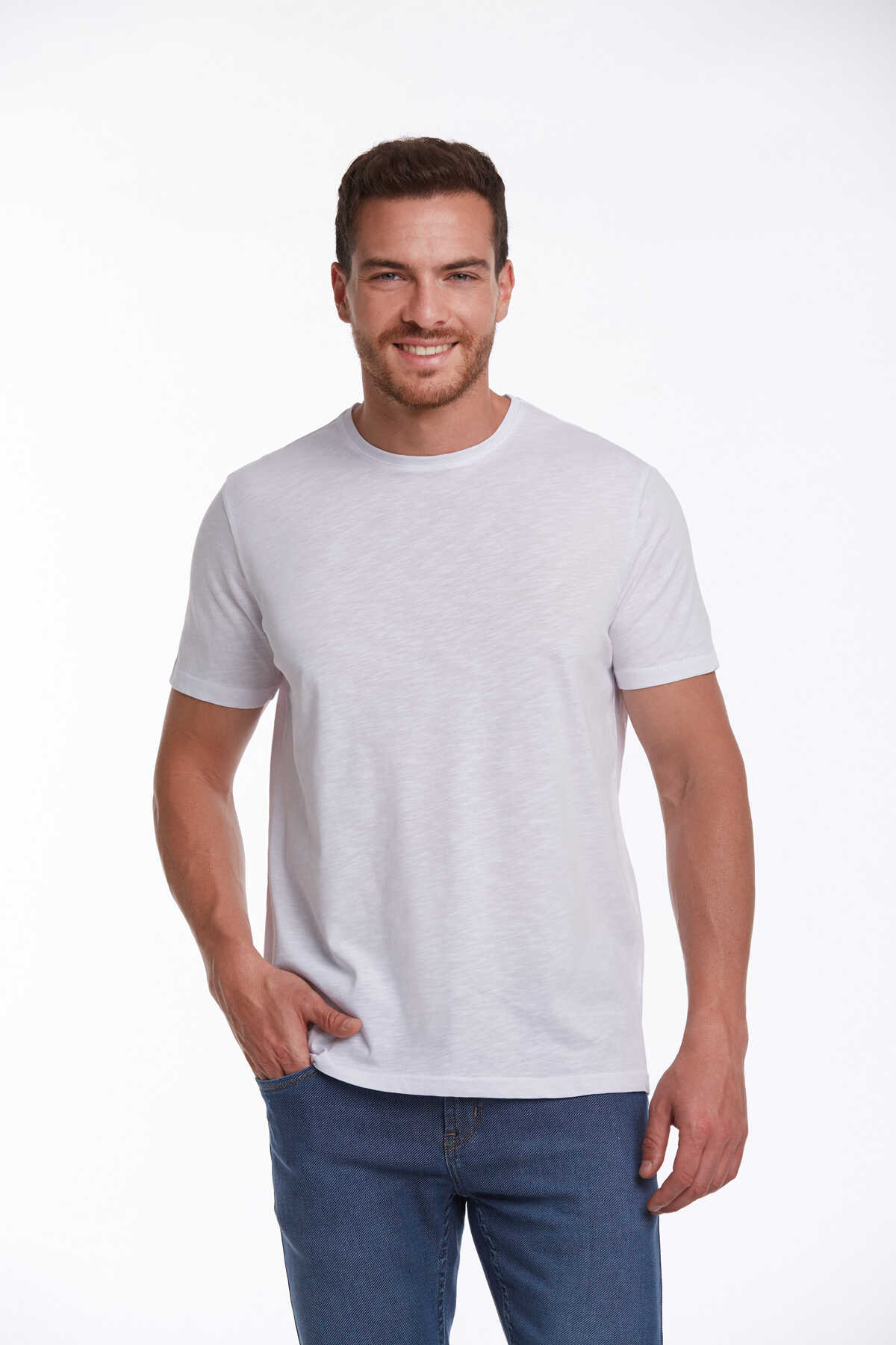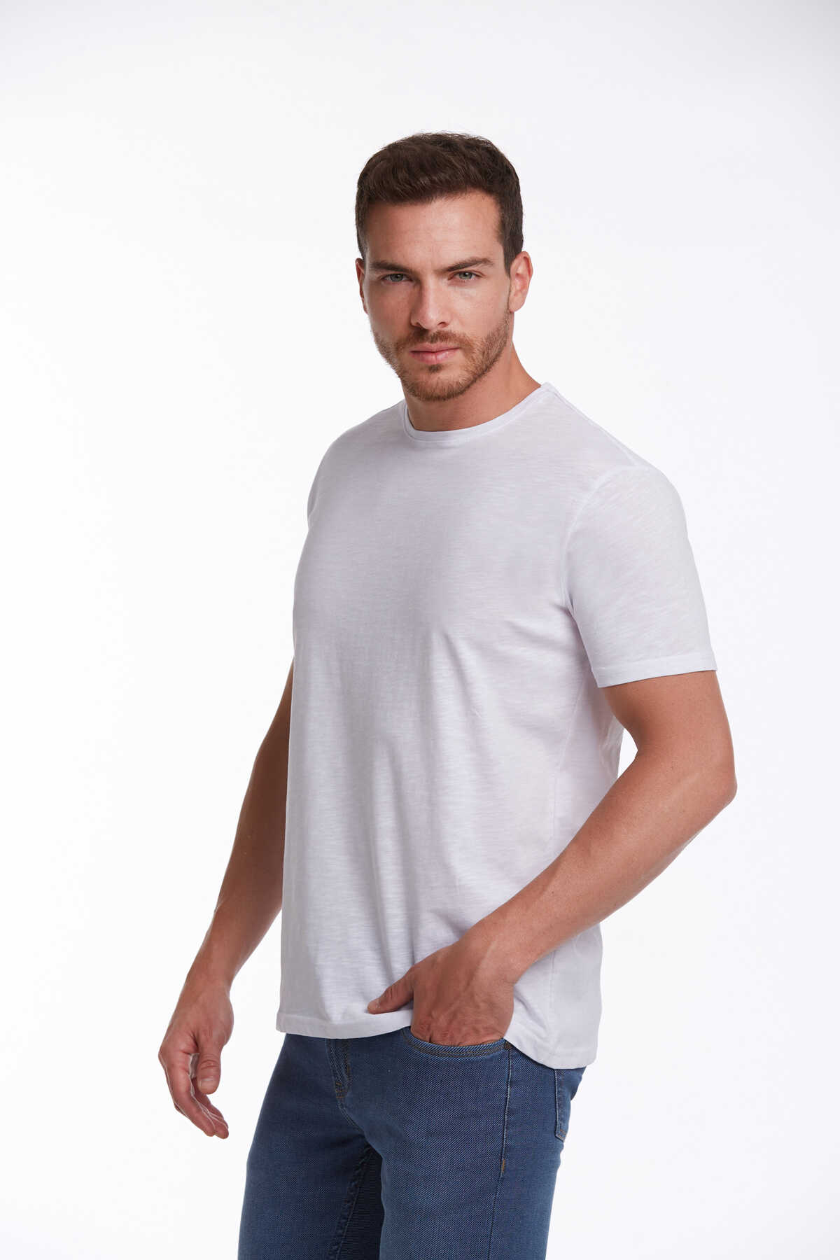 Beyaz Slim Fit 100% Pamuk Bisiklet Yaka Tişört
