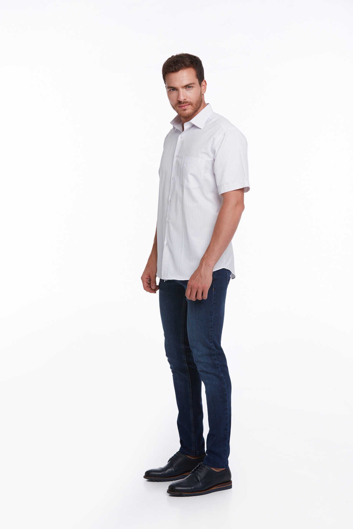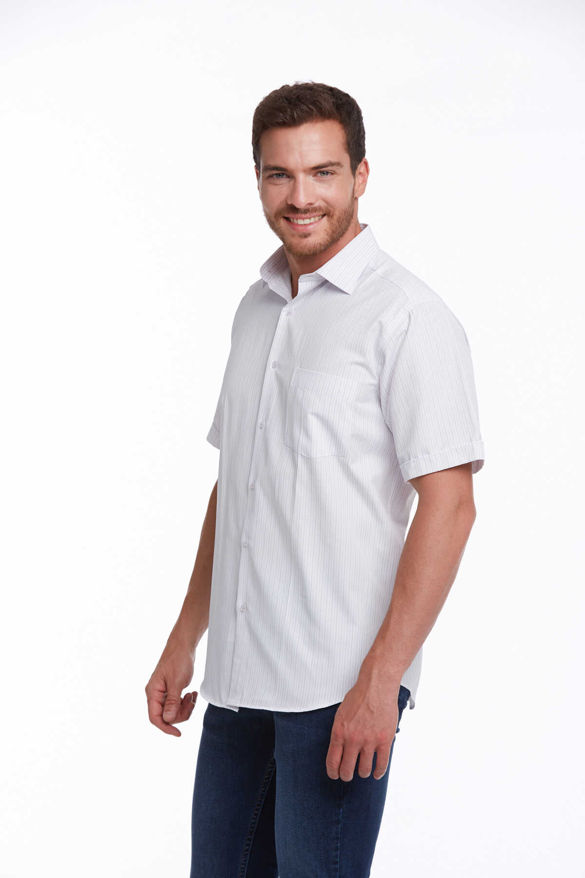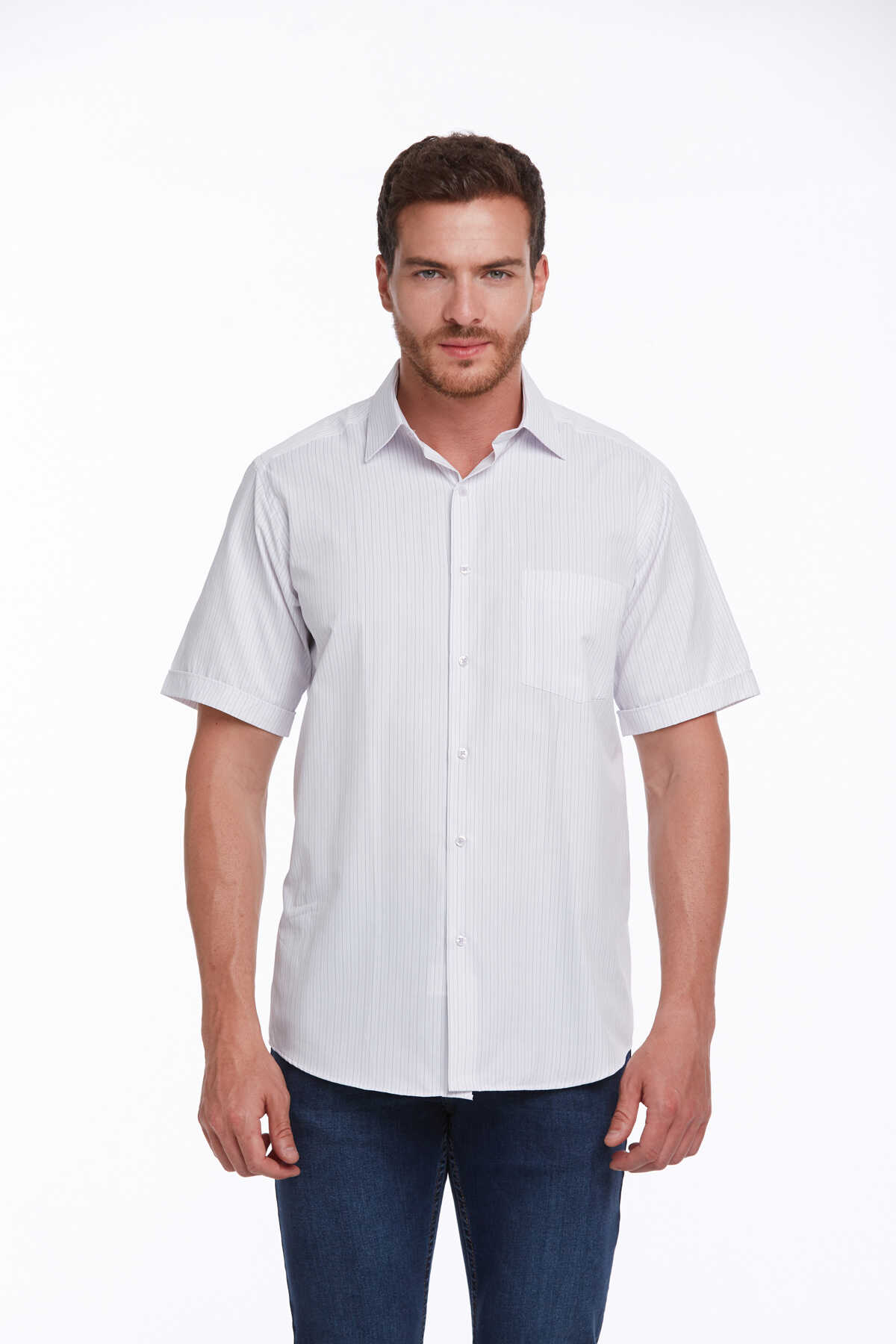 Lila Regular Fit Kareli Pamuklu Slim Yaka Kısa Kol Klasik Gömlek