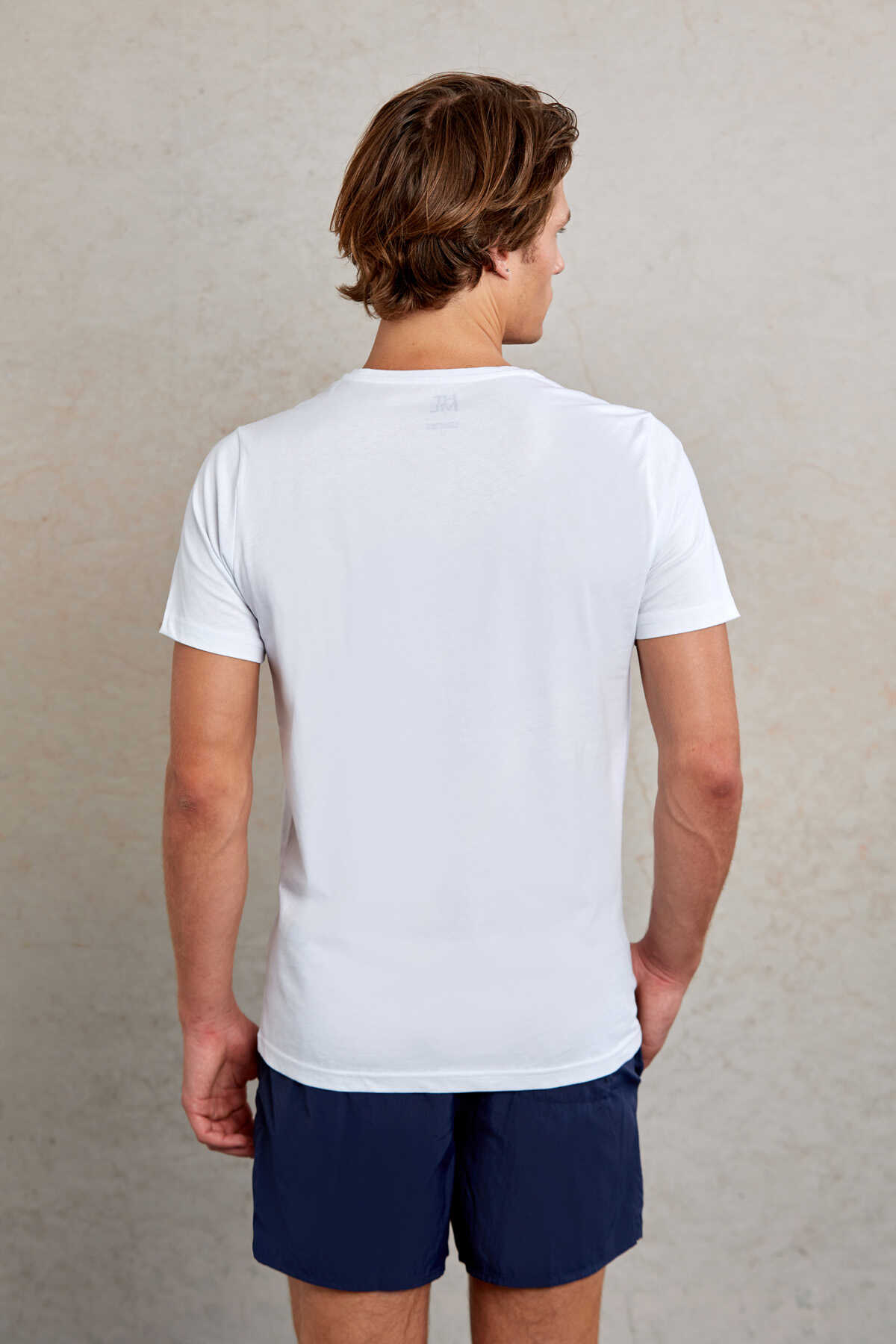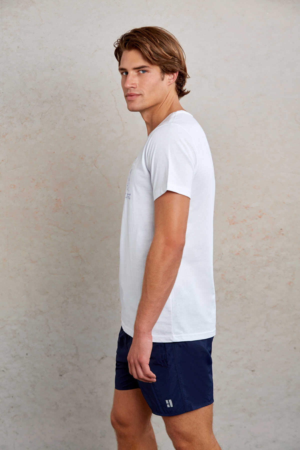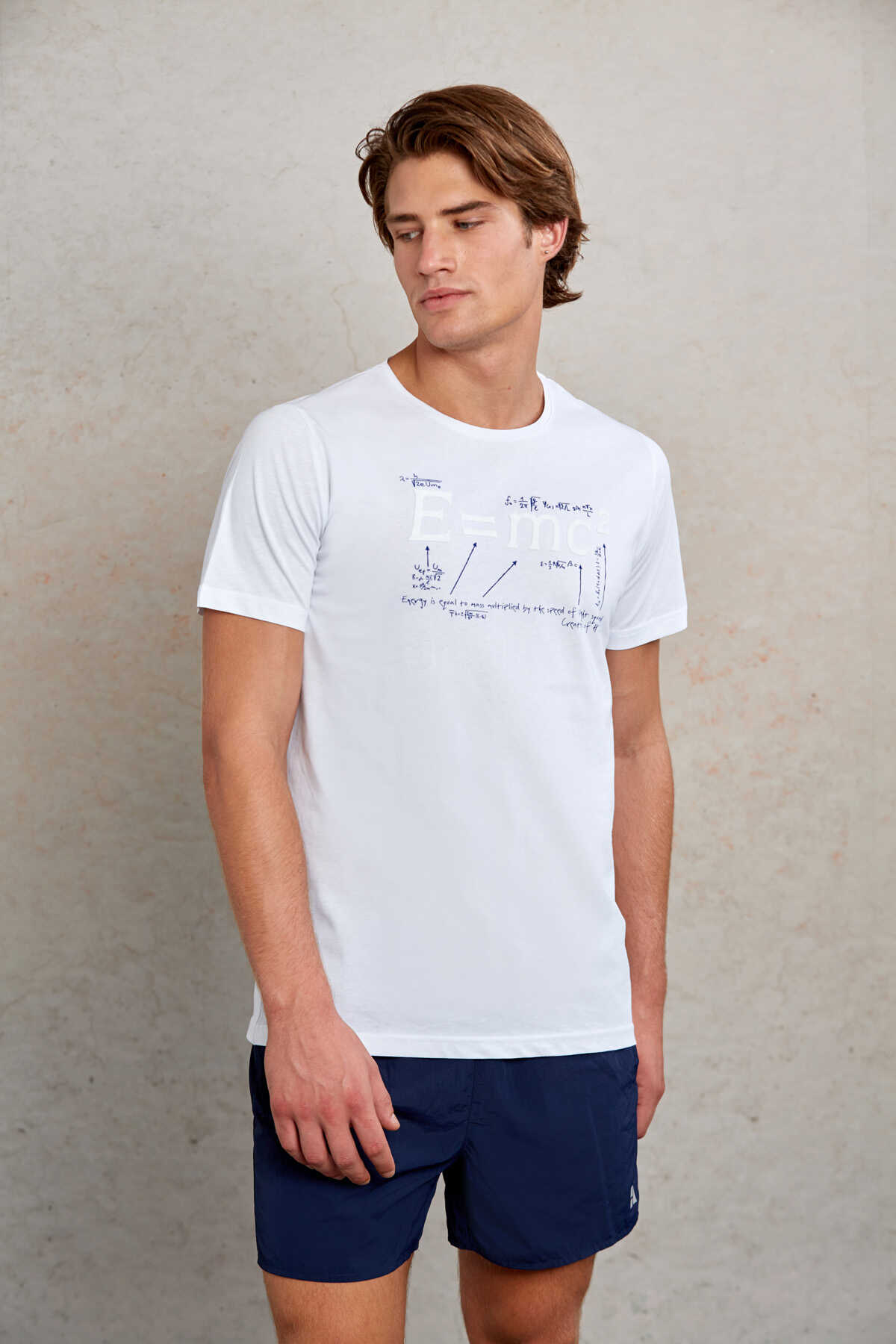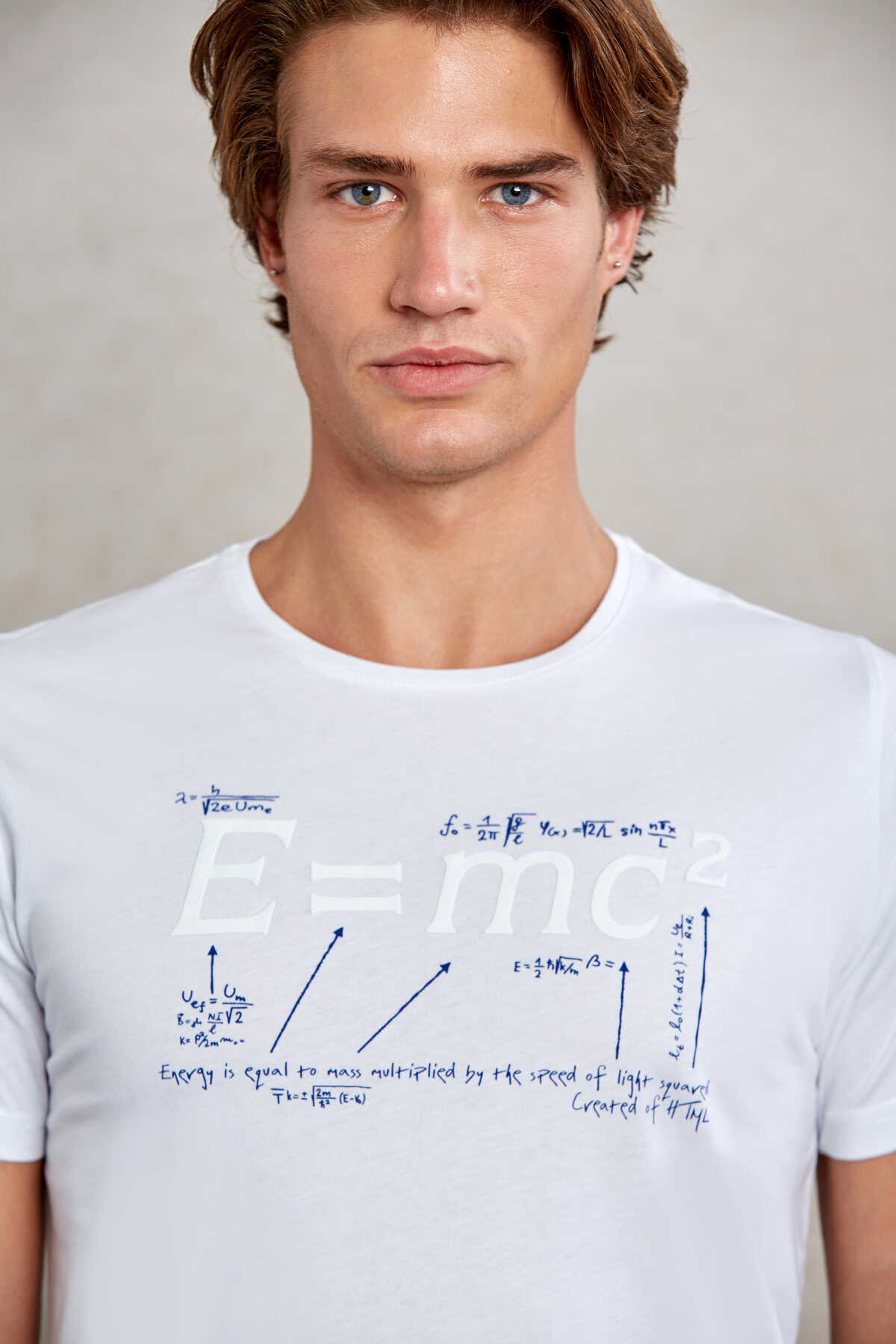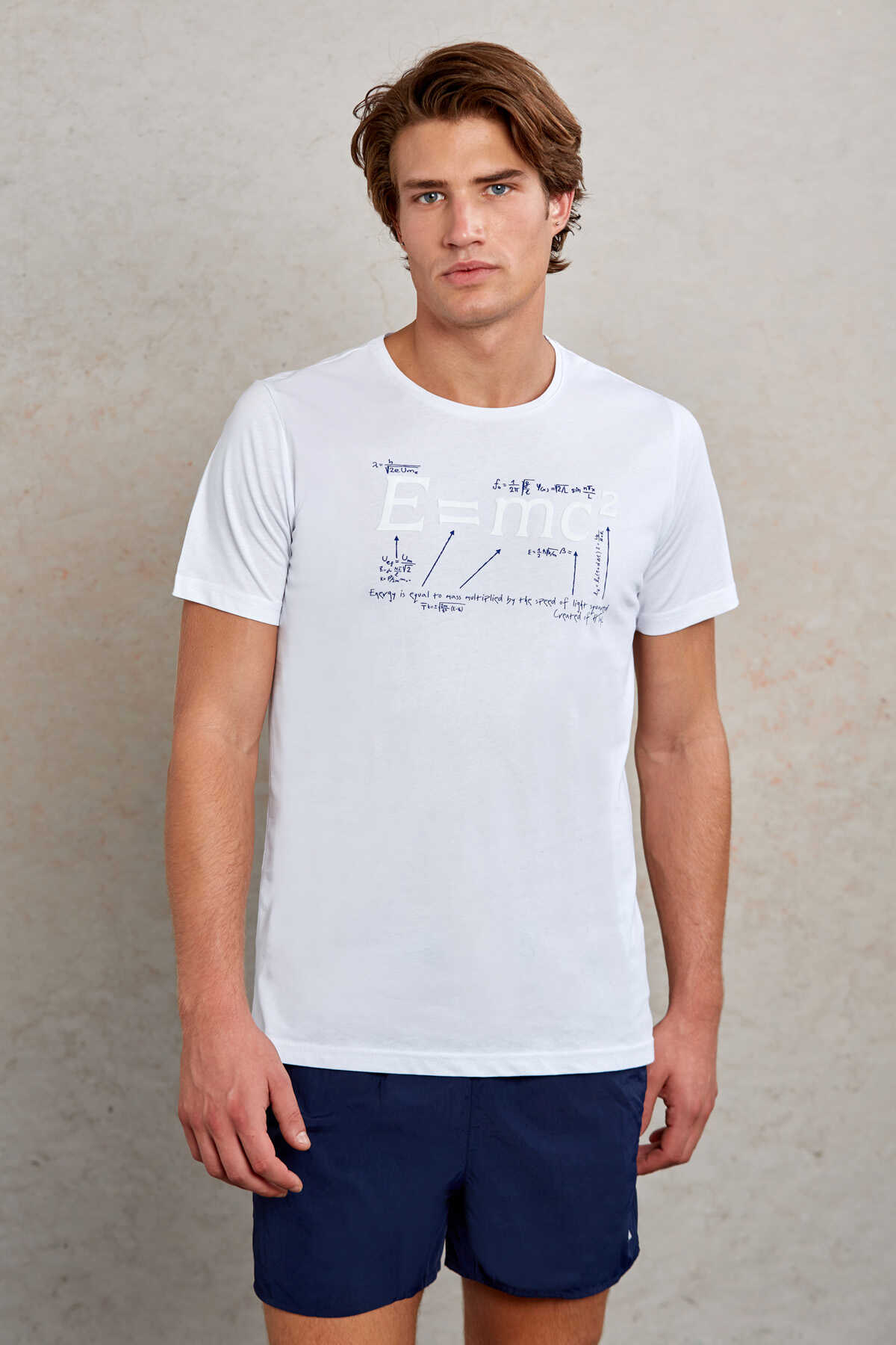 Beyaz Slim Fit Baskılı %100 Pamuk Bisiklet Yaka Tişört