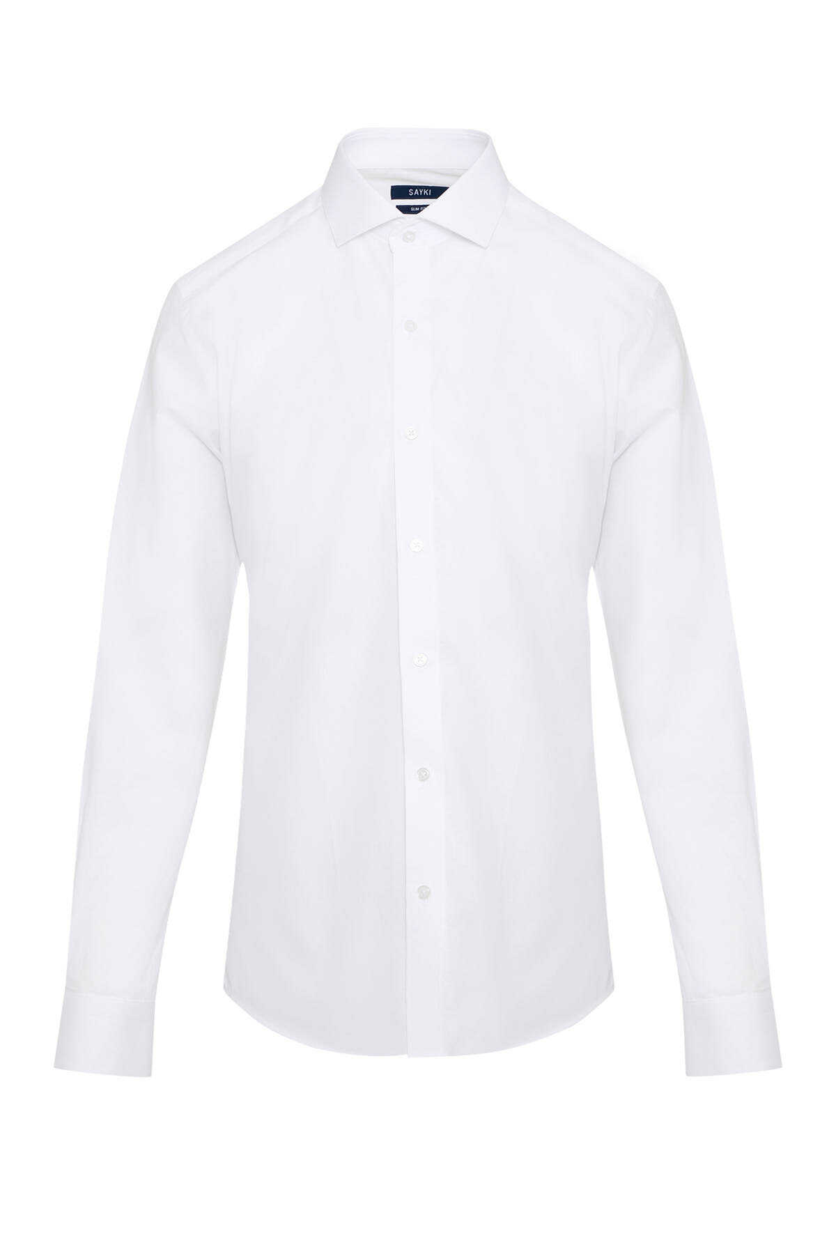 Beyaz Slim Fit Uzun Kol %100 Pamuk Desenli Gömlek