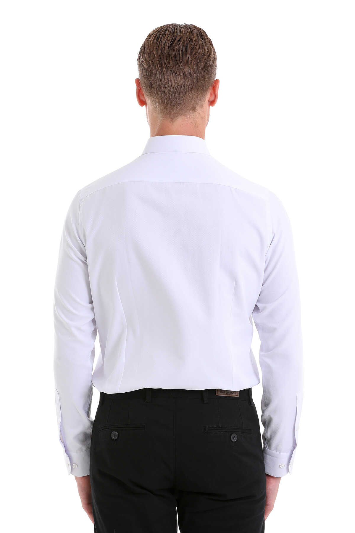 Beyaz Slim Fit Desenli Pamuklu Slim Yaka Uzun Kollu Spor Gömlek - 6