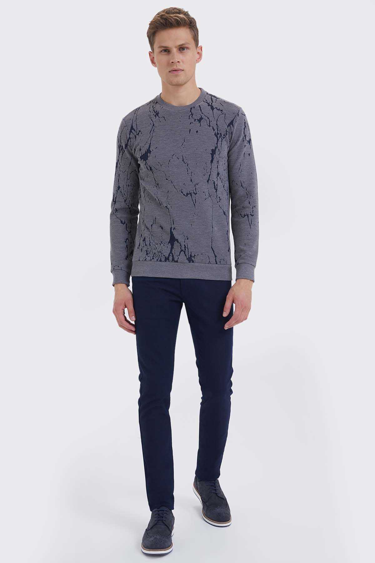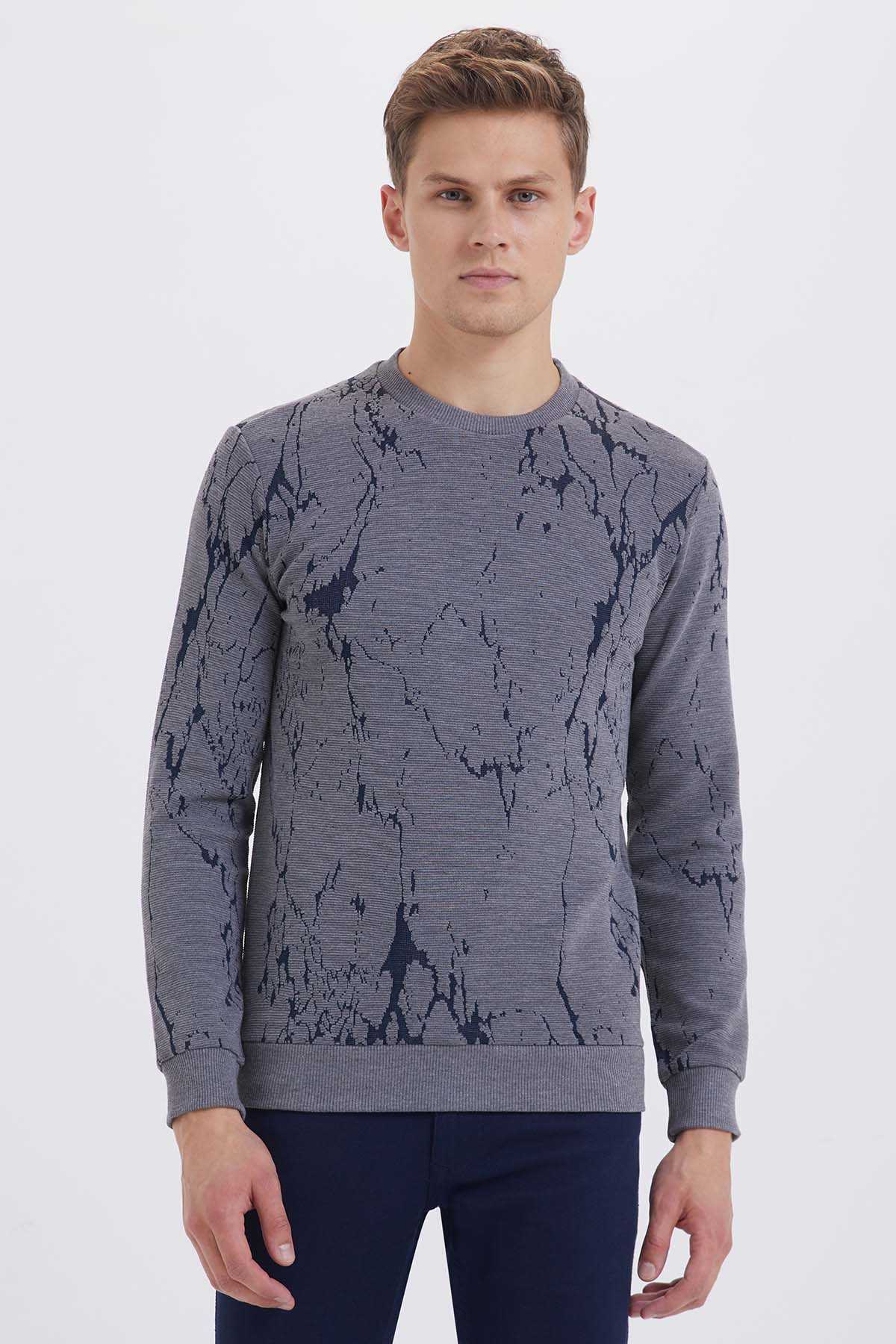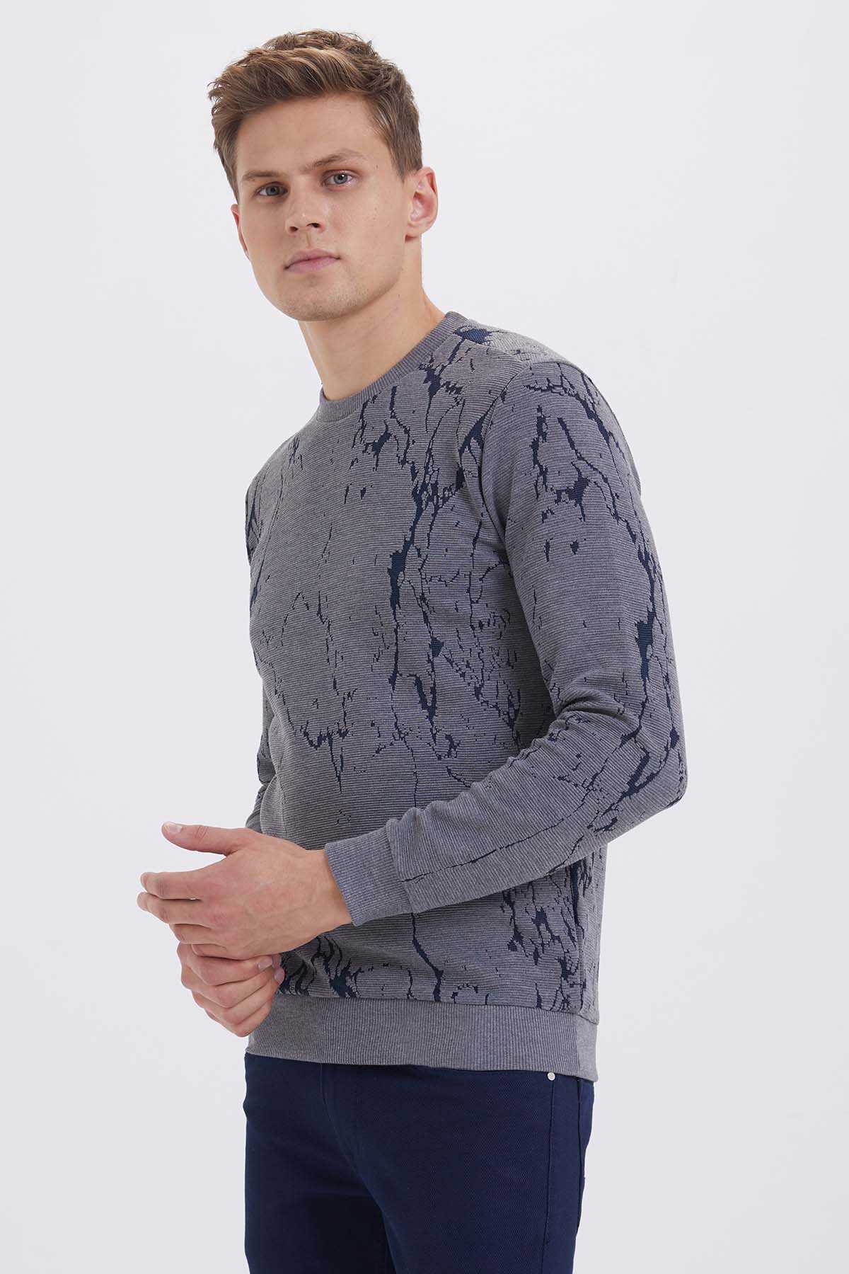 Bisiklet Yaka Gri Sweatshirt