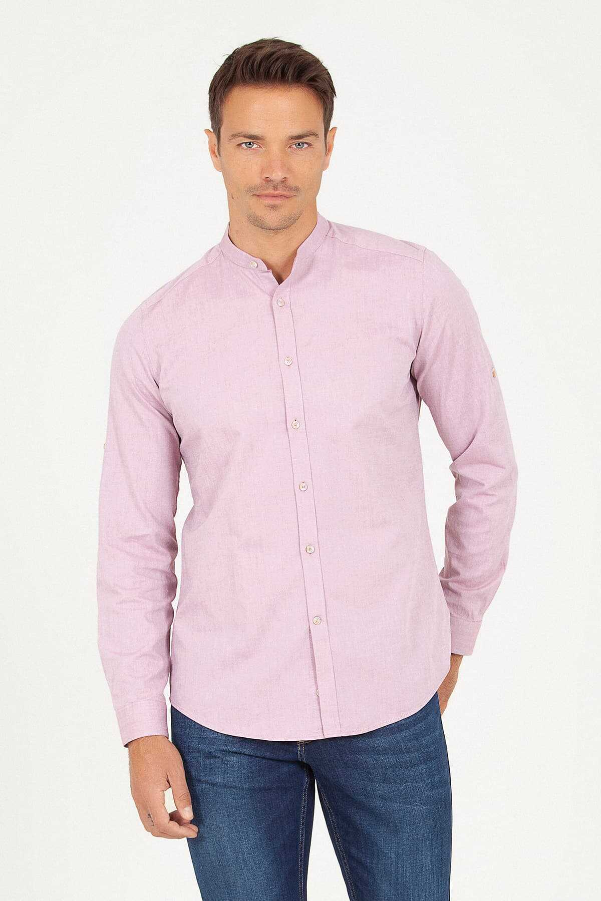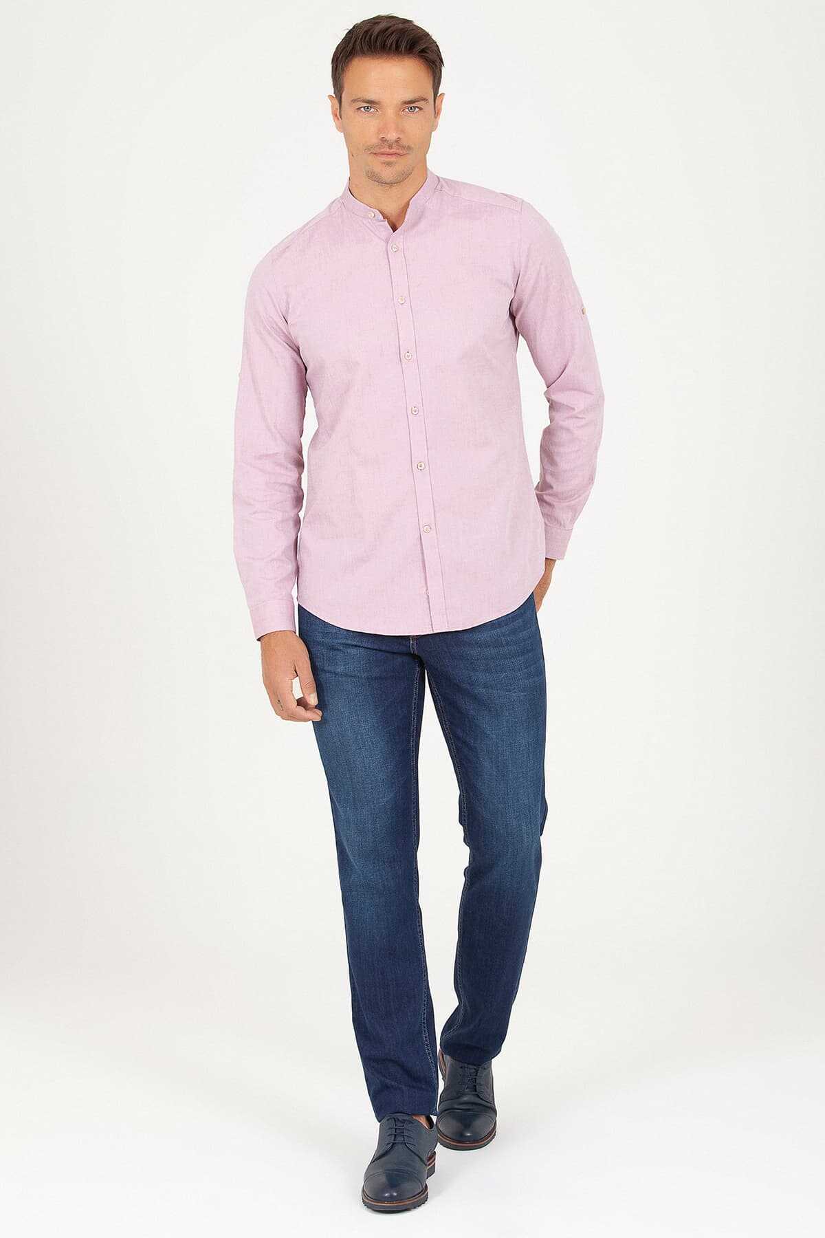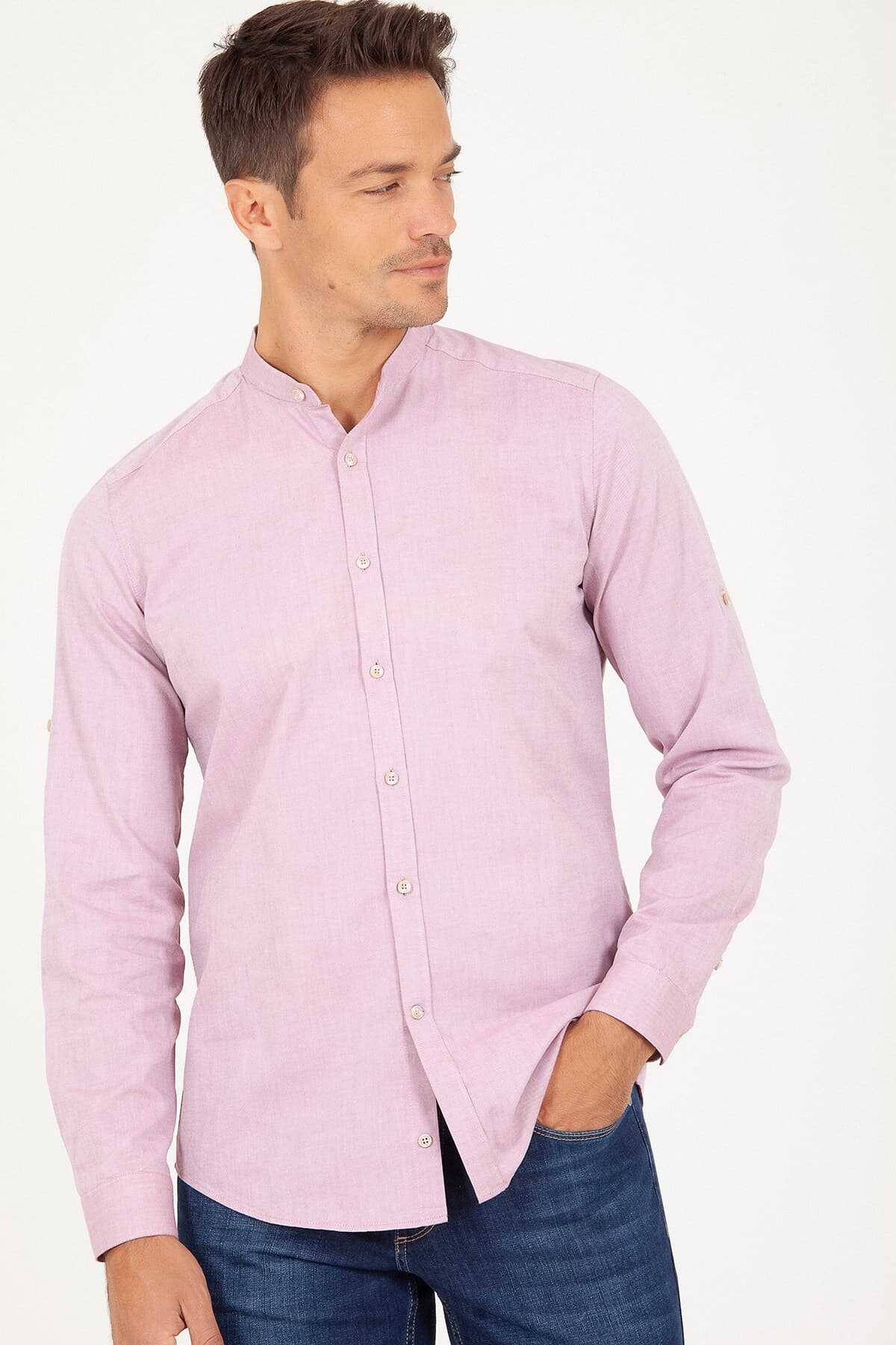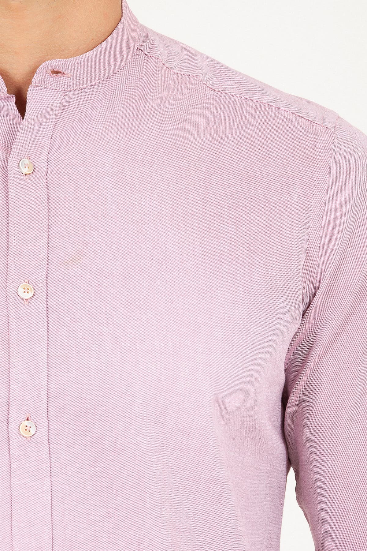 Bordo Slim Fit 100% Pamuk Uzun Kol Spor Gömlek