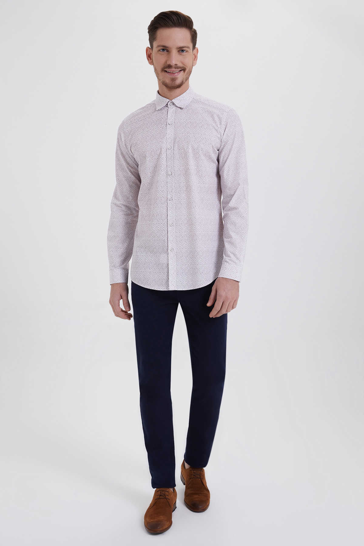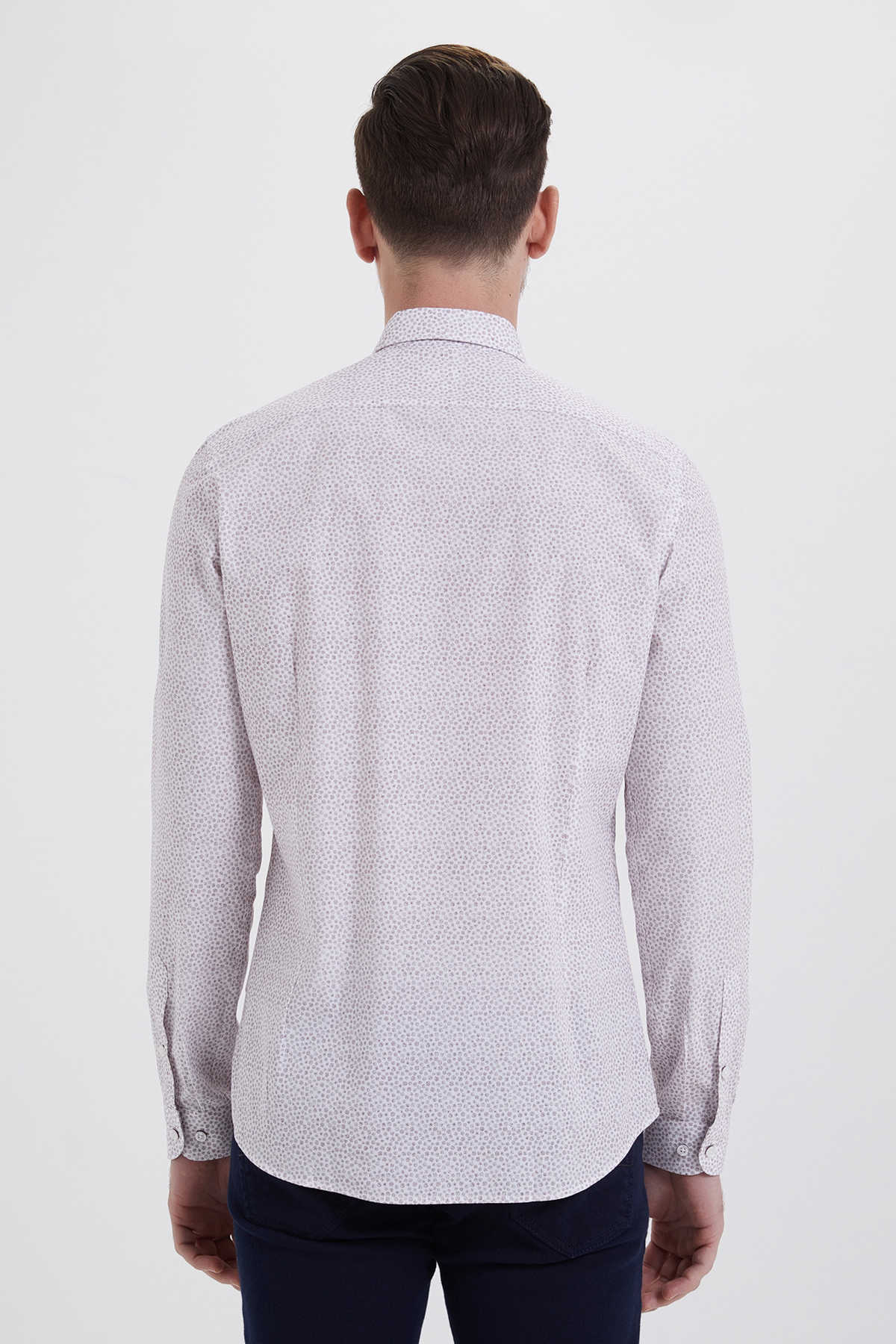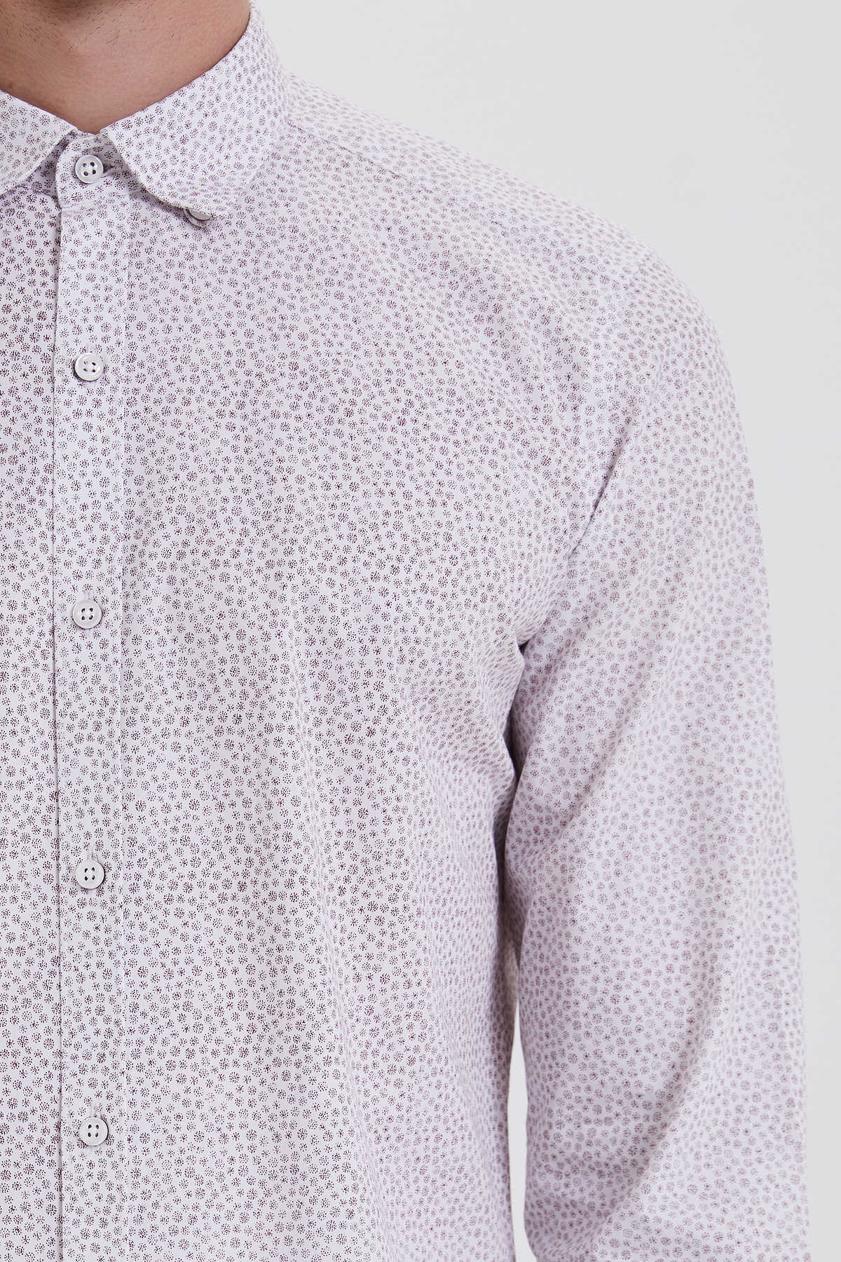 Bordo Slim Fit Baskılı 100% Pamuk Uzun Kol Spor Gömlek