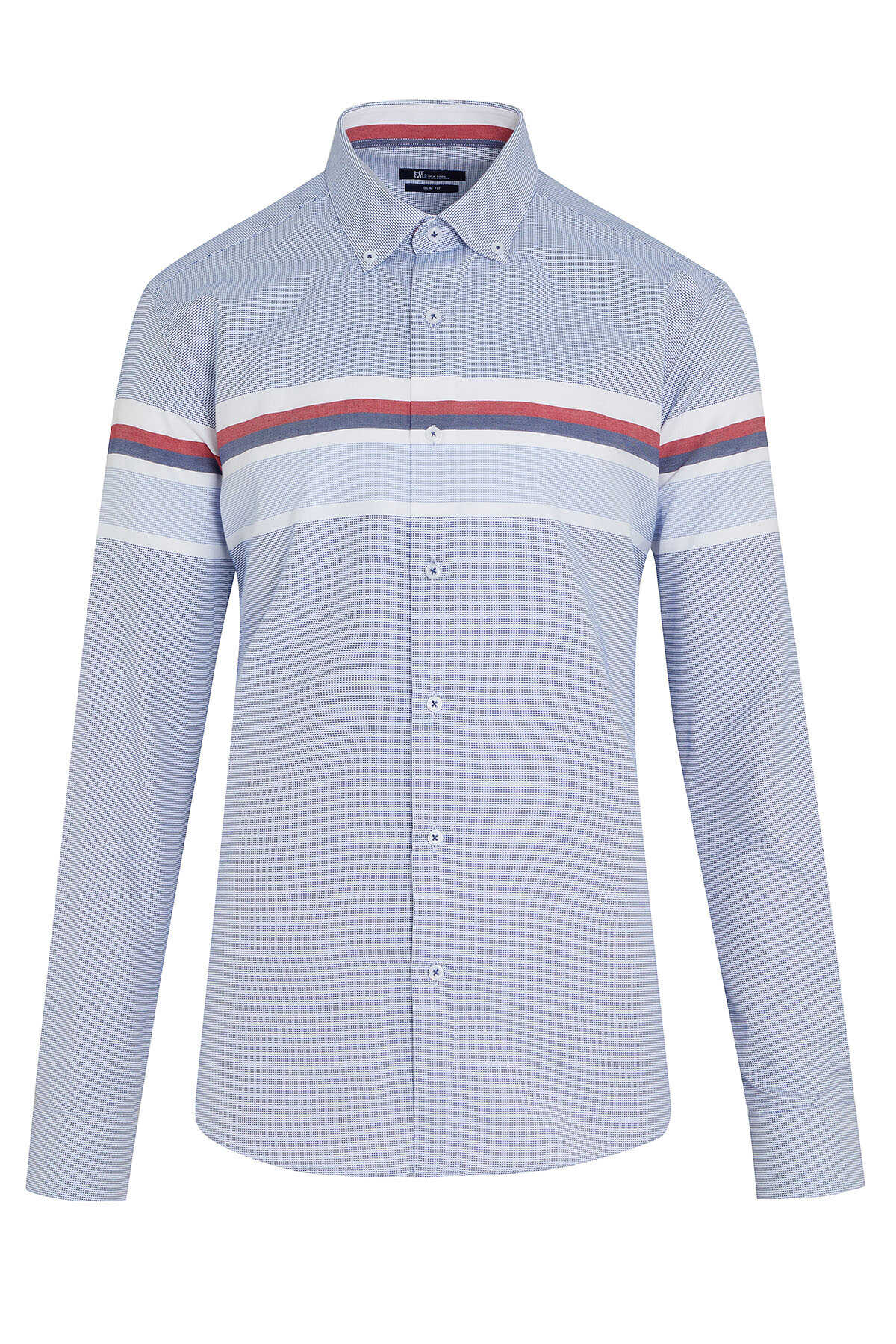Bordo Dinamik Fit Uzun Kol Pamuklu Çizgili Gömlek