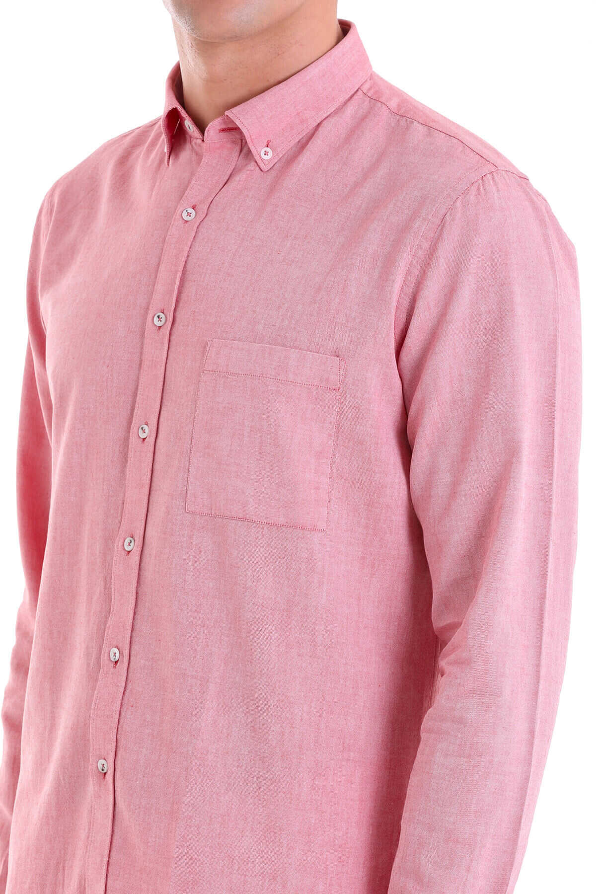 Bordo Comfort Fit 100% Pamuk Düğmeli Yaka Uzun Kollu Casual Oxford Gömlek - 6