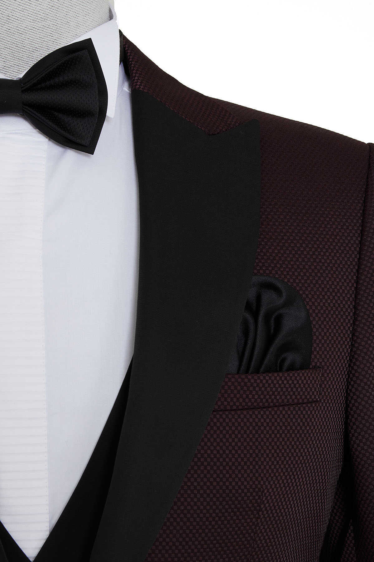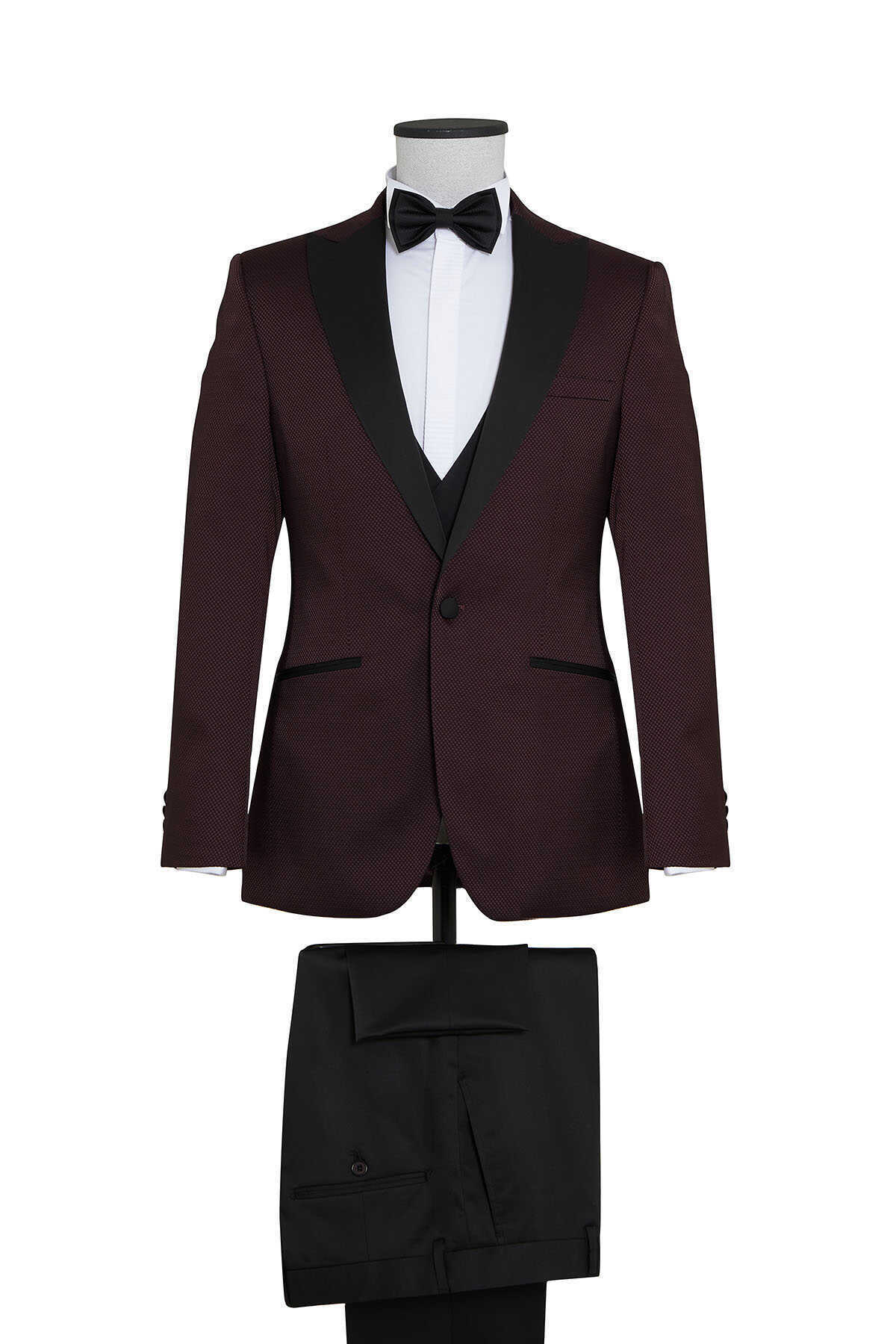 Bordo Cerimonia Slim Fit Yelekli Takım Elbise