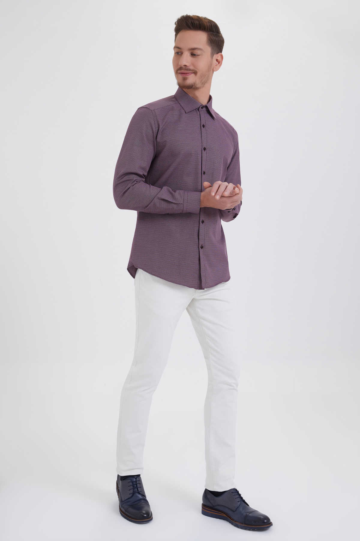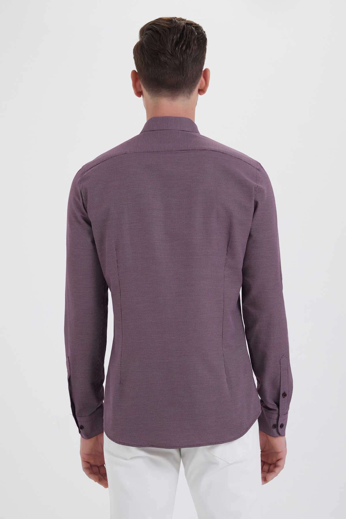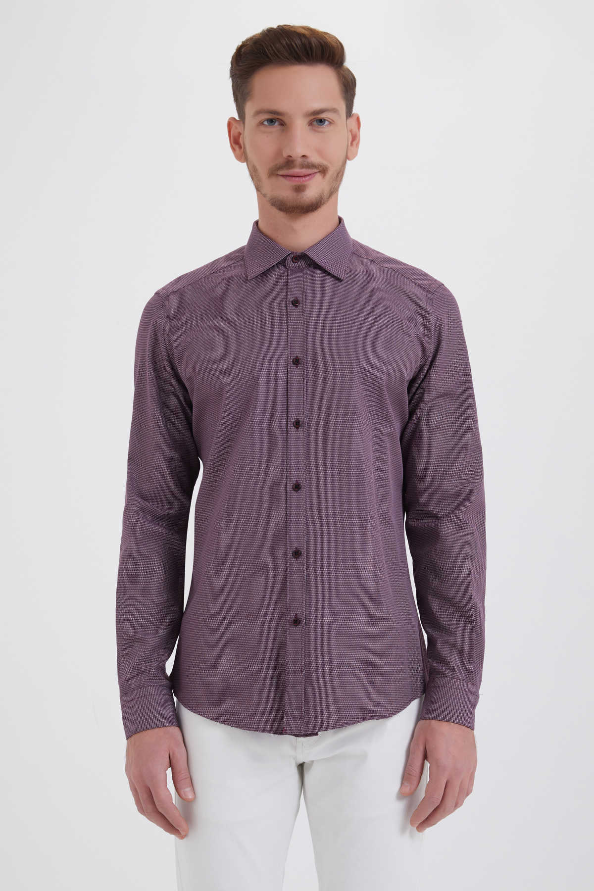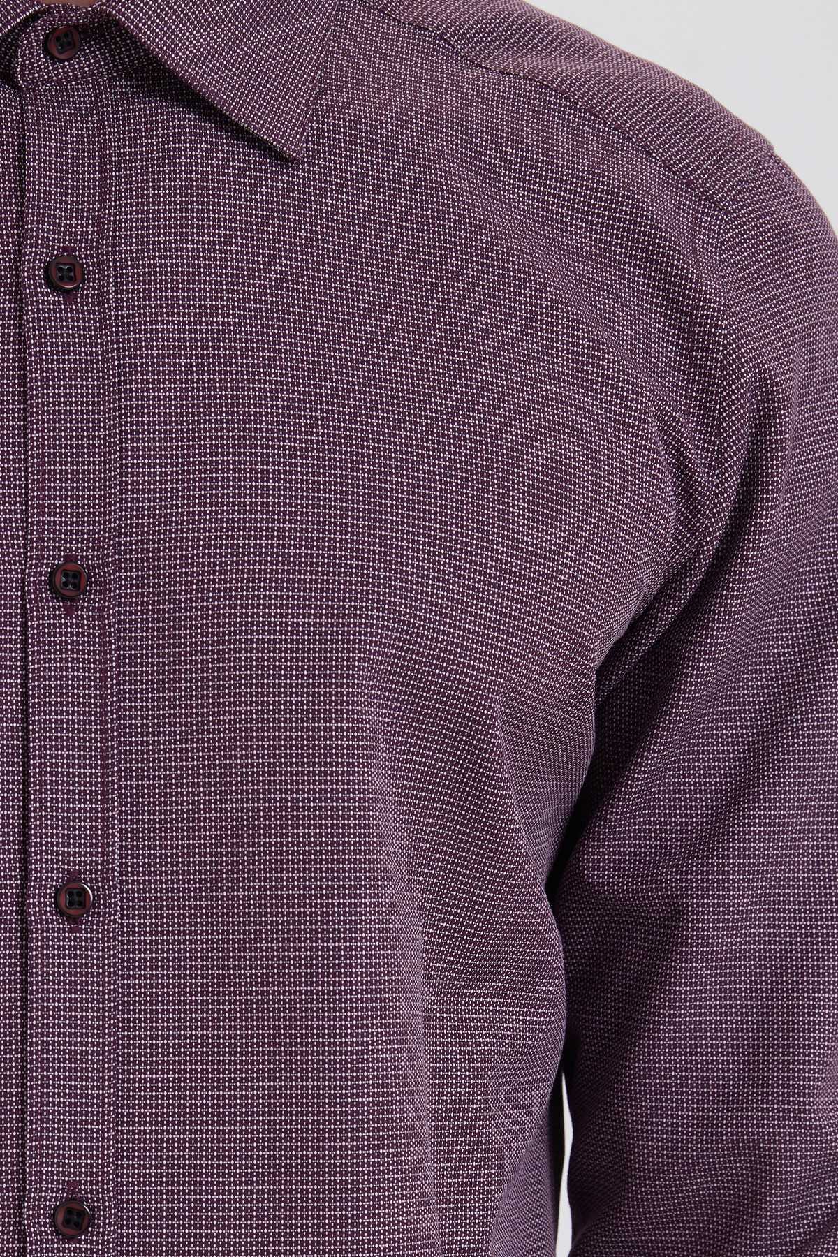 Bordo Desenli Slim Fit Gömlek
