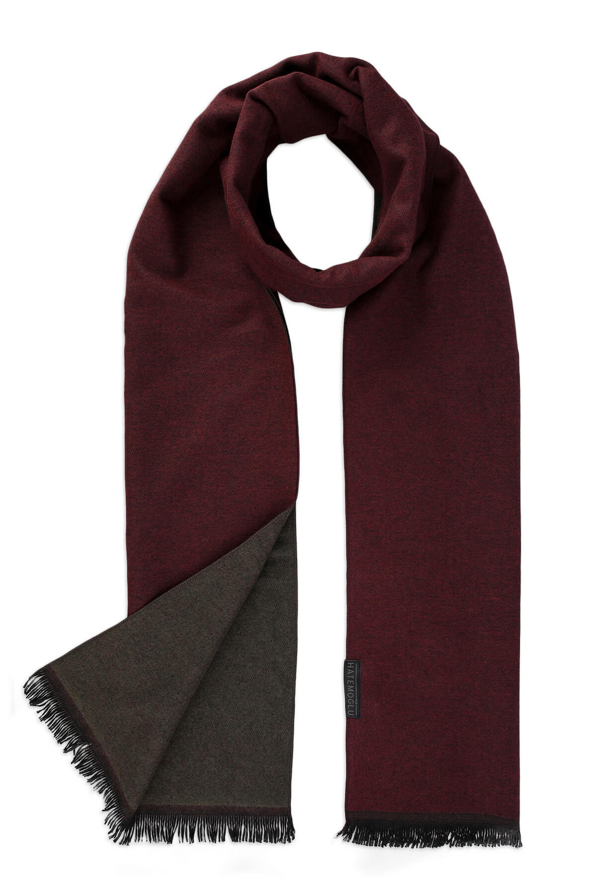 Bordo - Haki Çift Taraflı Atkı, hem şık hem de fonksiyonel bir kış aksesuarıdır. Çift taraflı tasarımı sayesinde farklı kombinasyonlara uyum sağlar. %65 polyester ve %35 viskon karışımından oluşan yumuşak kumaşı, soğuk havalarda sıcak tutar ve konforlu bir kullanım sunar.