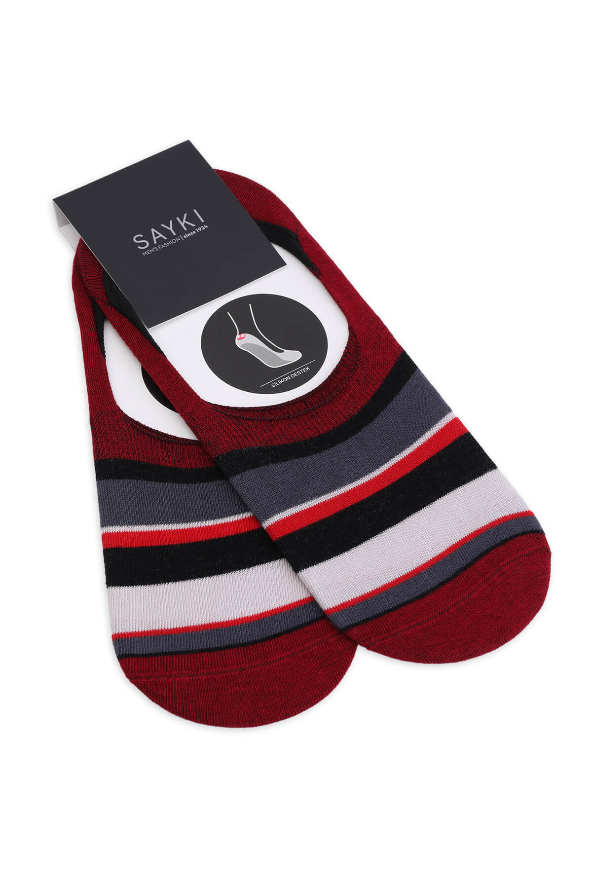 Bordo İkili Çizgili Pamuklu Babet Çorap